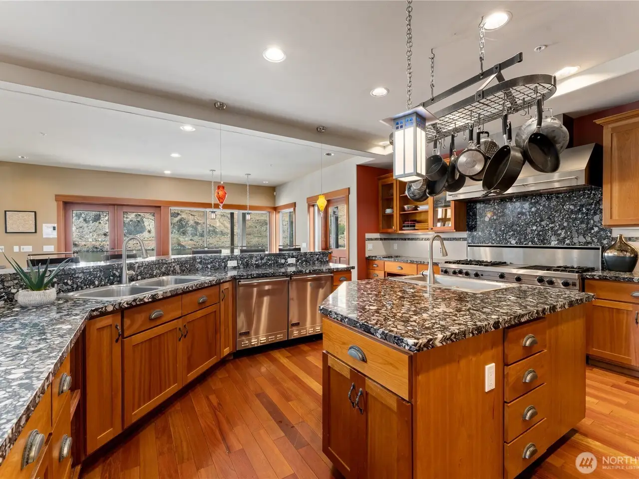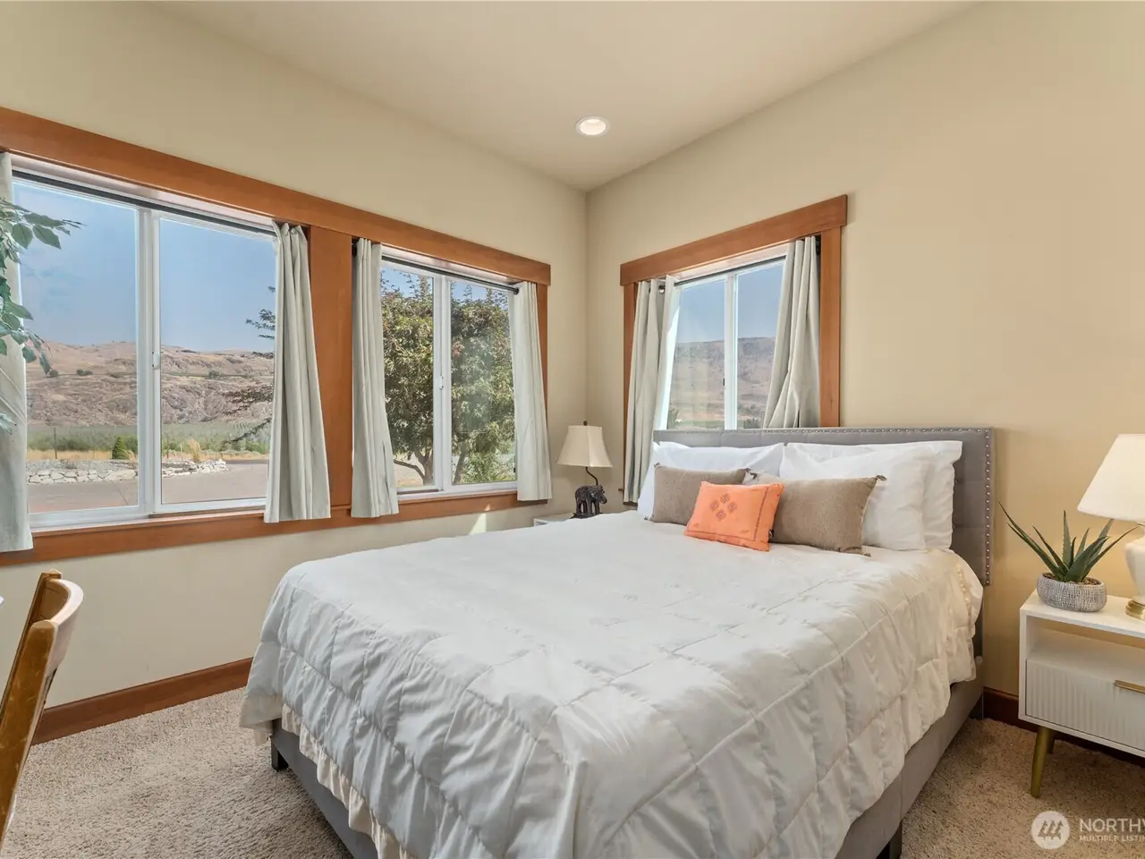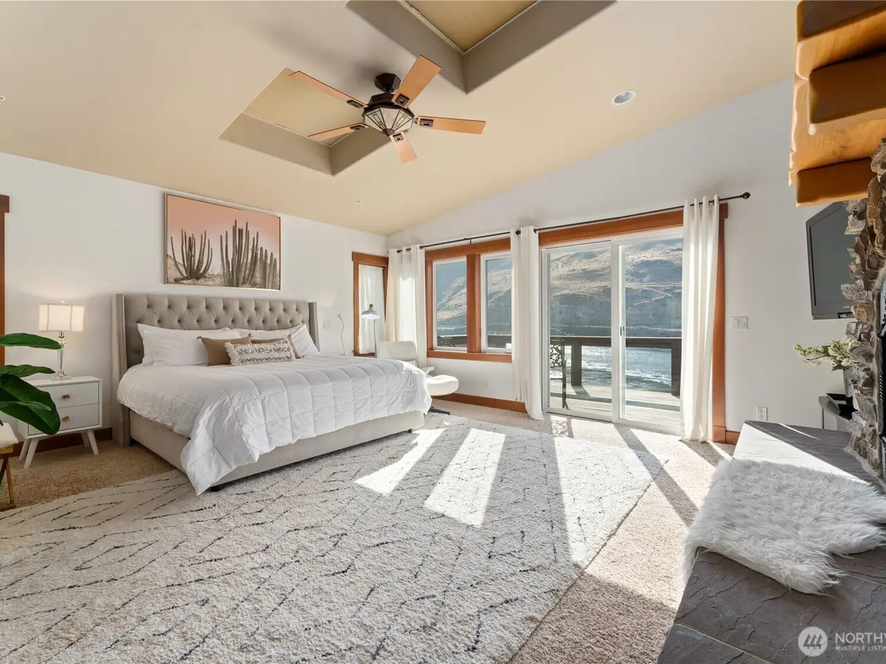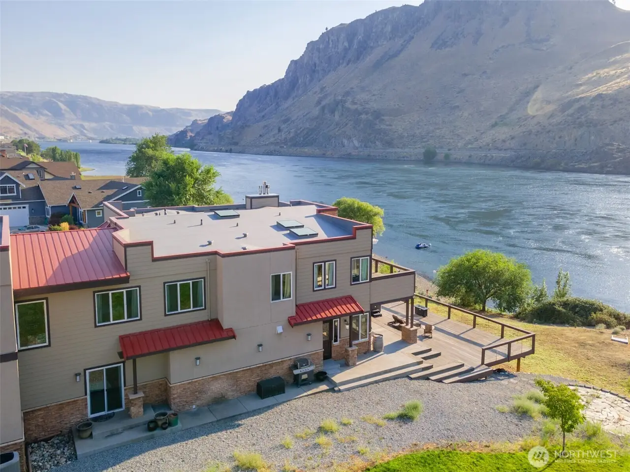 Stunning 6,884sf, 5bd/6.75bth low bank waterfront home w/ permitted buoy overlooking the Columbia River w/ unparalleled views, high-end luxury finishes & expansive outdoor living areas. The spacious home features high ceilings, hardwood floors, granite countertops, 2 primary bedroom suites w/ fireplaces, walk-in closets, baths w/ marble flooring & radiant heated floors. Great room w/ vaulted ceilings, sliding glass doors & gracious entertainer's kitchen w/ Viking appliances. 4 additional bedrooms, large media room w/ bunks & wet bar & attached garage w/ oversized doors that doubles as a yoga/exercise studio complete the home. Outdoor dining & lounge area w/ private spa. Fully furnished, turn-key Vacation Rental Home, 10 minutes from Chelan.