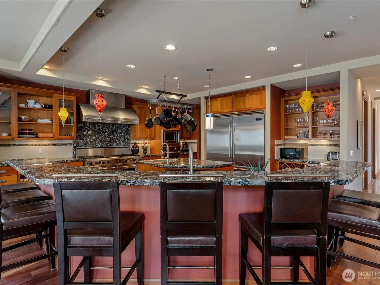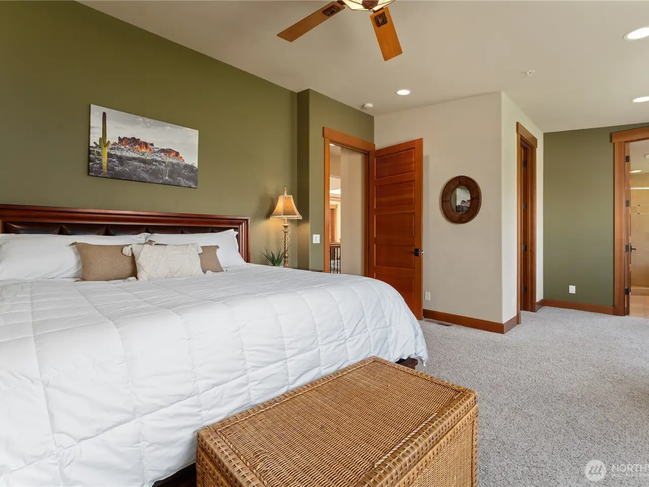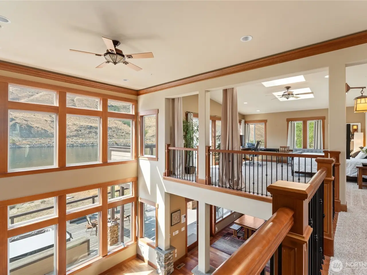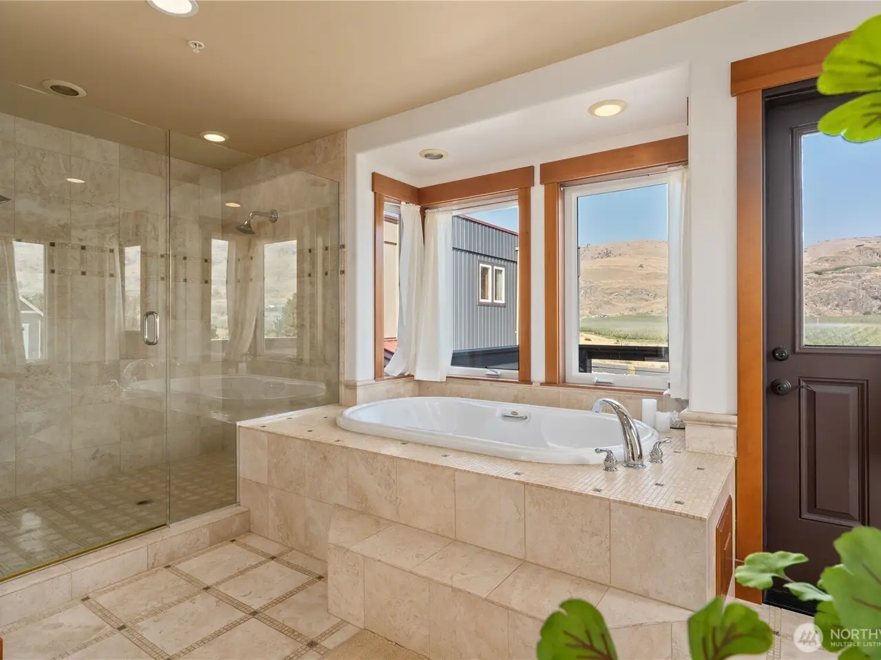 Stunning 6,884sf, 5bd/6.75bth low bank waterfront home w/ permitted buoy overlooking the Columbia River w/ unparalleled views, high-end luxury finishes & expansive outdoor living areas. The spacious home features high ceilings, hardwood floors, granite countertops, 2 primary bedroom suites w/ fireplaces, walk-in closets, baths w/ marble flooring & radiant heated floors. Great room w/ vaulted ceilings, sliding glass doors & gracious entertainer's kitchen w/ Viking appliances. 4 additional bedrooms, large media room w/ bunks & wet bar & attached garage w/ oversized doors that doubles as a yoga/exercise studio complete the home. Outdoor dining & lounge area w/ private spa. Fully furnished, turn-key Vacation Rental Home, 10 minutes from Chelan.