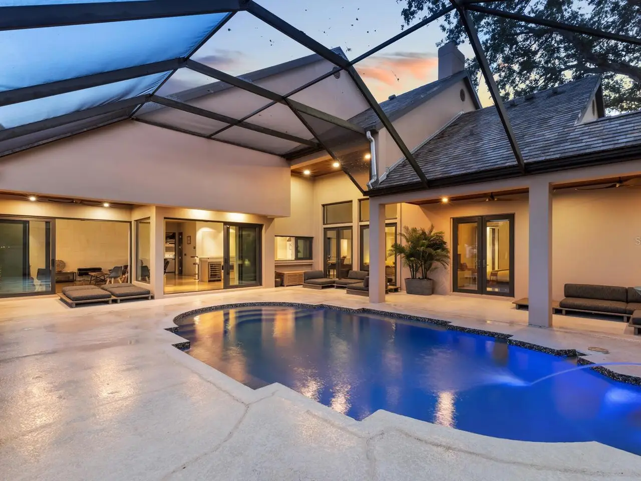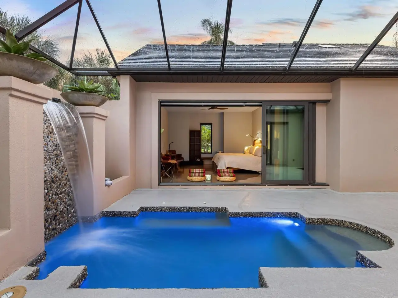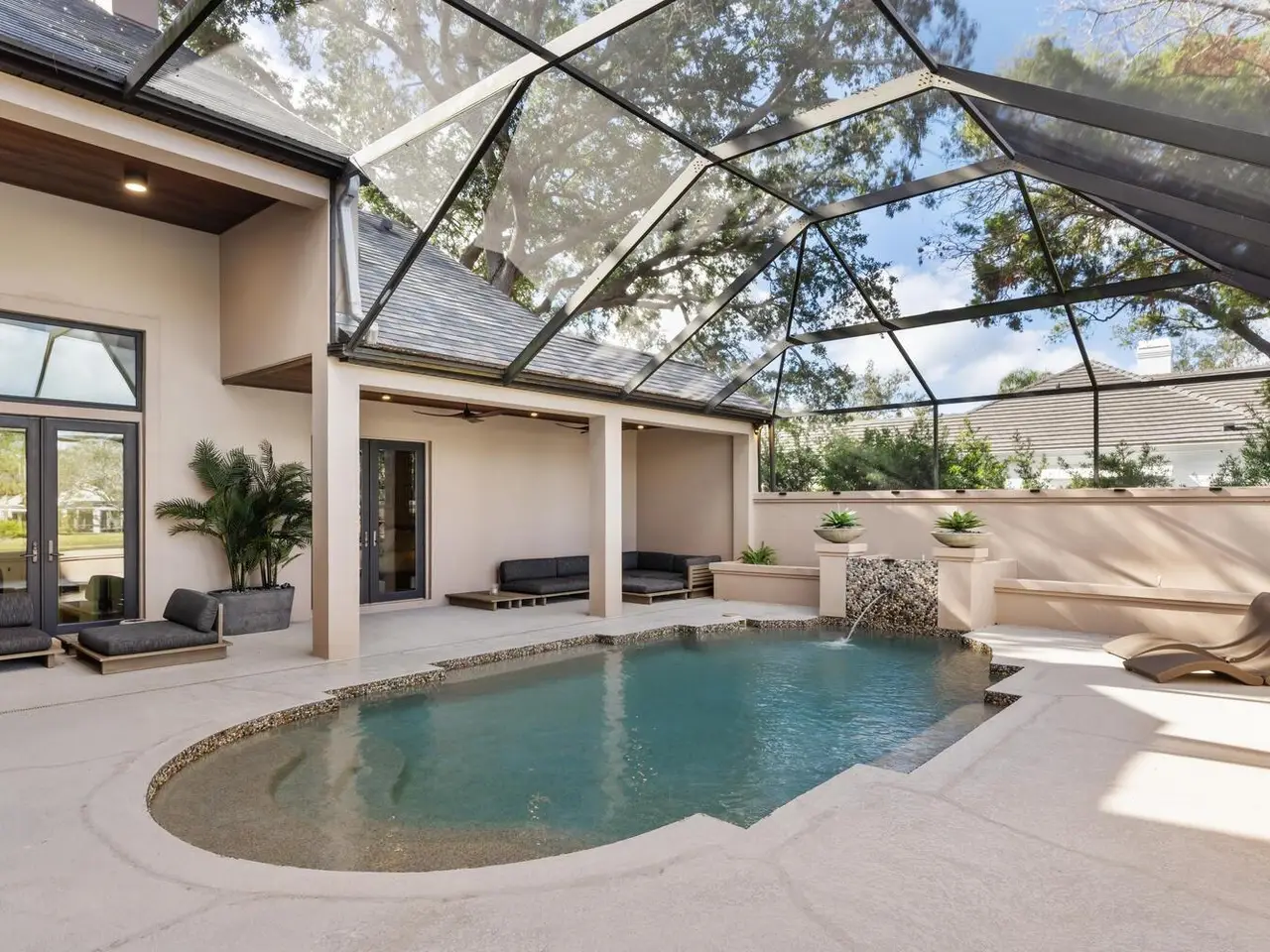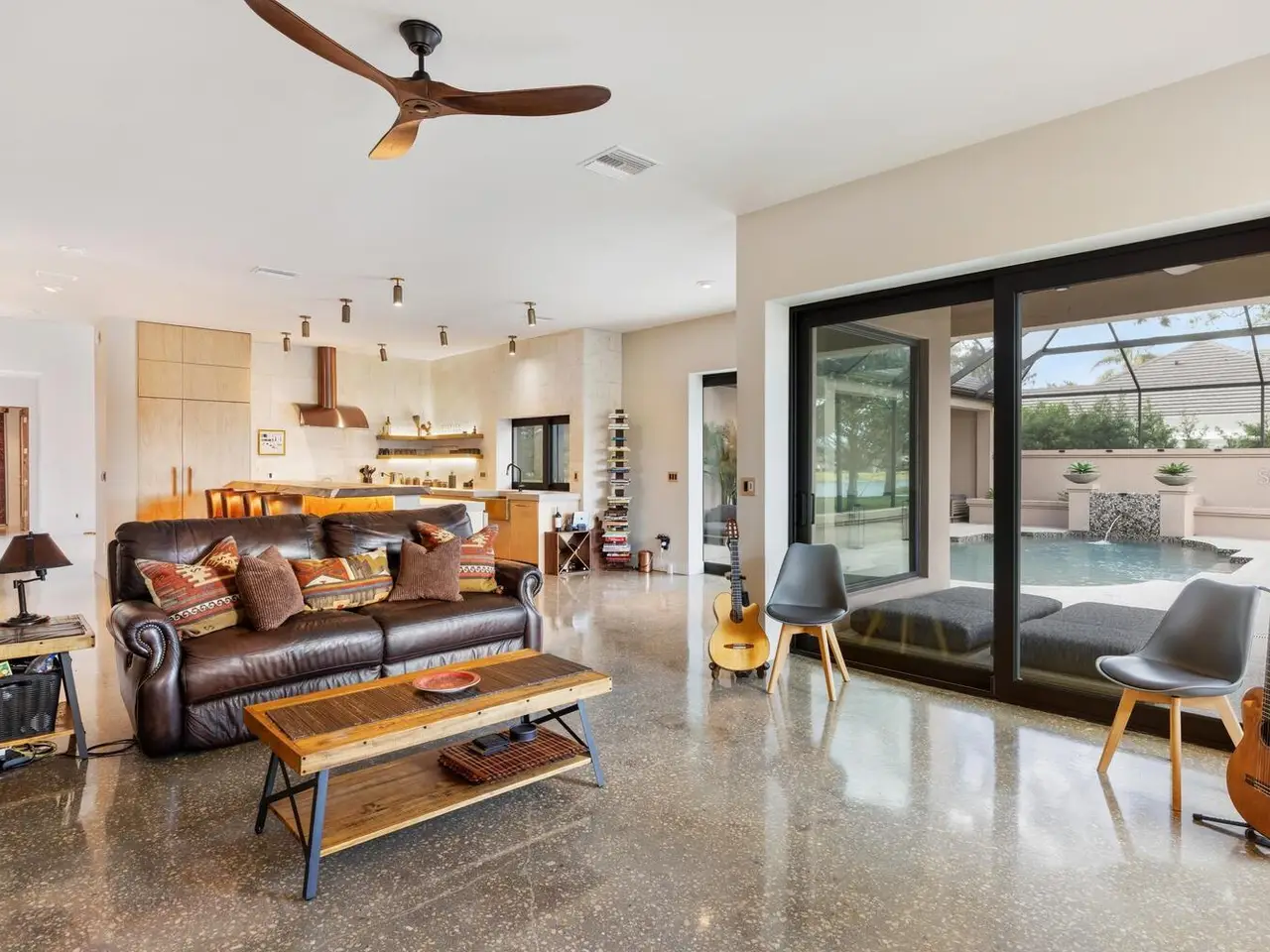 Nestled in the prestigious gated enclave of The Oaks Bayside in Sarasota, this Sedona-inspired retreat was recently updated from wall to wall creating a like brand new home. The estate seamlessly blends modern luxury, comfort, and serenity. With almost 4,000 SQF and boasting 4 generously sized bedrooms and 3 1/2 baths, this residence has been thoughtfully renovated with the finest finishes, including newer impact windows, retractable window walls, a sleek tile roof, custom concrete flooring, and exquisite baths and fixtures to go along with the state-of-the-art kitchen, equipped with top-tier Wolf and Sub-Zero appliances. Soaring vaulted ceilings create an expansive, airy ambiance, while large windows frame stunning lake views, offering the perfect backdrop for the sparkling pool and expansive spa, complete with tranquil water features. With disappearing sliders throughout, the home can let the air and light flow easily from outside to in. Enjoy breathtaking sunsets from your private oasis or stroll a kayak or paddleboard to the nearby boat launch for effortless access to Sarasota Bay and the Gulf, thanks to the newly reopened Midnight Pass. Situated on a secluded .40-acre lot, this property offers a serene retreat, featuring a Zen garden surrounded by lush landscaping. Residents of The Oaks enjoy world-class amenities, including championship golf, fine dining, tennis, fitness, and swimming. At 49 Osprey Point Drive, every detail has been meticulously crafted for those who seek refined living and unparalleled elegance.