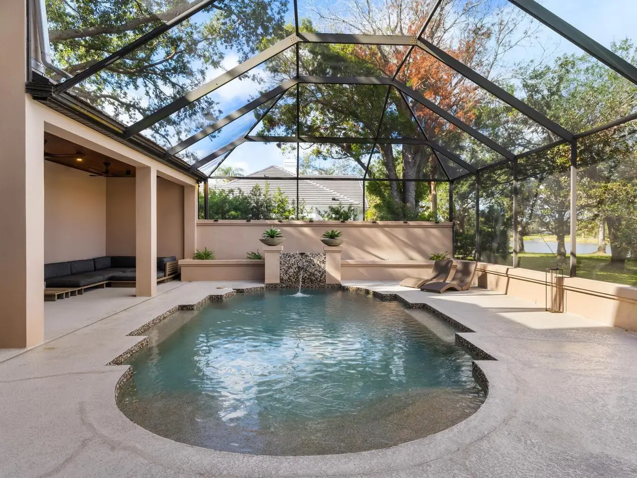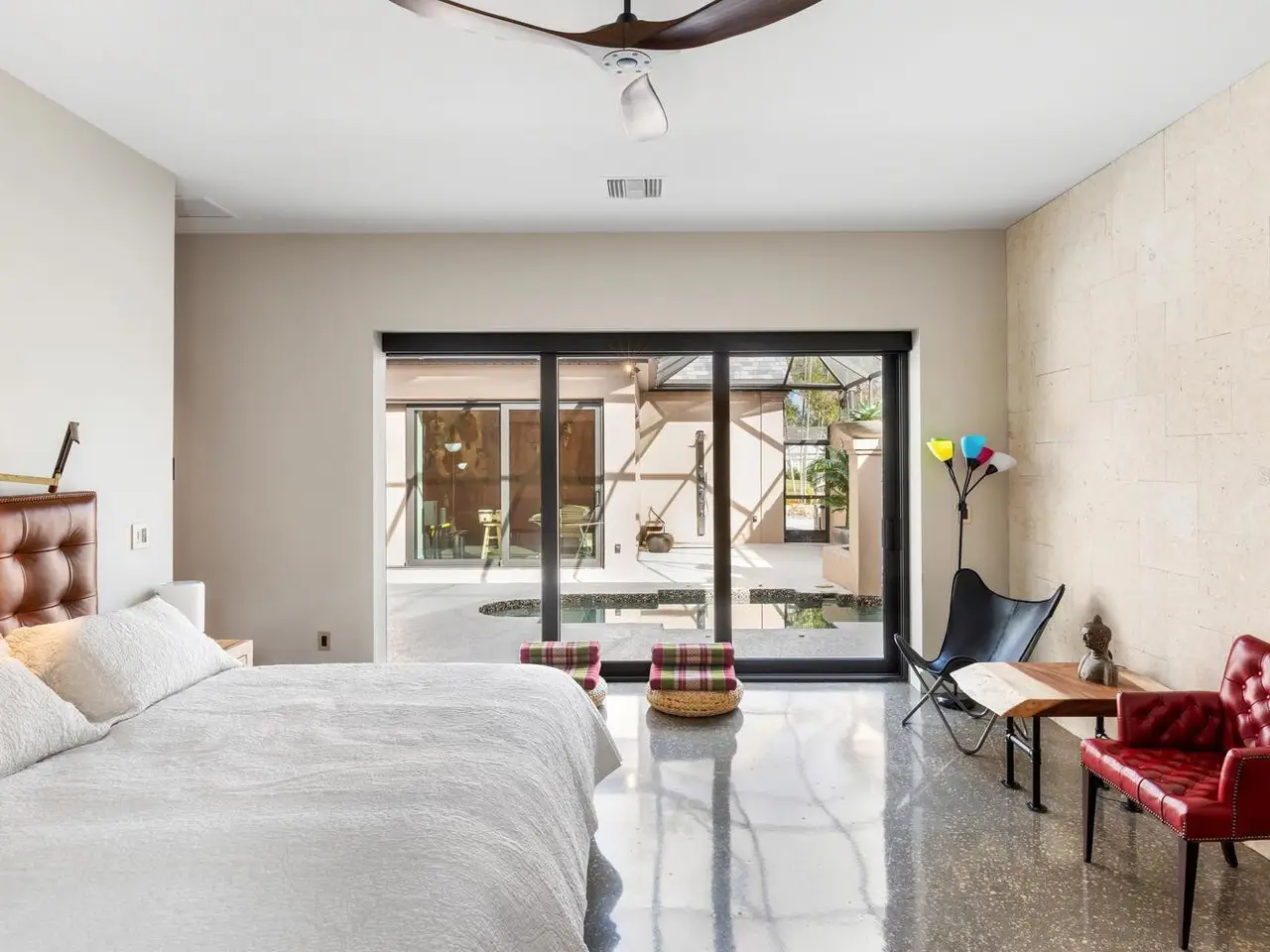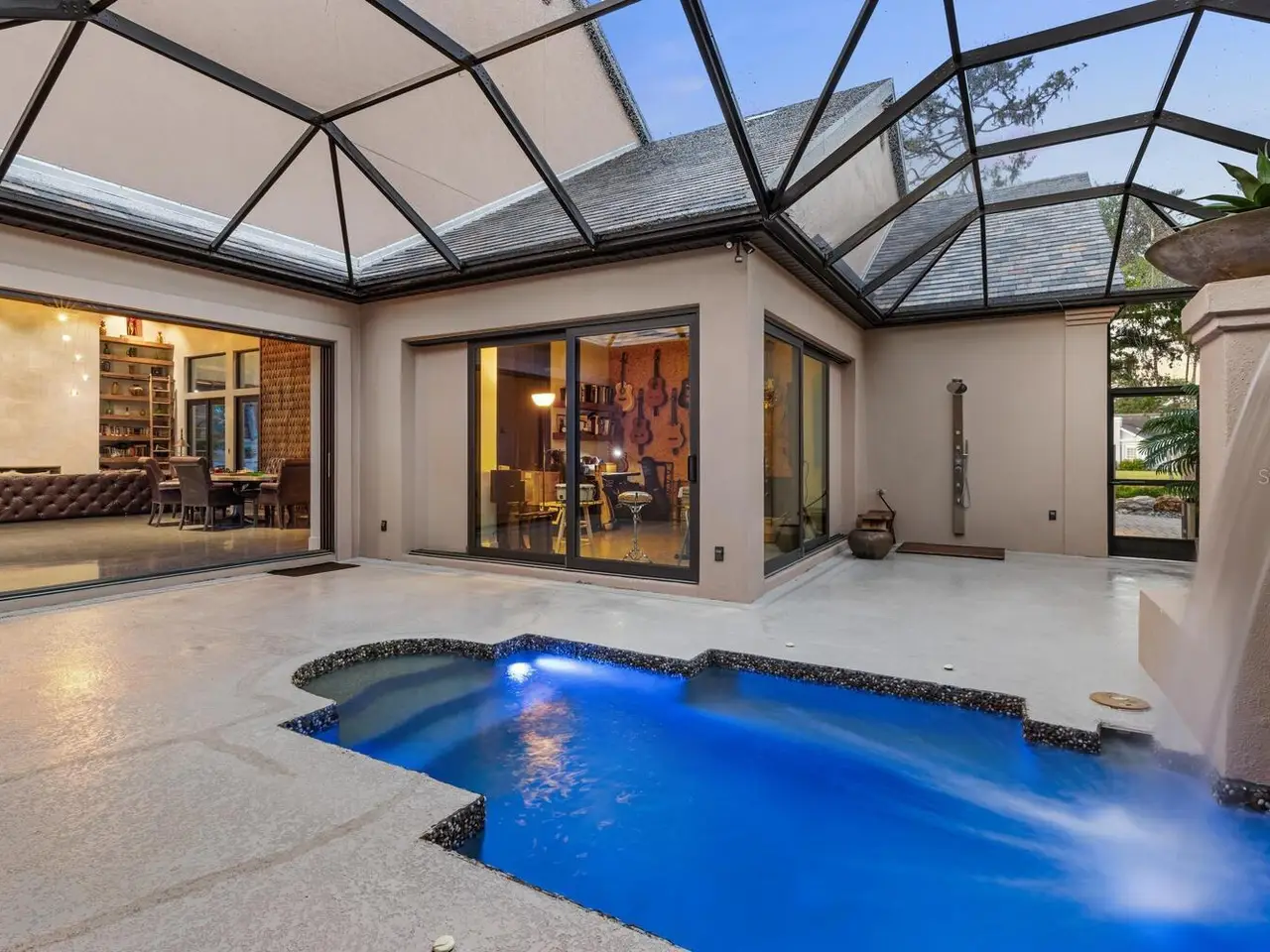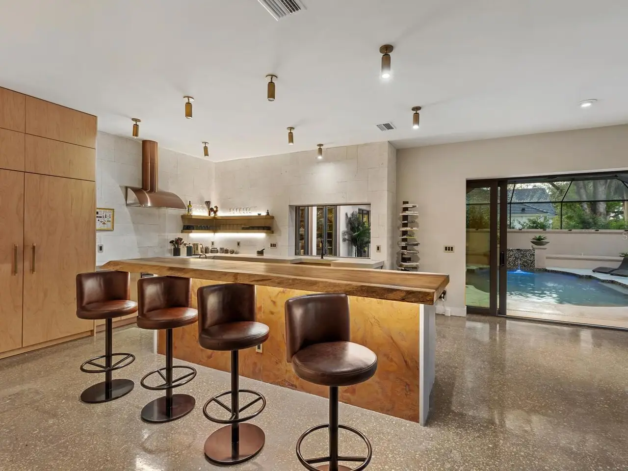 Nestled in the prestigious gated enclave of The Oaks Bayside in Sarasota, this Sedona-inspired retreat was recently updated from wall to wall creating a like brand new home. The estate seamlessly blends modern luxury, comfort, and serenity. With almost 4,000 SQF and boasting 4 generously sized bedrooms and 3 1/2 baths, this residence has been thoughtfully renovated with the finest finishes, including newer impact windows, retractable window walls, a sleek tile roof, custom concrete flooring, and exquisite baths and fixtures to go along with the state-of-the-art kitchen, equipped with top-tier Wolf and Sub-Zero appliances. Soaring vaulted ceilings create an expansive, airy ambiance, while large windows frame stunning lake views, offering the perfect backdrop for the sparkling pool and expansive spa, complete with tranquil water features. With disappearing sliders throughout, the home can let the air and light flow easily from outside to in. Enjoy breathtaking sunsets from your private oasis or stroll a kayak or paddleboard to the nearby boat launch for effortless access to Sarasota Bay and the Gulf, thanks to the newly reopened Midnight Pass. Situated on a secluded .40-acre lot, this property offers a serene retreat, featuring a Zen garden surrounded by lush landscaping. Residents of The Oaks enjoy world-class amenities, including championship golf, fine dining, tennis, fitness, and swimming. At 49 Osprey Point Drive, every detail has been meticulously crafted for those who seek refined living and unparalleled elegance.