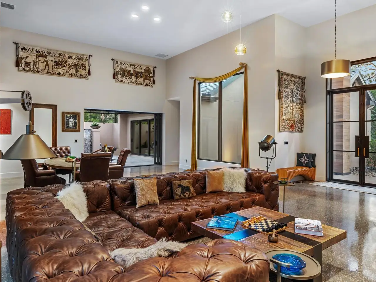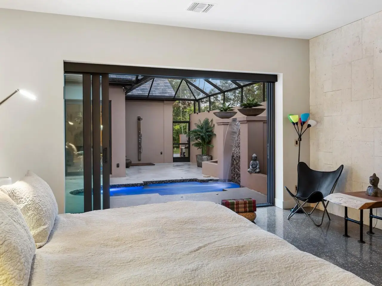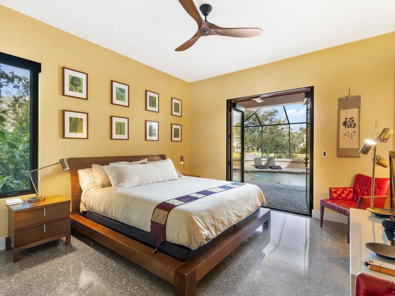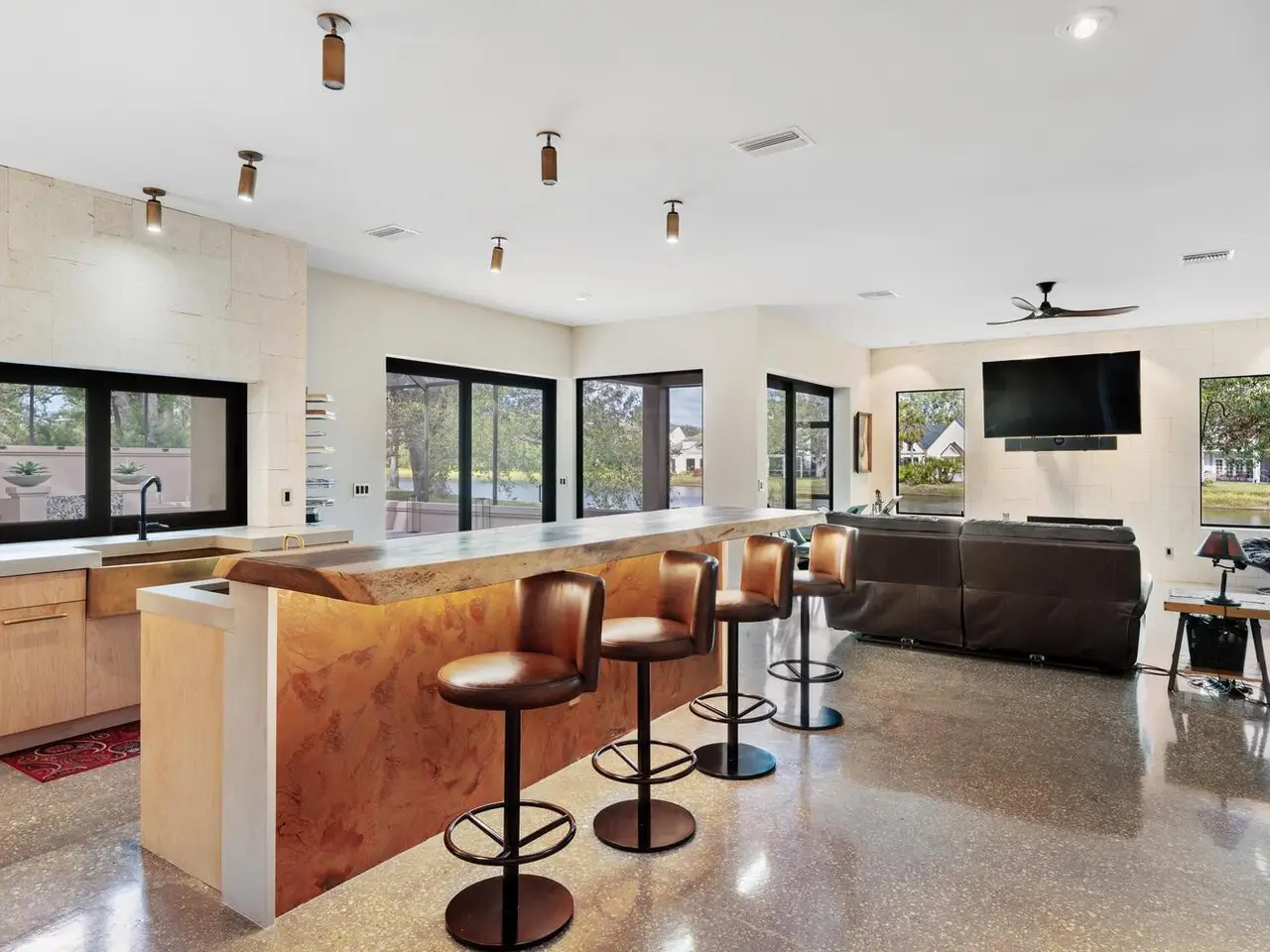 Nestled in the prestigious gated enclave of The Oaks Bayside in Sarasota, this Sedona-inspired retreat was recently updated from wall to wall creating a like brand new home. The estate seamlessly blends modern luxury, comfort, and serenity. With almost 4,000 SQF and boasting 4 generously sized bedrooms and 3 1/2 baths, this residence has been thoughtfully renovated with the finest finishes, including newer impact windows, retractable window walls, a sleek tile roof, custom concrete flooring, and exquisite baths and fixtures to go along with the state-of-the-art kitchen, equipped with top-tier Wolf and Sub-Zero appliances. Soaring vaulted ceilings create an expansive, airy ambiance, while large windows frame stunning lake views, offering the perfect backdrop for the sparkling pool and expansive spa, complete with tranquil water features. With disappearing sliders throughout, the home can let the air and light flow easily from outside to in. Enjoy breathtaking sunsets from your private oasis or stroll a kayak or paddleboard to the nearby boat launch for effortless access to Sarasota Bay and the Gulf, thanks to the newly reopened Midnight Pass. Situated on a secluded .40-acre lot, this property offers a serene retreat, featuring a Zen garden surrounded by lush landscaping. Residents of The Oaks enjoy world-class amenities, including championship golf, fine dining, tennis, fitness, and swimming. At 49 Osprey Point Drive, every detail has been meticulously crafted for those who seek refined living and unparalleled elegance.
