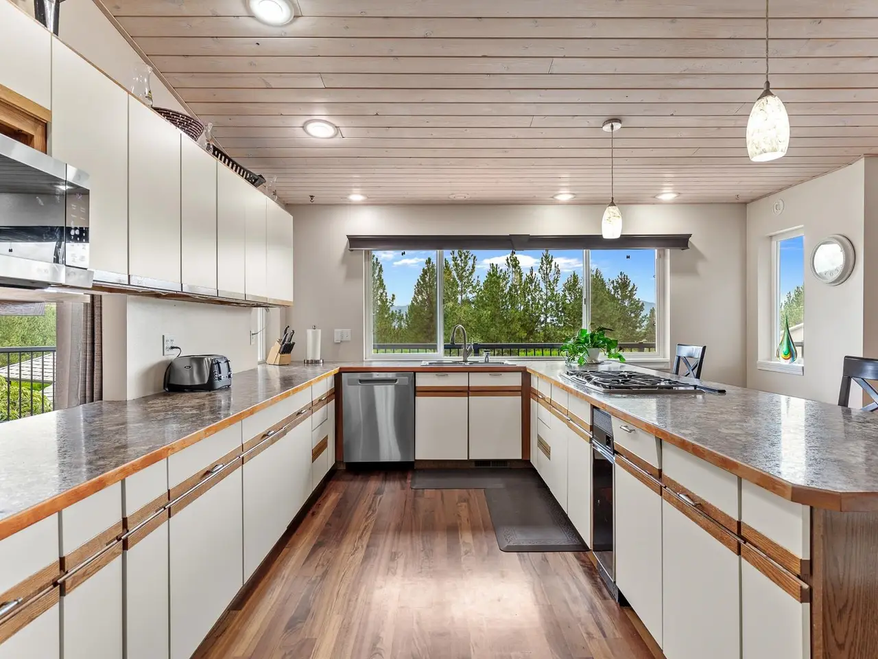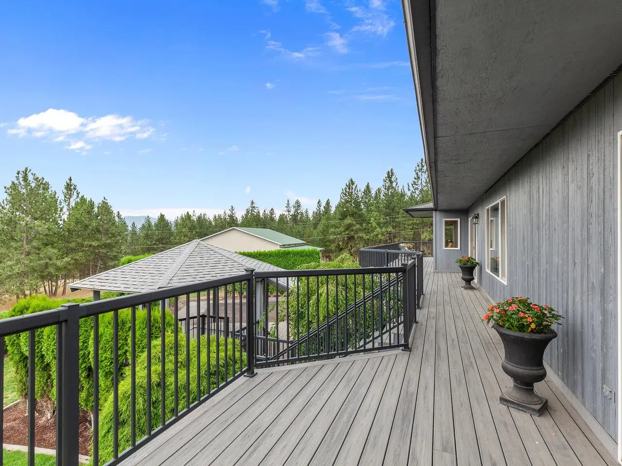 Enjoy peaceful living & breathtaking views in this beautifully maintained rancher set on 5 private acres with sweeping mountain and city vistas. Main level features an open layout with rich wood floors, large windows, & wraparound deck--perfect for entertaining or relaxing. Thoughtfully designed for everyday ease, home offers all essential living spaces on the main floor, incl. laundry hookups, a finished lower level that adds more room to spread out. Ideal for multi-generational living, guest quarters, or extended stays, the property features: A 60x90 shop with radiant-heated concrete floors, five 12' wide x 13' tall doors, floor drains, & back shed with air compressor--perfect for car enthusiasts. Incl. 2,000+ sq ft of finished living space with 2 bed/2 bath, laundry kitchen/dining/living area & rec room. Attached RV garage with 13' tall doors and a 1 bed/1 bath ADU complete with kitchen and living room. Mins. from town, this one-of-a-kind property offers the perfect blend of space, comfort & convenience.