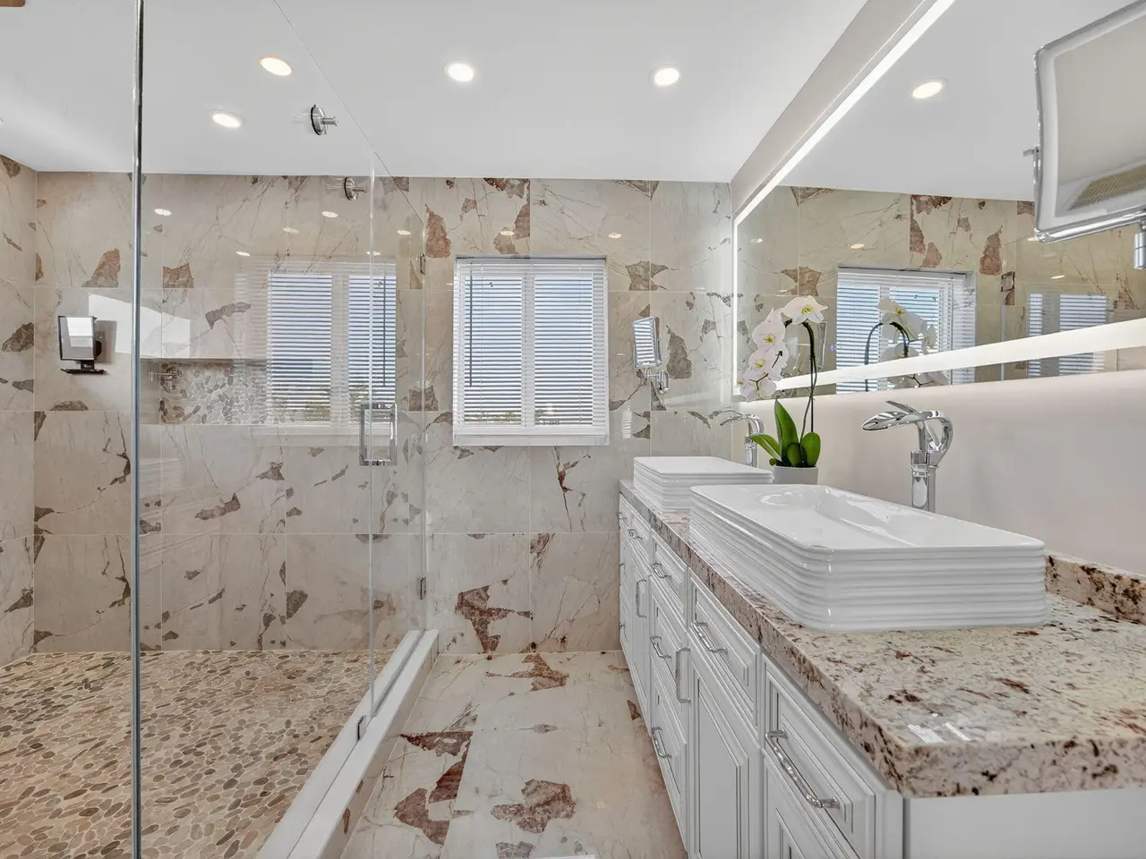 Tropical Keys Oasis -- Waterfront Luxury Living -- Come experience this one-of-a-kind tropical oasis that feels like living at a Keys resort. Surrounded by lush landscaping, vibrant grass is the backdrop for nine coconut palms, five banana trees, two mango trees, and an avocado tree, this property bursts with natural beauty. Vibrant bougainvillea archways create a stunning entry to one of the most exquisitely landscaped homes on the island. Enjoy 60 feet of waterfront with an expansive maintenance free deck, a 15,000-lb boat lift for up to a 33-foot boat and a drop dock perfect for swimming in the lagoon or launching kayaks. Outdoor living is elevated to the next level--exactly what you'd expect in the Florida Keys. Inside, discover a newly renovated beautiful 4-bedroom