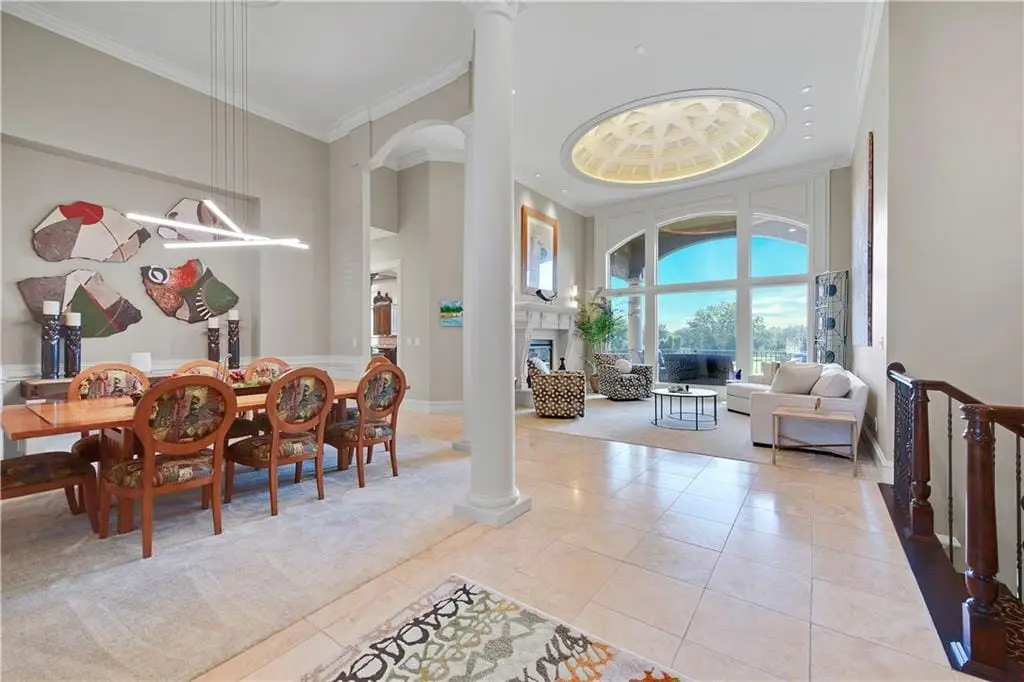 Sold sight unseen. Prepare to be WOWed! Nestled on the 4th hole of Links at Lionsgate, this stunning custom home offers breathtaking views. Enter and take in the attention to detail in every inch. The unique domed ceiling in the living room sets the tone for a beautiful surprise at every corner. Enjoy the ease of main level living with the Primary Bedroom Suite, a Guest Bedroom Suite, Office & two Laundry areas. All while your guests or family members enjoy the Bar/full Kitchen, Office, Living Area, three Bedroom Suites and another Laundry area in the lower level. From each level, step out to the outdoor living areas and take in the beauty of golf course living.*Lionsgate Club Social Membership is $862 per year*