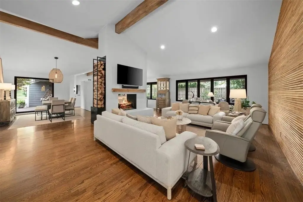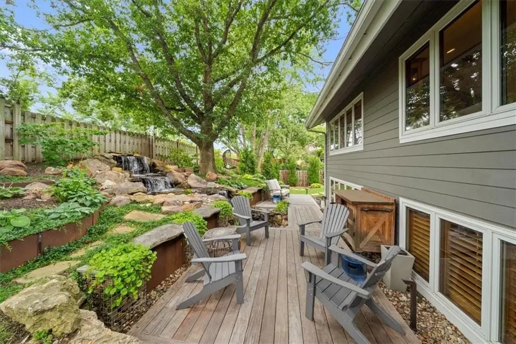 Unique California modern with a Boho vibe in a fabulous location close to Roe Park, Meadowbrook, Mission Farms, Tavern and Rye! From the sound of the two-story tranquil waterfall that you can view from both levels of the home to the multiple outdoor entertaining spaces, you will never want to leave & it's all low maintenance! Home is situated back on lot for privacy and updated for today's buyer. Convenient main level living with beautiful hardwood floors, tall ceilings and nothing to do but enjoy! Owner has spared no expense updating indoor and outdoor lighting, remodeling bathrooms & kitchen, added architectural wood touches, updated the primary fireplace, replaced all landscape with no maintenace plants, added outdoor fireplace with composite deck, modern metal staircase and more. Exterior low maintenance James Hardie Siding, newer Pella windows & gutter guards. Gourmet kitchen with Sub Zero refrigerator, gas stove, quartzite counters, glass backsplash, butlers pantry with prep sink, additional pantry & 3 ovens total. Huge circle drive for extra parking and culdesac street! Large master with sitting area, dual bathrooms, 4 closets, heated towel bars & shower with double heads. Upstairs and downstairs laundry. If you are looking for something one of a kind, you will want to see this house!! Garage is extra deep and floor just recently epoxied. Tons of storage in lower level in addition to a 4th bedroom, wet bar, living room and a huge stone wood burning fireplace. Every bedroom has its own ensuite. 3 large bedrooms on the main level can be used for a office, guest suite or whatever you like. Newer windows, James Hardie siding, windows added to allow in natural light to enjoy the outdoors. Large private yard. Brazilian wood deck along waterfall and spectacular deck with wood burning fireplace are highlights of this home from the minute you walk in the door. Drive to Corinth and Prairie Village Shops within minutes. Check out the Virtual Tour!