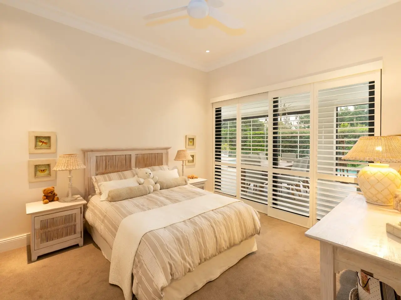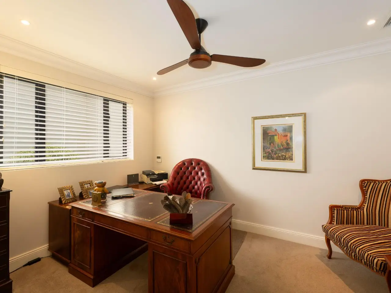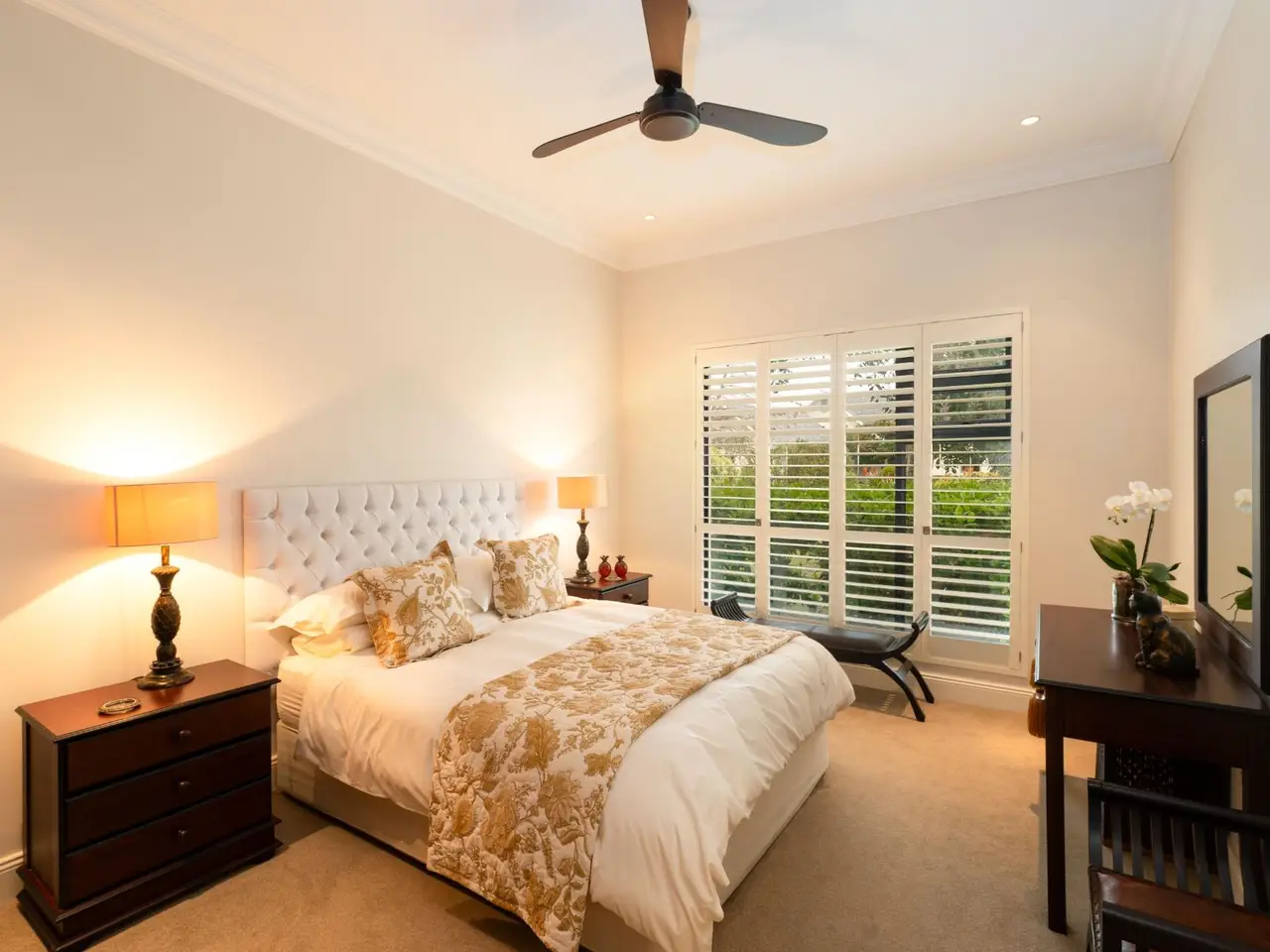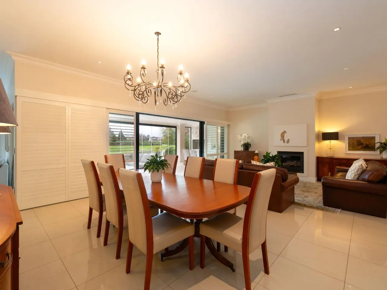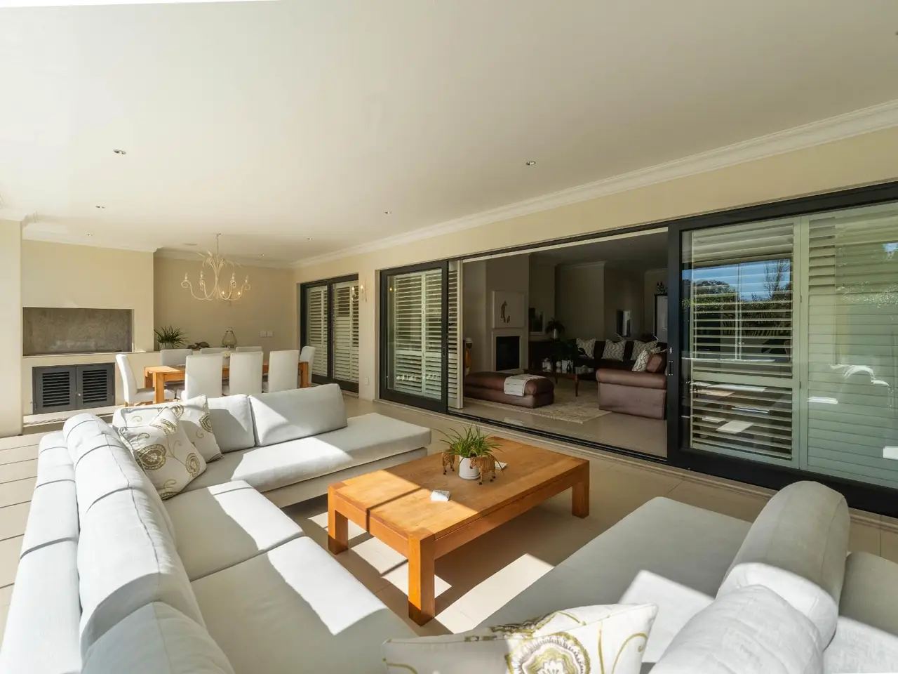 This beautifully appointed single-storey home offers uninterrupted views over a serene lake, manicured fairways, and the majestic Wemmershoek mountains. Designed with both comfort and elegance in mind, the home features four spacious en suite bedrooms and seamless open-plan living spaces, all flowing effortlessly onto a sunny patio enclosed with frameless glass doors, perfect for year-round enjoyment of the spectacular outlook. Thoughtful Design & Comfortable Living From the expansive living and dining areas to the cozy TV room and indoor braai room, every space is tailored for easy living and entertaining. The well-equipped kitchen includes a gas hob and a large central island, and flows directly into both the TV room and living roomGÇöeach fitted with a charming wood-burning fireplace. The indoor patio, featuring a large gas fireplace, opens up completely via glass sliding doors to the pool area, blurring the line between indoor and outdoor living. Bedrooms & Private Spaces The main bedroom is a retreat in itself, carefully designed to capture views of the lake and mountains directly from the bed, with direct access to the pool. It features ample built-in cupboards and a luxurious en suite bathroom complete with double basins, underfloor heating, heated towel rails, shower, bath, toilet, and bidet. The three additional en suite bedrooms are all generously sized, one with direct pool access. A well-positioned study provides a quiet space for working or reading. Modern Comfort & Extras • Central air conditioning system in all rooms • Ceiling fans and integrated speaker system • Scullery with ample storage and space for washer and dryer • Separate laundry courtyard and staff bathroom • Double garage plus dedicated golf cart garage • Inverter, batteries, and solar panels for energy efficiency This exceptional home offers the best of tranquil living, modern luxury, and thoughtful functionality in one of the region's most desirable settings.