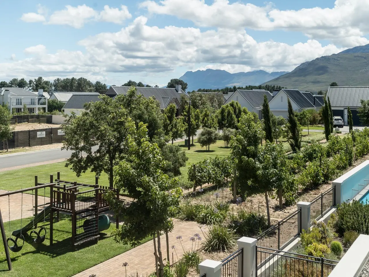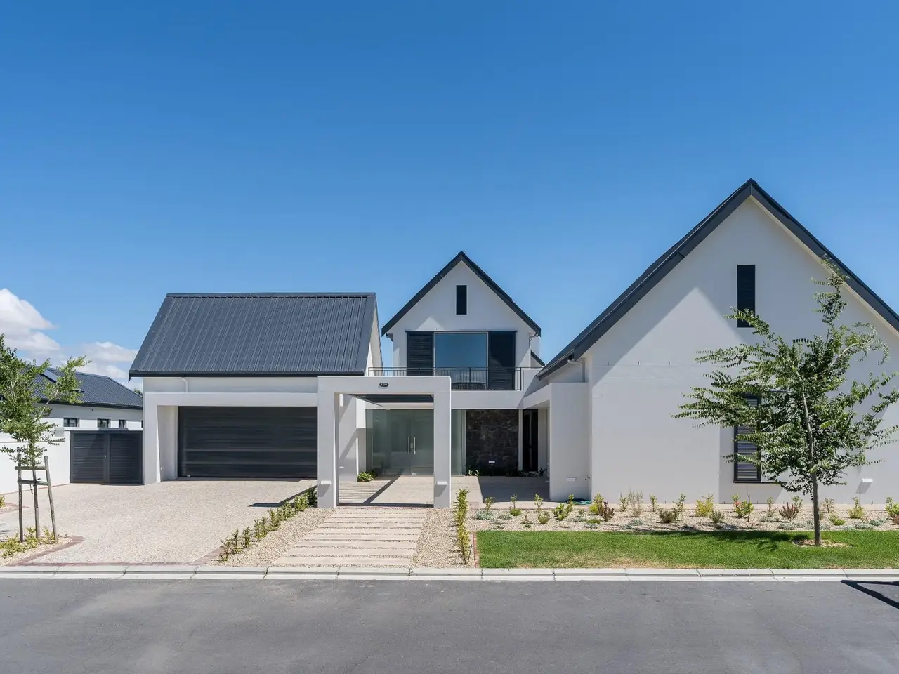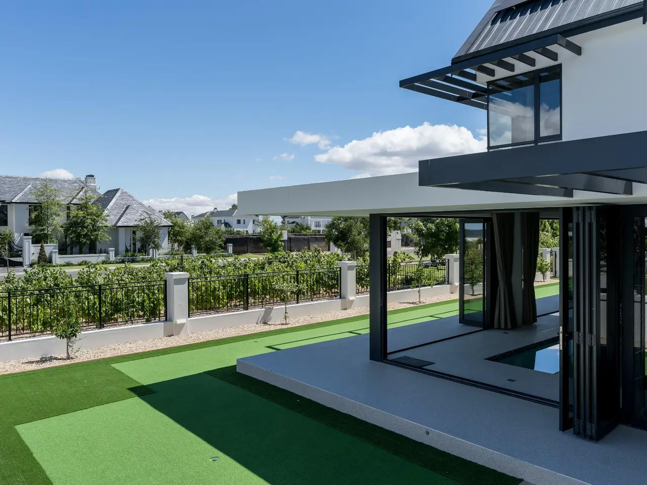 This new build features 4 bedrooms, 4.5 bathrooms, four garages, and a golf cart garage. Enjoy north-facing entertainment spaces with an indoor pool seamlessly connected to the well-designed kitchen, indoor braai area, and the comfort of ducted air conditioning. Three en-suite bedrooms are on the ground floor, while upstairs boasts a fully equipped en-suite bedroom, a full bathroom, and a versatile study area or office space. Additional features include a 24 KVA inverter, solar panels, and a loft room above the garage. Val de Vie amenities include 42km mountain bike routes, 21km jogging and walking trails alongside vineyards, Gyms, Tennis and squash courts, picnic spots next to the Berg River, world-famous Pearl Valley Jack Nicklaus Signature golf course, stables, parks and paddocks are surrounded by 360-degree panoramic views. Outstanding restaurants, a coffee roastery, deli and wine cellar satiate even the most discerning palate.