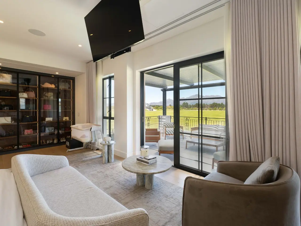 Price includes furniture and household appliances. Perfectly positioned in one of the estate’s most sought-after locations, this home enjoys uninterrupted views over the iconic main polo field, framed by the majestic Simonsberg, Wemmershoek, and Franschhoek mountains. Upstairs: The home offers four spacious bedrooms and a pajama lounge, providing ample space for family and guests. The main suite is a serene retreat, where each morning begins with breathtaking mountain and polo field views. A magnificent covered verandah extends the space, offering tranquil and private relaxation. Downstairs: A guest suite ensures complete privacy for visitors, thoughtfully separated from the main living areas. Living & Entertaining: The open-plan kitchen and living areas are designed for effortless indoor-outdoor flow, ideal for both relaxed family living and elegant entertaining. A fully equipped “back kitchen” with additional appliances, including a large walk-in refrigerator, offers a perfect private chef’s space. Large feature slider doors open onto a covered patio and pool area, inviting you to enjoy warm summer days lounging by the pool, taking in the tranquil views, and watching polo from the comfort of home. Additional Features: 3-car garage Solar panels with battery backup Private domestic quarters With luxury, comfort, and an unrivalled setting, this property captures the essence of estate living in the Cape Winelands. Opportunities like this—where location, lifestyle, and views converge so perfectly—are truly rare.