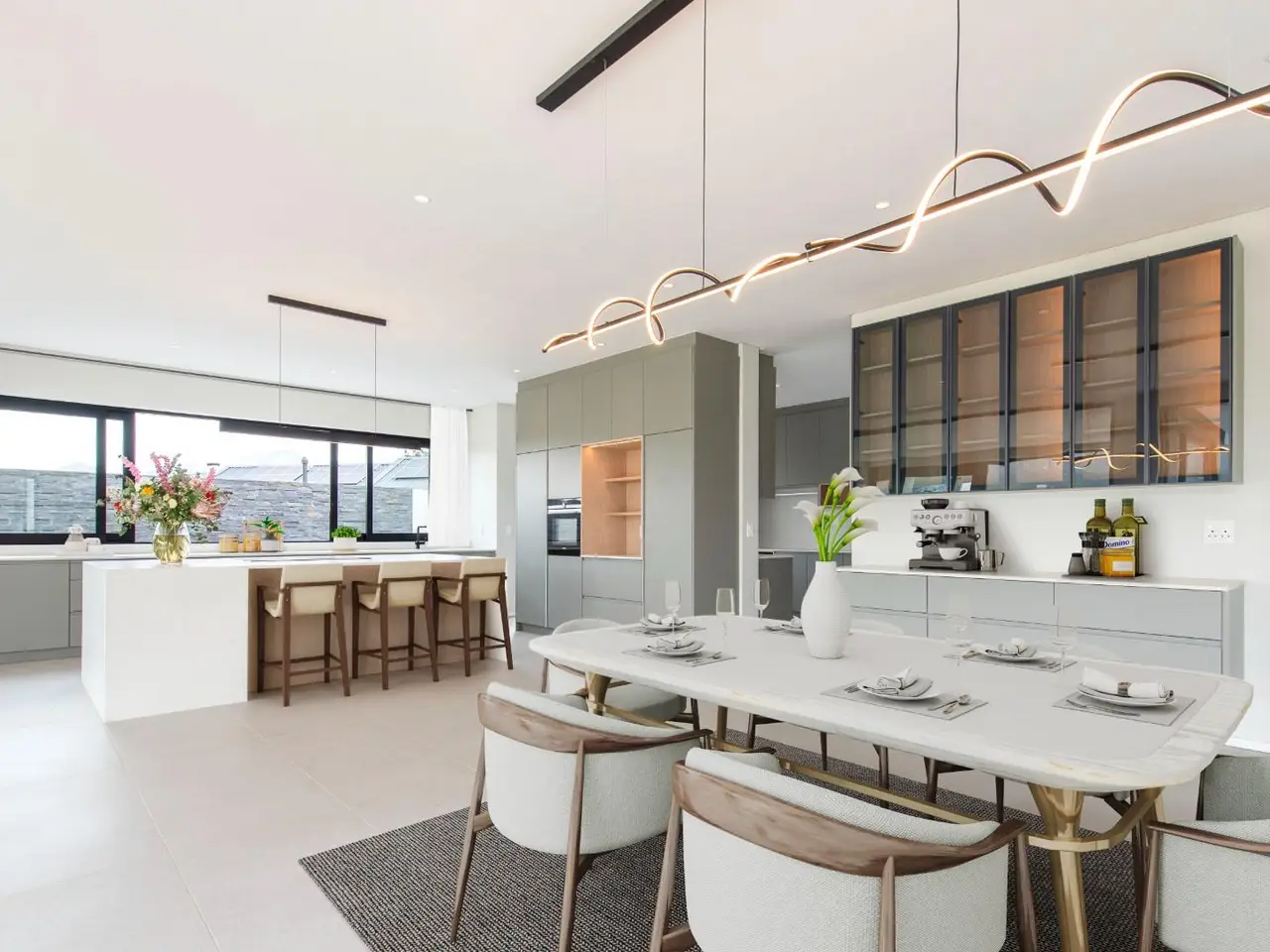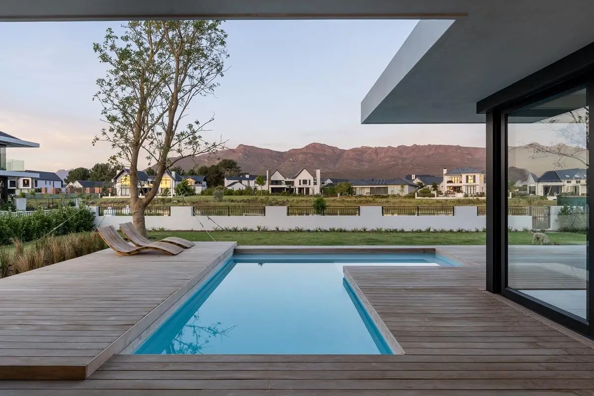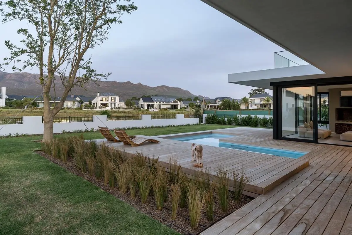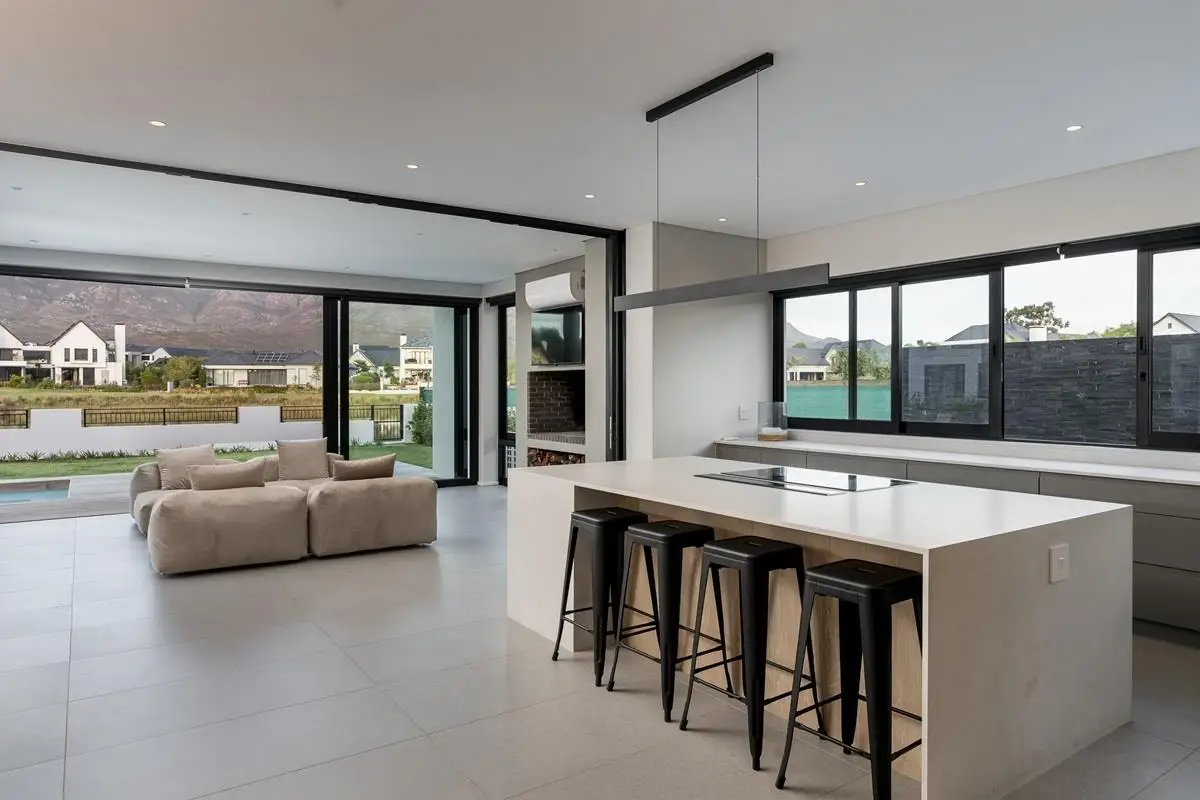 Exclusive sole mandate. Step into luxury living with this 4 bedroom double-story lake house in Val de Vie Estate, perfectly positioned to capture magnificent east-facing views of the Drakenstein mountain ranges. Designed for modern family living, this home offers a seamless blend of style, comfort, and functionality. As you enter, you'll be captivated by the open-plan living area, designed for both relaxation and entertaining. Large windows annd doors invite natural light and offer breathtaking views of the serene lake and surrounding mountains, creating a picturesque backdrop for everyday life. The modern kitchen boasts high-end appliances and ample counter space, seamlessly flowing into the dining and living areas. Step outside to a generous patio, ideal for al fresco dining and soaking in the stunning views over the water. Upstairs you have 3 en-suite bedrooms each offering privacy and sophisticated finishes and a pajama lounge, perfect for family relaxation or a cozy retreat. A custom wine cellar, ideal for wine enthusiasts and entertainers. Laundry combined with a scullery, ensuring an organized and efficient household. 3 garages providing ample space for vehicles and additional storage. This property is more than just a home it's an investment in your lifestyle, offering luxury, tranquility, and the unique lifestyle that comes with living in Val de Vie Estate