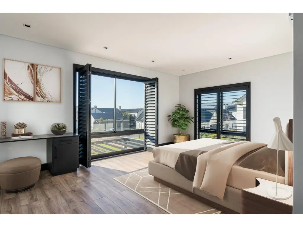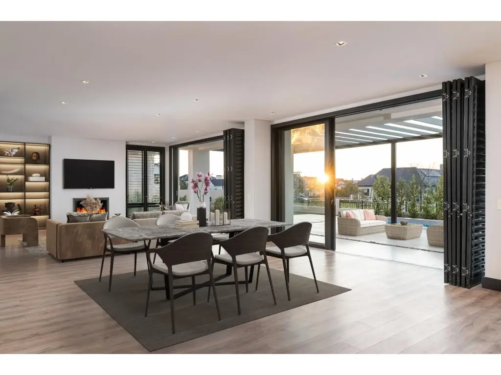 Exclusive sole Mandate! Situated in La Vue, this sophisticated north-facing masterpiece offers the essence of Val de Vie Estate living. A true family sanctuary overlooking a park with breathtaking views of the valley. Discover a world of convenience and opulence in this voluminous and light filled home, where every detail has been meticulously crafted to perfection. With expansive entertainment areas blending indoor and outdoor spaces, this home sets the stage for effortless entertaining. The interior unfolds gracefully into an open-plan living space that effortlessly integrates a TV lounge, dining area, a massive kitchen, and entertainment room with built in fireplace. Stacking doors connect this area to the braai patio overlooking the inviting pool and garden offering picturesque views of Paarl Rock in the distance with a lush greenbelt in front ensuring space and privacy. Practicality meets elegance in the design, with a massive walk-in pantry, and spacious scullery/laundry area leading to the laundry courtyard and 3 garages The downstairs offers an expansive guest bedroom as well as further entertainment space and convenient bar area. A sizeable pyjama lounge on the first floor, offers a perfect space for relaxation and play. The 4 bedrooms on this level are generously sized, each boasting fitted cupboards and en-suite bathrooms. The main bedroom stands out as an unparalleled of luxury, featuring a sumptuous bathroom, dressing area, breathtaking views. An open plan office competes the upstairs. Features such as a full solar and battery system, sleek cabinetry and shutters and 3 wood burning fireplaces, make this a standout home not to miss!