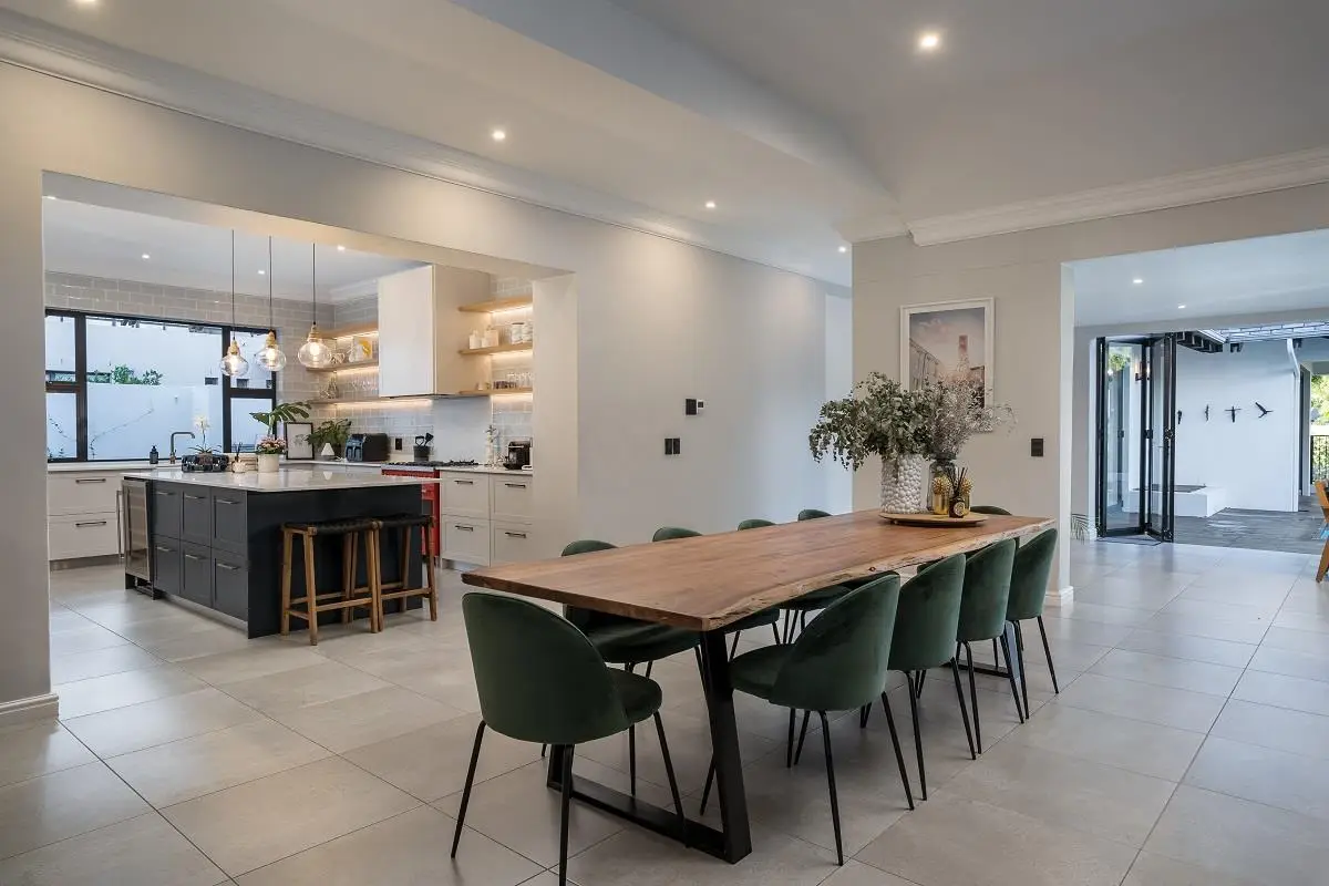 THIS BEAUTIFUL MODERN PROPERTY EPITOMISES WHAT ONE WOULD CALL A FAMILY HOME Stylishly renovated, this single level North facing home is well positioned on a corner stand with privacy and beautiful views towards the open green spaces of fairways and the members driving range. A welcoming entrance of a canopied lush garden leads to the front door. On entering the home the openness, lightness, modern clean lines and finishes give a fresh appeal and a feeling of space. The living space is designed for entertaining with a seamless flow from the well designed kitchen, the dining and lounge areas to glass stacking doors which open to a wooden deck and pool. An indoor braai, perfect for summer and winter use, completes this space and a covered area on the wooden deck adds an additional seating area with all flowing so well together to make the perfect spaces for family living and for entertaining. This beautiful home offers 4 well sized bedrooms all with ensuites, a large audio visual room, a study, a guest cloakroom, spacious open plan living areas and kitchen, utility room, triple garage, staff accommodation, invertor system, solar geyser and a well established garden. A rare opportunity to own a fully renovated and well positioned family home within the exclusive Pearl Valley Golf Estate.