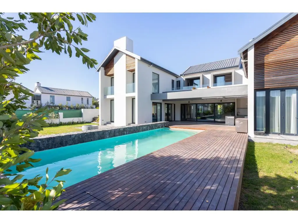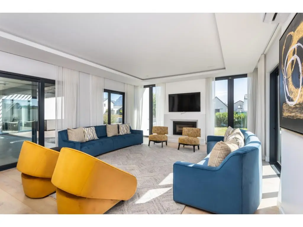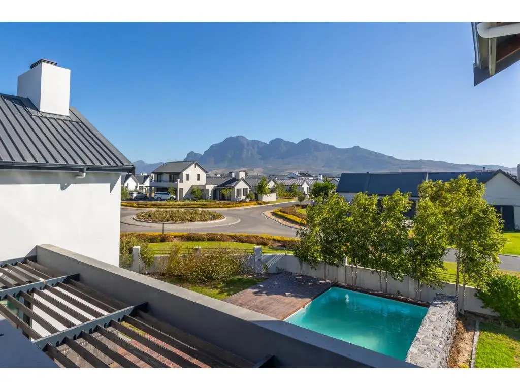 Exclusive Sole Mandate! Delivering a next-level standard in refined living, this home offers thoughtfully designed spaces in Val de Vie. What can only be described as ultra-luxe with breathtaking mountain views, and a design dialogue that captures every need and desire. Features: - Double glazed doors and windows - Oggie wooden flooring combined with Imported tiles and polished concrete - 5 Spacious en-suite bedrooms Family room - Open plan lounge, dining room and kitchen - Covered patio with built in braai - 2 wood fire combustion fireplaces - Resort size pool - Domestic quarters/outside office - 3 garages - putting green Neutral tones dominate the interior spaces for a striking, sleek aesthetic, with warmth achieved using natural materials like wood, stone, and granite. Chic and sophisticated, this home embraces structural innovation in a way that is both romantic and progressive.