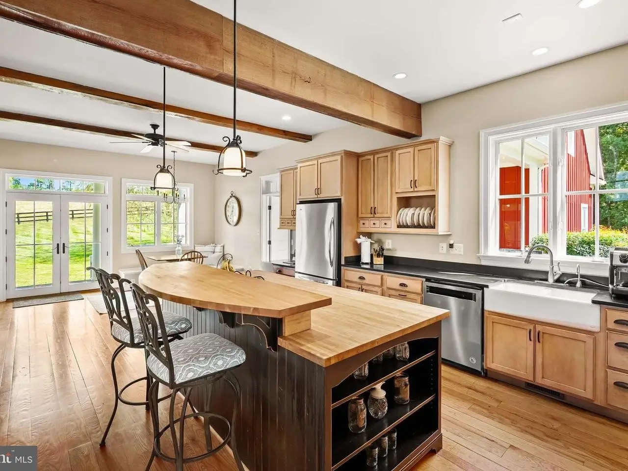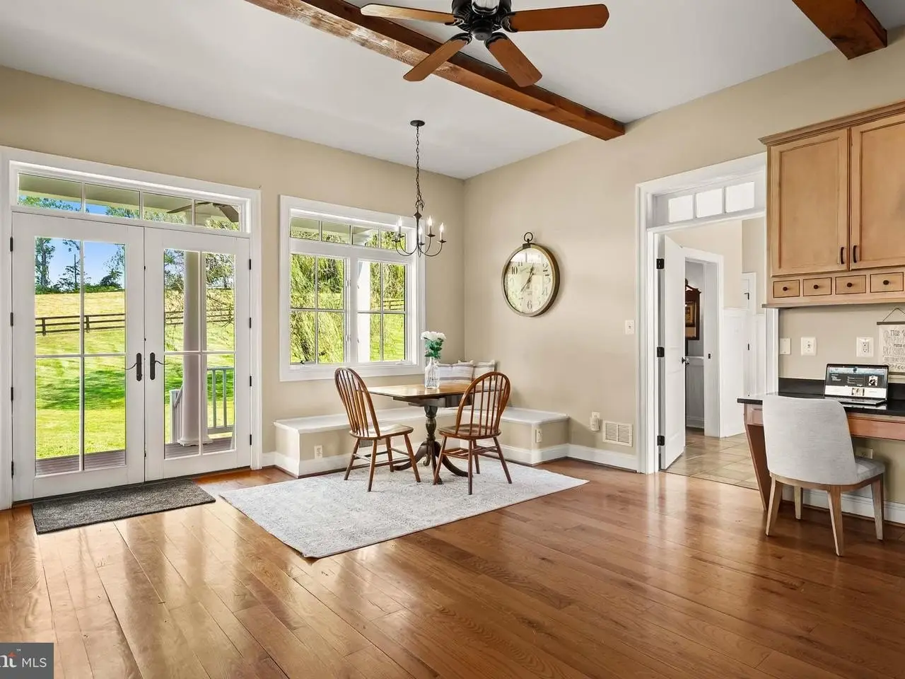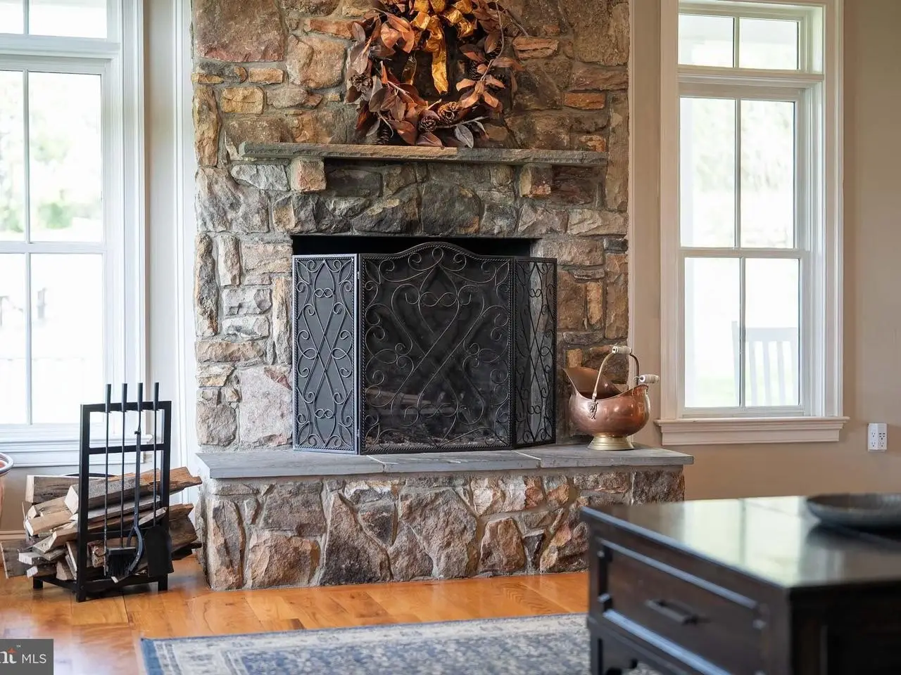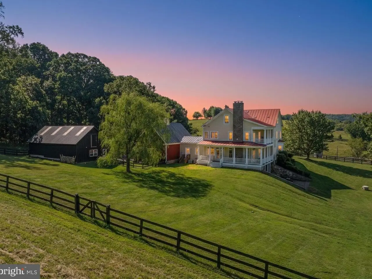 Nestled within the charming and historic area of Paeonian Springs less than a mile from the quaint Village of Waterford, this custom-designed farmhouse built in 2003 pays homage to the architectural aesthetics of the 1700s. Set on nearly 12 acres of picturesque landscape with stunning views in all directions, this residence seamlessly combines modern amenities with period-appropriate design, creating a harmonious blend of past and present. The farmhouse spans four levels, each meticulously crafted to capture the essence of colonial architecture. The exterior boasts a classic design with a wide, welcoming front porch. The interior showcases the craftsmanship of a bygone era while offering the comforts of contemporary living. The design carefully incorporates elements such as transom windows, hand-hewn cherry and oak flooring, thick wood beams and many other period-specific fixtures, transporting residents to a time when craftsmanship was an art form. With 5 bedrooms and five bathrooms across 4 levels, the farmhouse ensures ample space for both family and guests. Relax in the primary suite next to the wood-burning fireplace or take in the views from your private balcony. The 4th level guest suite is complete with large bedroom space, a living room, and an optional bath space with plumbing rough ins. The lower level is an entertainment area with a welcoming custom open pub-style bar, complete with mahogany bar tops, built in cabinetry, dishwasher, sink, beverage refrigerators and entertainment area set around a wood burning fireplace. Walk out to a large private paver patio with amazing beautiful stone retaining walls. The perfect space for grilling out with friends . Head inside for a movie in the media room.. there is also a full bath , an exercise room, and a storage room. For the car enthusiasts and hobbyists, this property offers a three-car attached garage with dog wash sink and electric car outlet. Plus a 4 car detached garage. Ascend to the level above the main garage, and you'll find a hidden gem with it's own entry-an expansive attic space brimming with potential. Finish it to your liking, and it could become a grand office, a playroom, or a studio. office space. The Pennsylvania Amish pole barn is 24' x 40', for a car collections, a workshop, or even the potential for a guesthouse conversion. 4 doors / bays and side entry access. The barn ceiling was constructed with scissor trusses in order to accommodate a future second floor or lift. The metal roof and board and batten siding complement the main farmhouse Enjoy the glorious sunrises and sunsets while still being close to shopping, restaurants, schools, Dulles Airport and the Metro for events in Washington D.C. Experience the annual Waterford Fair every Fall, holiday parades, weekly farmers markets or take in music from local artists at one of the many wineries and breweries, just minutes away. This custom-designed farmhouse offers a rare opportunity to live in an area full of historical charm while enjoying the comforts of modern living. From the wrap-around porch to the design details, this home is a testament to the enduring allure of 18th-century architecture and the dream of rural living. With its period-correct design and luxurious amenities, it truly represents the best of both worlds-a timeless masterpiece in the countryside yet close to modern conveniences. Come see the stunning views from every window.