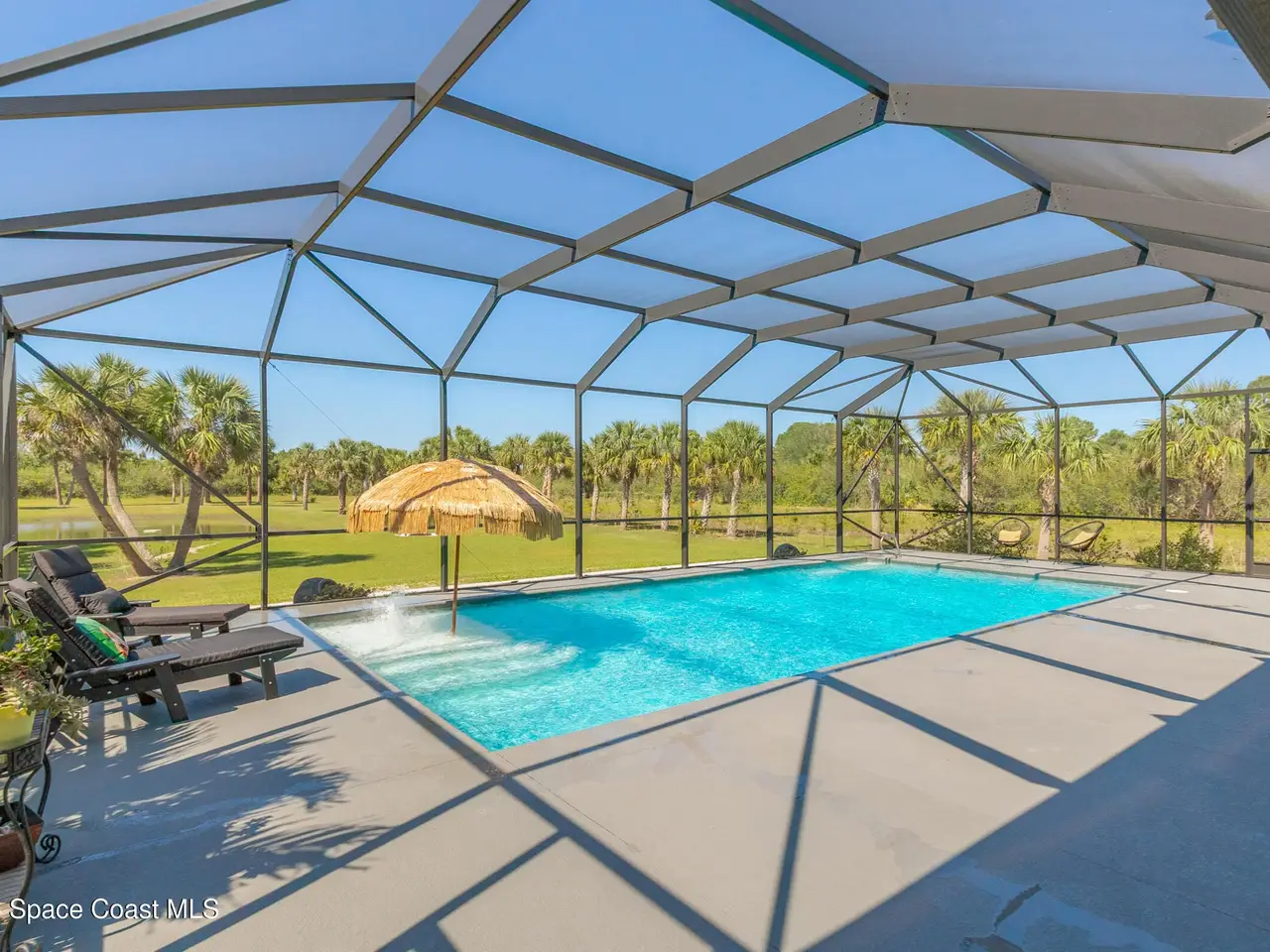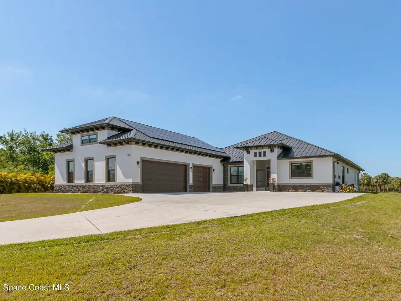 STUNNING PERFECTION best describes this GORGEOUS HOME in Deer Run, an Exclusive Equestrian Community. Experience the perfect blend of luxury, privacy, and convenience with this meticulously crafted, custom-built home. Set on 2.68 acres at the end of a tranquil cul-de-sac, this 3-bed 3-bath sanctuary offers unparalleled privacy. Minutes from I-95 and new Publix shopping center, this home delivers the best of both worlds-seclusion and accessibility. Spanning 3529 sf, the open concept design is modern luxury. Elegant quartz countertops and backsplashes complement the custom herringbone tile flooring, while the bedrooms and the bonus room feature rich white oak look LVP flooring. The home boasts LED lighting and modern neutral designs throughout. 12-foot ceilings make for an expansive Great Room and the electric fireplace adds ambiance and warmth. This energy-efficient home features a 50 yr metal roof, impact windows and doors and owned 22KW solar system for $27 electric bills monthly!