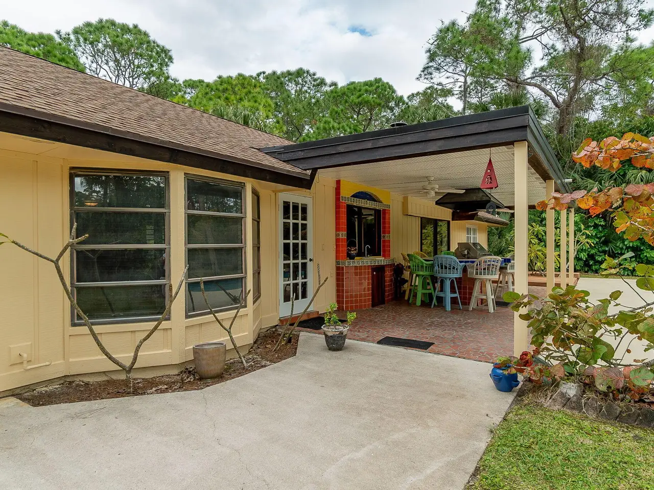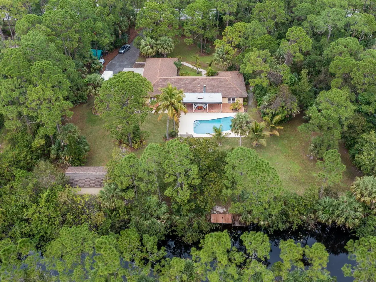 Rare find CANALFRONT four bed, two bath in Palm Beach Country Estates! This fabulous home backs up to a canal with a small private boat dock. This 1.34 acre private and secluded lot (as behind the canal is the 2,700-acre Sandhill Crane Wildlife Refuge PLUS there is a county 30-foot easement on the west side). The home features a newly refinished large pool and patio deck with 30-foot covered patio and summer kitchen with bar. Mexican tile throughout, large bedrooms, kitchen has stainless appliances, wood cabinets, granite countertop, pass thru to patio. Real wood burning fireplace, real wood exposed beams, interior laundry room, French doors, crown molding, large entry way, new epoxy garage floors. Plenty of storage with exterior shed and horse barn! Paved road! Owner has lived here for 35-plus years! No HOA! Must see!