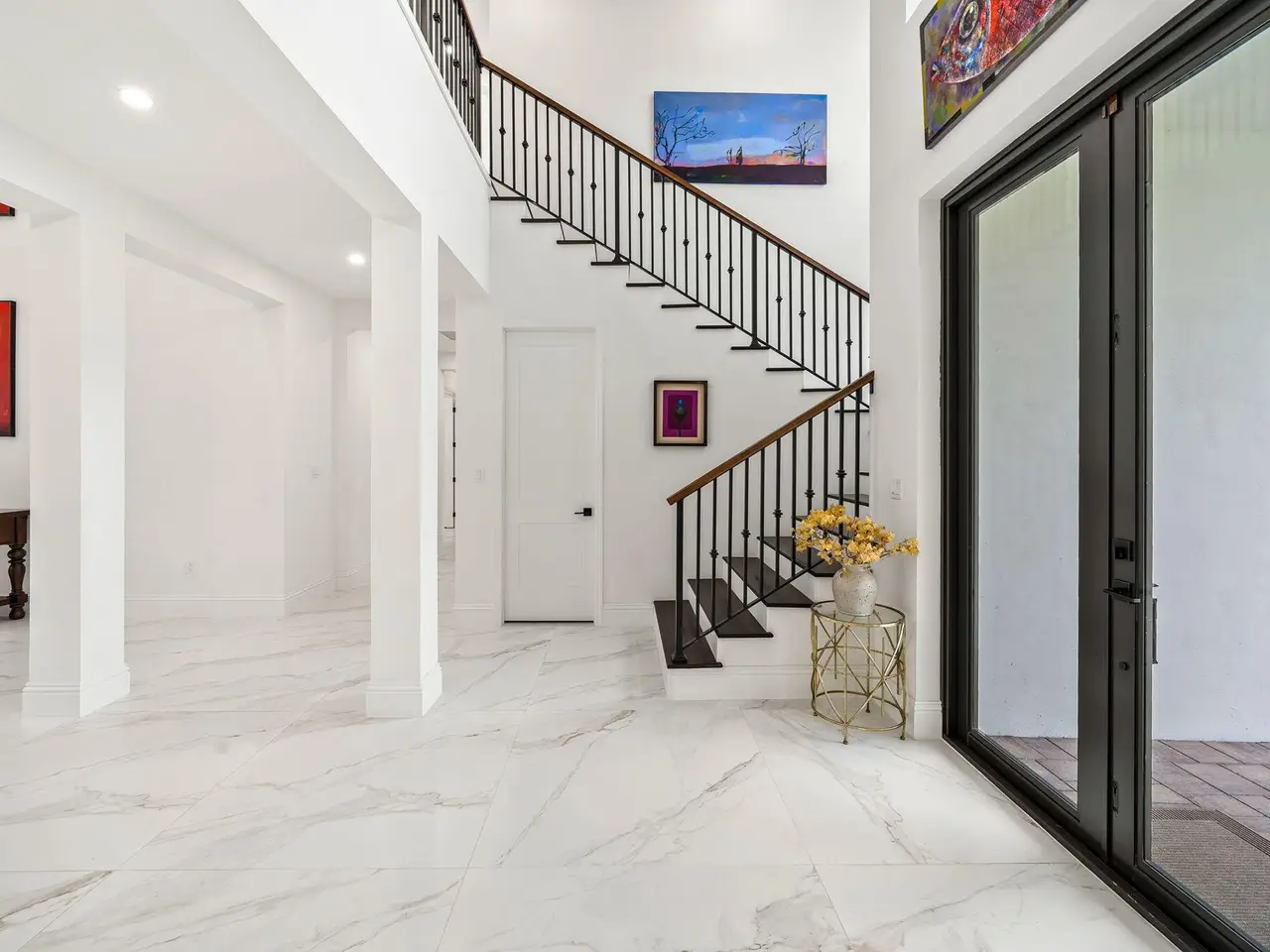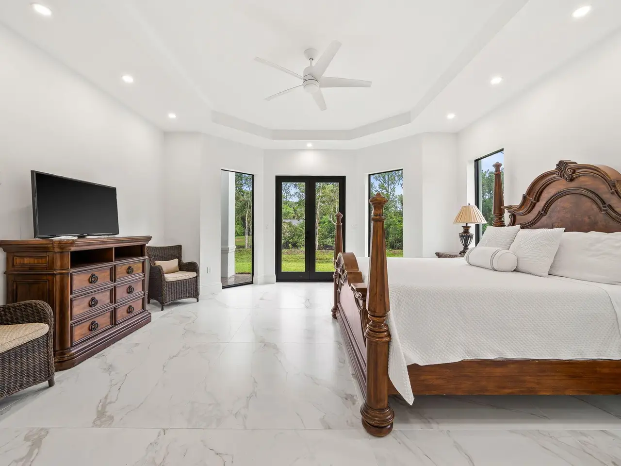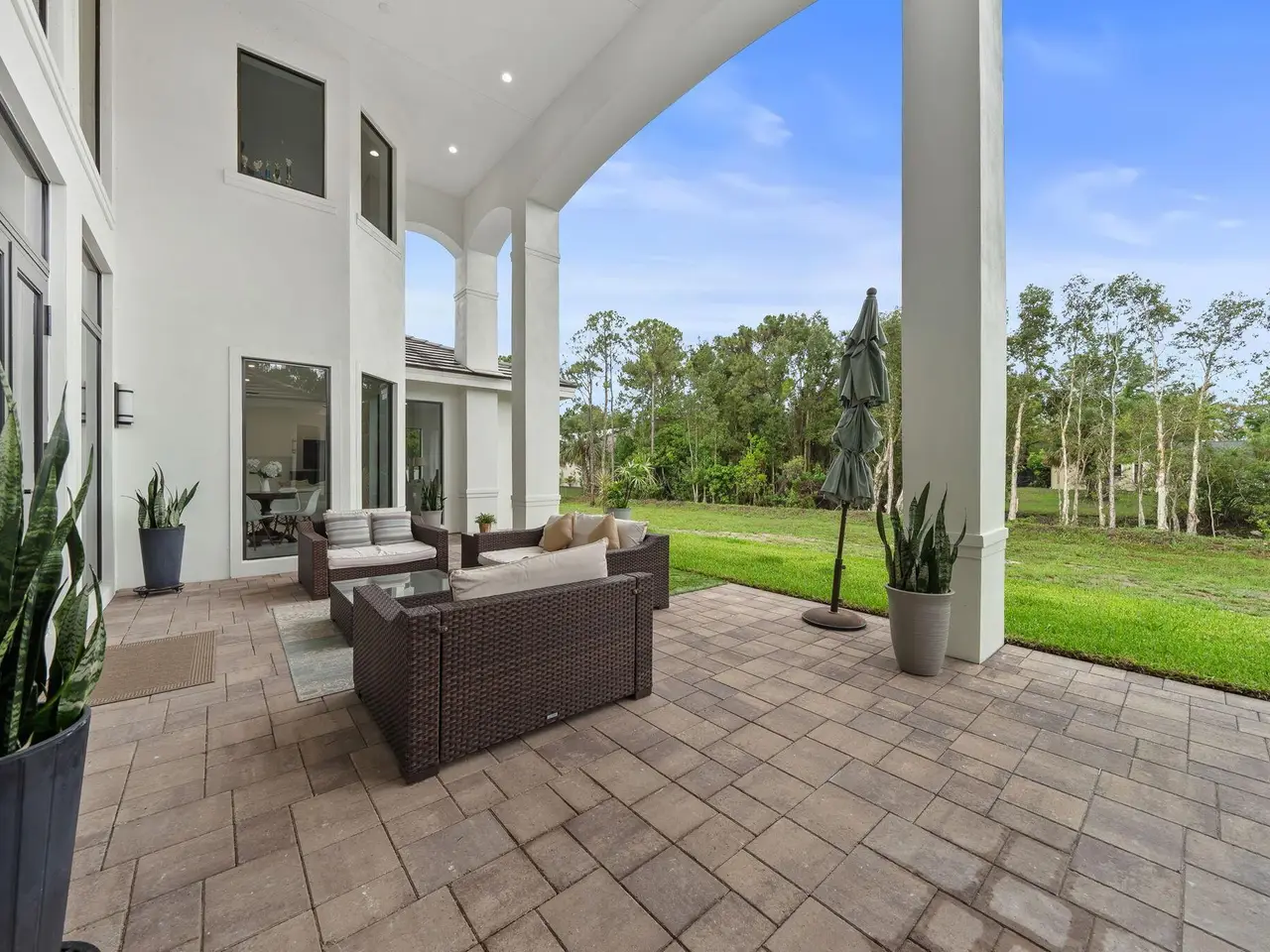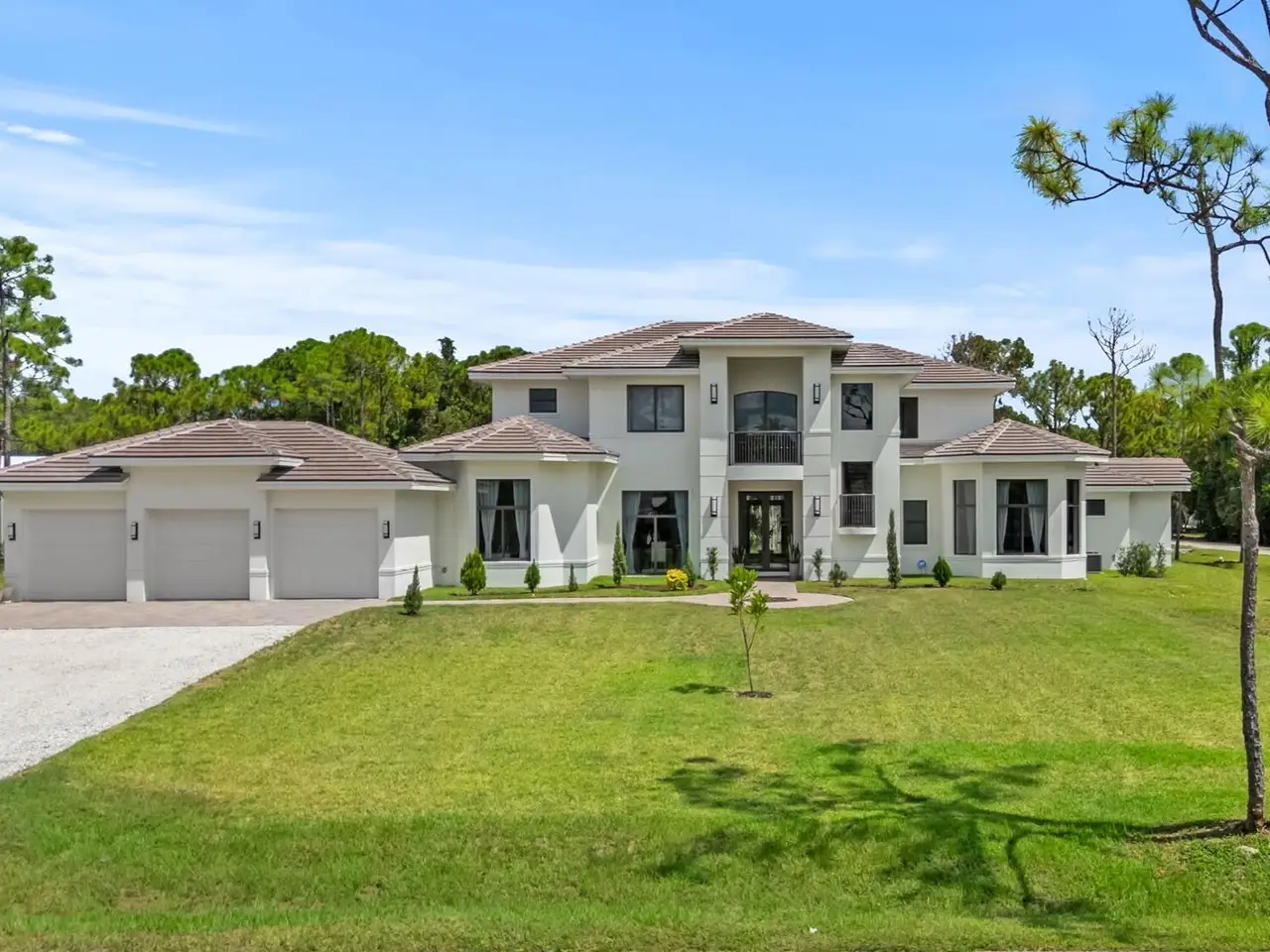 Step into your own private resort compound in Palm Beach Country Estates, a brand new 2024 luxury home designed for both grand entertaining and tranquil everyday living. Now, currently priced $400,000 below appraised value (appraisal in document section of listing) and an unbelievable value for new construction at appx $450/SqFt. Situated on a premier 1+ acre corner lot with city water and a prime location near the main entrance, this custom-built estate offers 5,495 sq. ft. of beautifully crafted interiors, featuring 5 bedrooms plus an office and loft, and 6.5 bathrooms including private en suites and a convenient cabana bath.From its striking architectural elevations to its long private driveway and extra deep 3 car garage, every element of this property exudes scale and