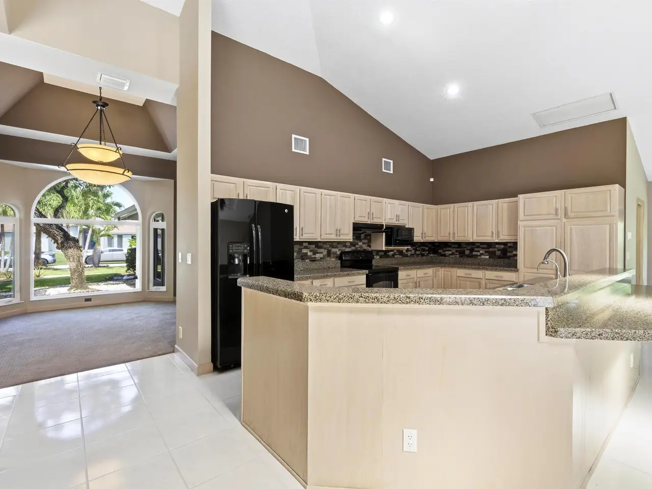 Nestled within the prestigious gated community of Steeplechase, this one-story residence offers timeless comfort, thoughtful design, and over an acre of lush privacy. A double-door entry opens to a welcoming foyer and spacious living room anchored by a double-sided wood-burning fireplace and sliders that lead to the screened lanai and pool. Soaring vaulted ceilings, skylights, and large impact windows fill the home with natural light, creating an inviting ambiance throughout. The split floor plan provides privacy for the primary suite, featuring his-and-hers walk-in closets, dual vanities, a soaking tub, separate shower, and water closet with bidet.