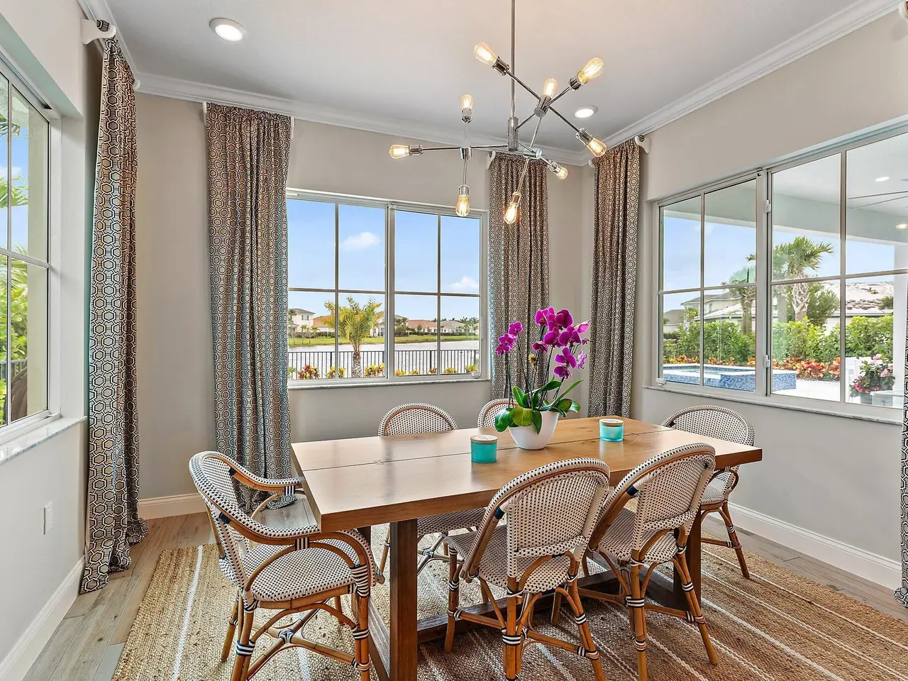 Enjoy stunning wide lake views from the back yard of this professionally decorated home built by K. Hovnanian Homes in 2023. Avenir is conveniently located near Sand Hill Crane Golf Club, an 18-hole championship course, PBIA, shopping and fine dining. Community amenities include resort-style pools, spa, pickleball, tennis, two fitness rooms, indoor/outdoor lounge, outdoor game area, playground, community club house, and much more.