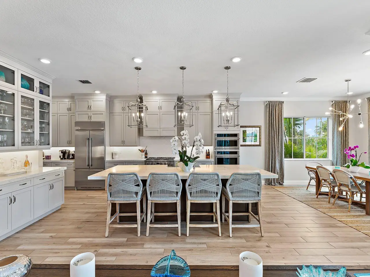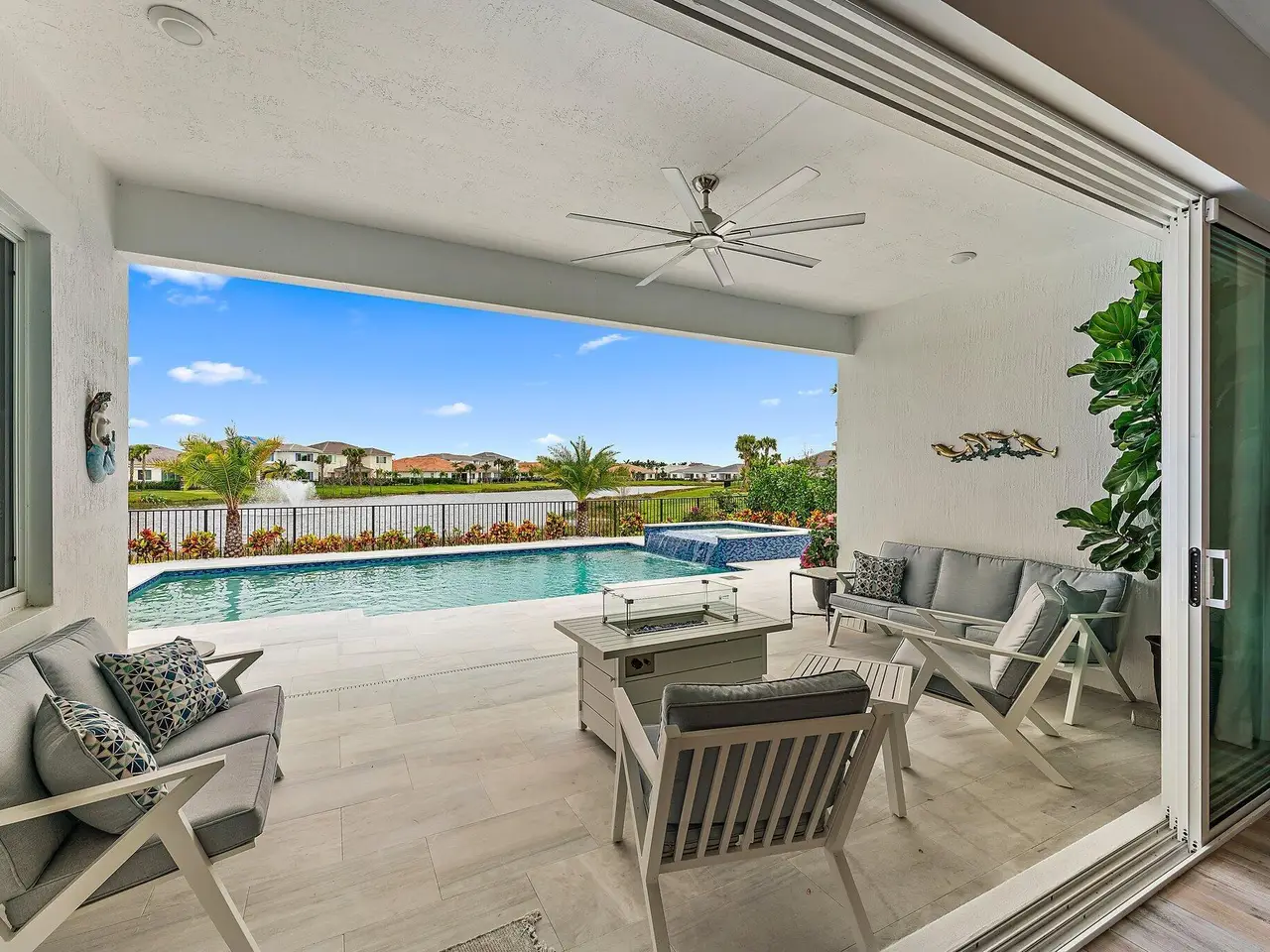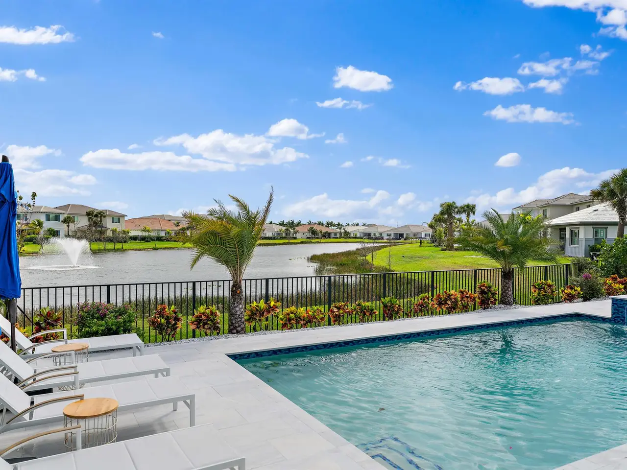 Enjoy stunning wide lake views from the back yard of this professionally decorated home built by K. Hovnanian Homes in 2023. Avenir is conveniently located near Sand Hill Crane Golf Club, an 18-hole championship course, PBIA, shopping and fine dining. Community amenities include resort-style pools, spa, pickleball, tennis, two fitness rooms, indoor/outdoor lounge, outdoor game area, playground, community club house, and much more.