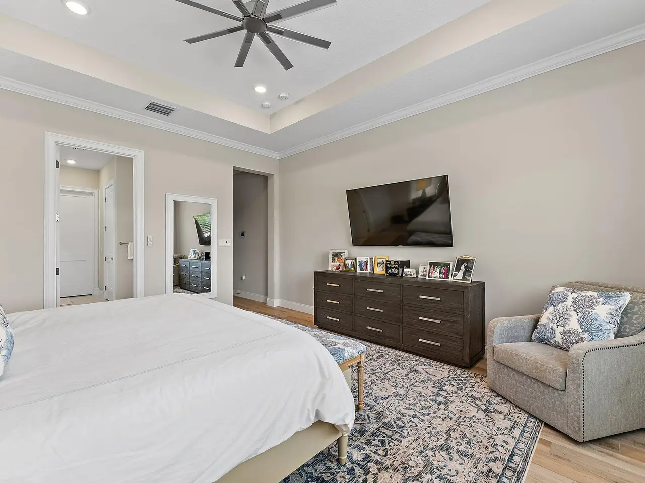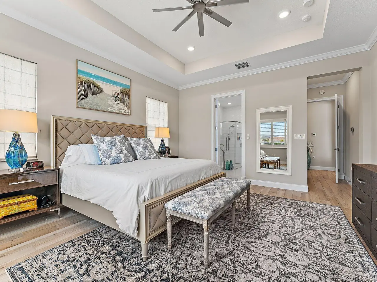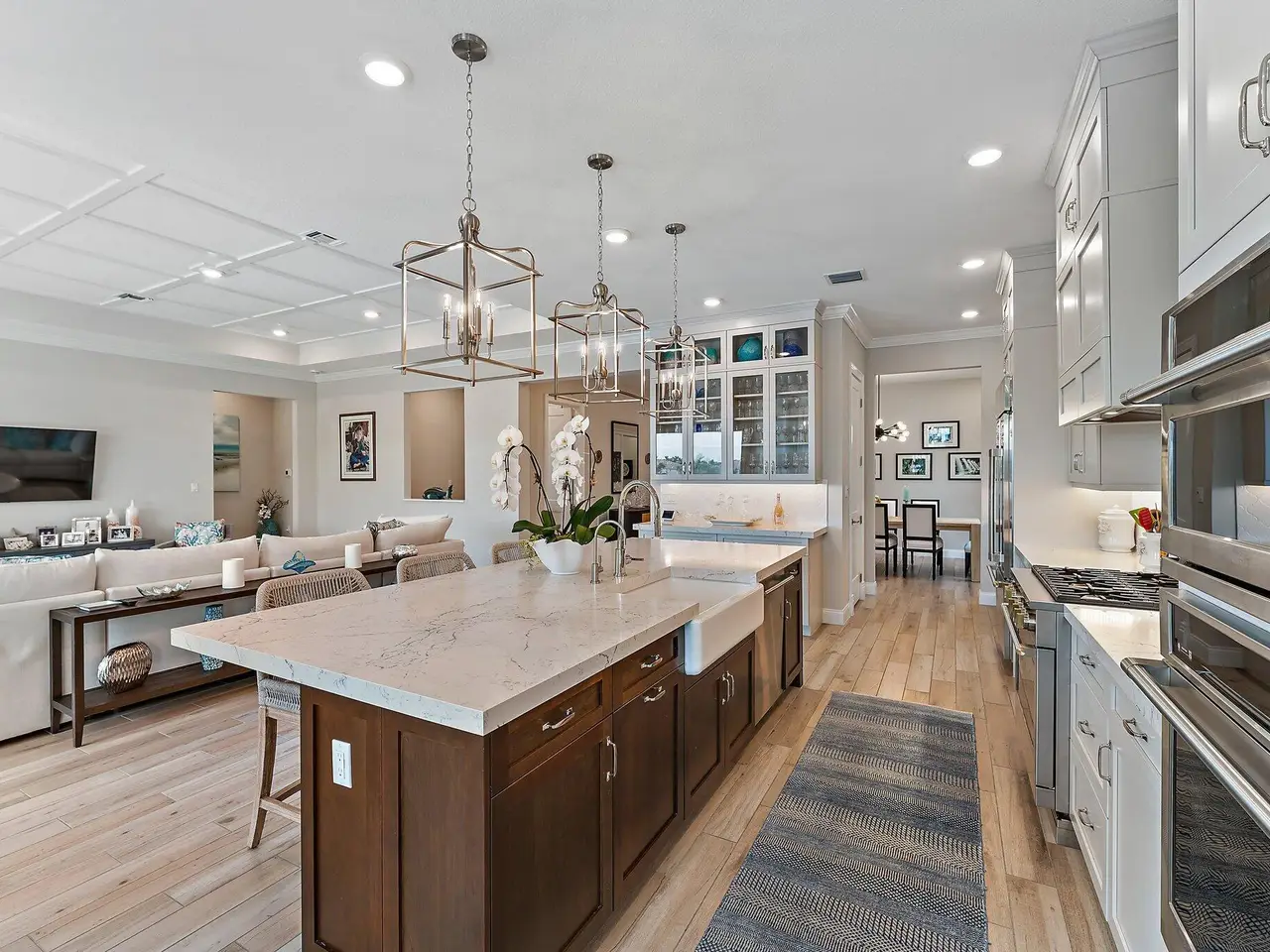 Enjoy stunning wide lake views from the back yard of this professionally decorated home built by K. Hovnanian Homes in 2023. Avenir is conveniently located near Sand Hill Crane Golf Club, an 18-hole championship course, PBIA, shopping and fine dining. Community amenities include resort-style pools, spa, pickleball, tennis, two fitness rooms, indoor/outdoor lounge, outdoor game area, playground, community club house, and much more.