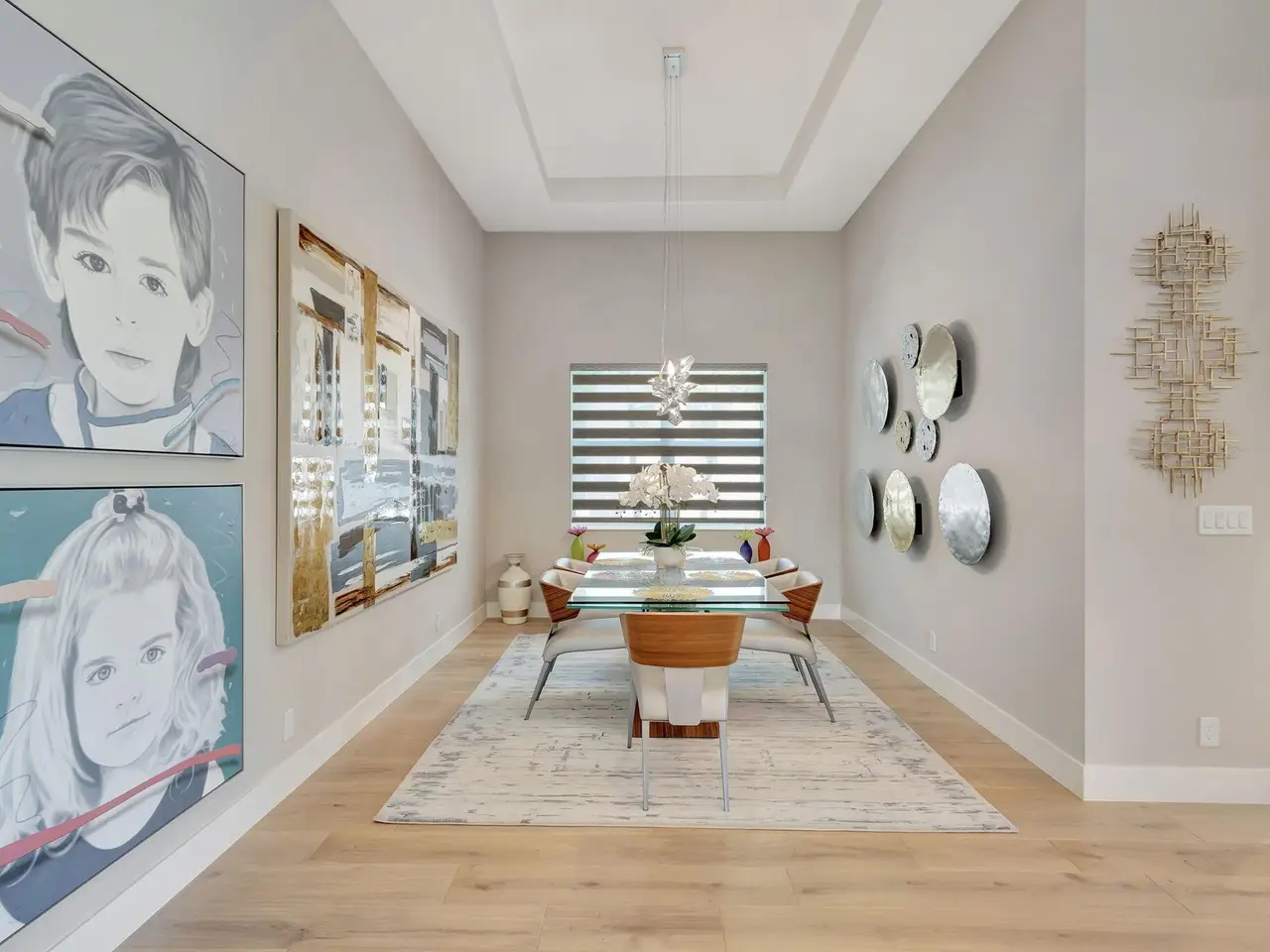 Stunning three bedroom, three bath and office single story home nestled in the premier Regency neighborhood located in the Avenir Community in Palm Beach Gardens. This beautifully designed home spans 2, 729 square feet of living space and features, impact glass throughout, volume ceilings, warm wood flooring with every upgrade imaginable. The expanded great room with transition windows offers an abundance of natural light and serene vistas, an intimate space for relaxing or entertaining. The gourmet kitchen boasts upgraded appliances, an oversized island, spacious breakfast nook and tranquil views of the outdoor paradise. The luxurious expanded primary suite is a true retreat with views of the outdoor water features and lush landscaping. The primary bath is complete with double sinks, a soaking tub, a glass-enclosed shower, and upgraded closet built-ins. The office and VIP guest bedrooms are spacious and suited for privacy. The backyard is a private oasis with partial lake views, enhanced landscaping and private garden walkway. The covered loggia offers remote screen and views of the tranquil landscape lighting. Additional features include beautiful window treatments, one-of-a-kind light fixtures, expanded garage with epoxy floor, enhanced exterior elevation, built in closets and much more. Residents of Regency at Avenir enjoy exclusive access to The Pearl, the community's 22,000 square foot private clubhouse offering an onsite activities director, a wide array of special interest clubs, activities, and events. Amenities at The Pearl include a picturesque resort-style pool, spa, pickleball, tennis, two fitness centers, wine storage, card and game rooms, ball room, indoor/outdoor lounge, a golf simulator, outdoor amphitheater, outdoor game area and much more. Conveniently located near Sand Hill Crane Golf Club an 18-hole championship course, The new Nest Par 3 Course and various dining options. Across the street is PGA National's Estate Course, with membership options available. Minutes away from shopping, dining, the Airport, Palm Beach and so much more.