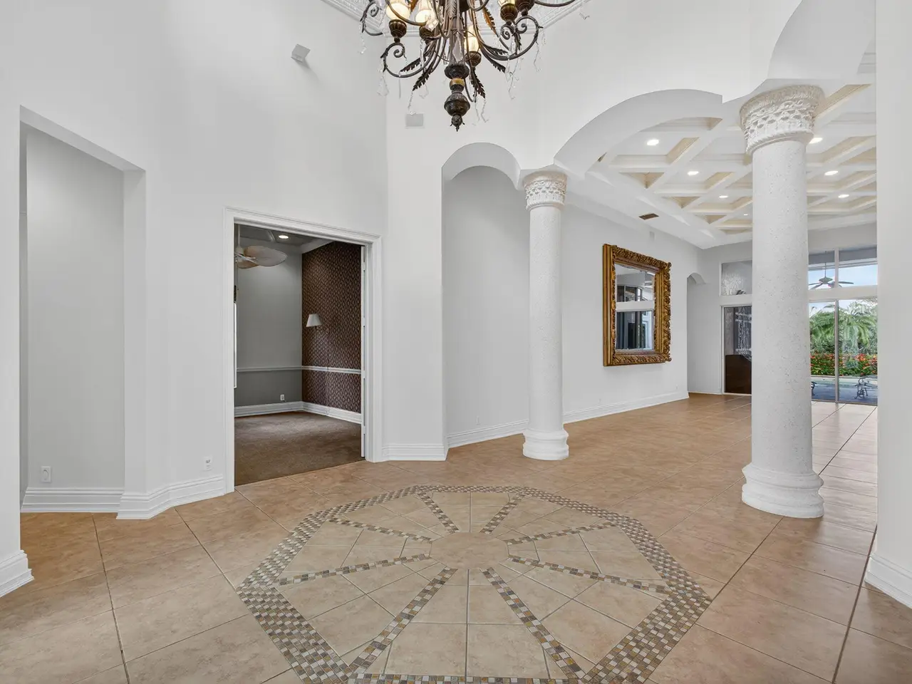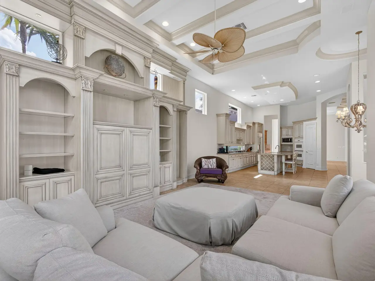 Golf, Luxury, Lifestyle - It All Comes Together Here. Situated in the highly desirable enclave of Via Paradiso, just a short stroll from The Country Club and all its world-class amenities, this stunning residence offers panoramic views of the 9th fairway on the Arthur Hills Sunset Course. The single-level Raphael floor plan is thoughtfully designed with 3 spacious bedroom suites plus a dedicated office, ideal for both relaxation and productivity. Soaring ceilings and an abundance of natural light greet you upon entry, showcasing elegant architectural details and an effortless flow throughout. The gourmet kitchen is a dream for entertainers, seamlessly connected to the butler's pantry, bar, and adjacent living and dining areas.