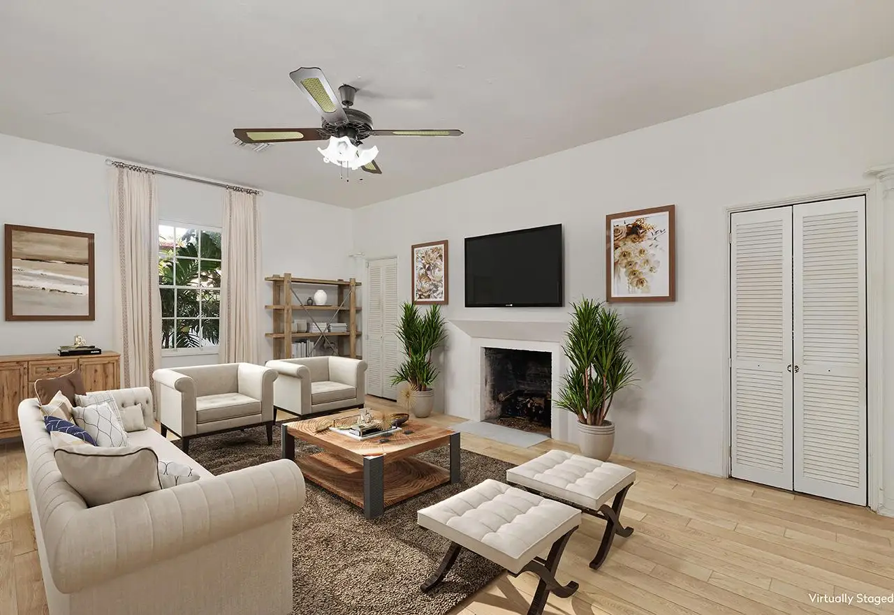 Walk back through time as you approach architect Howard Major's personal cottage nestled in historic Phipps Plaza, one block from the Ocean in midtown Palm Beach. Built in 1941 by the renowned architect and landmarked, the classic Florida-style cottage sits in a secluded setting in the Phipps Plaza cul-de-sac, surrounded by lush greenery. Included in the purchase is an adjoining landscaped lot which has the potential for a pool or water feature.