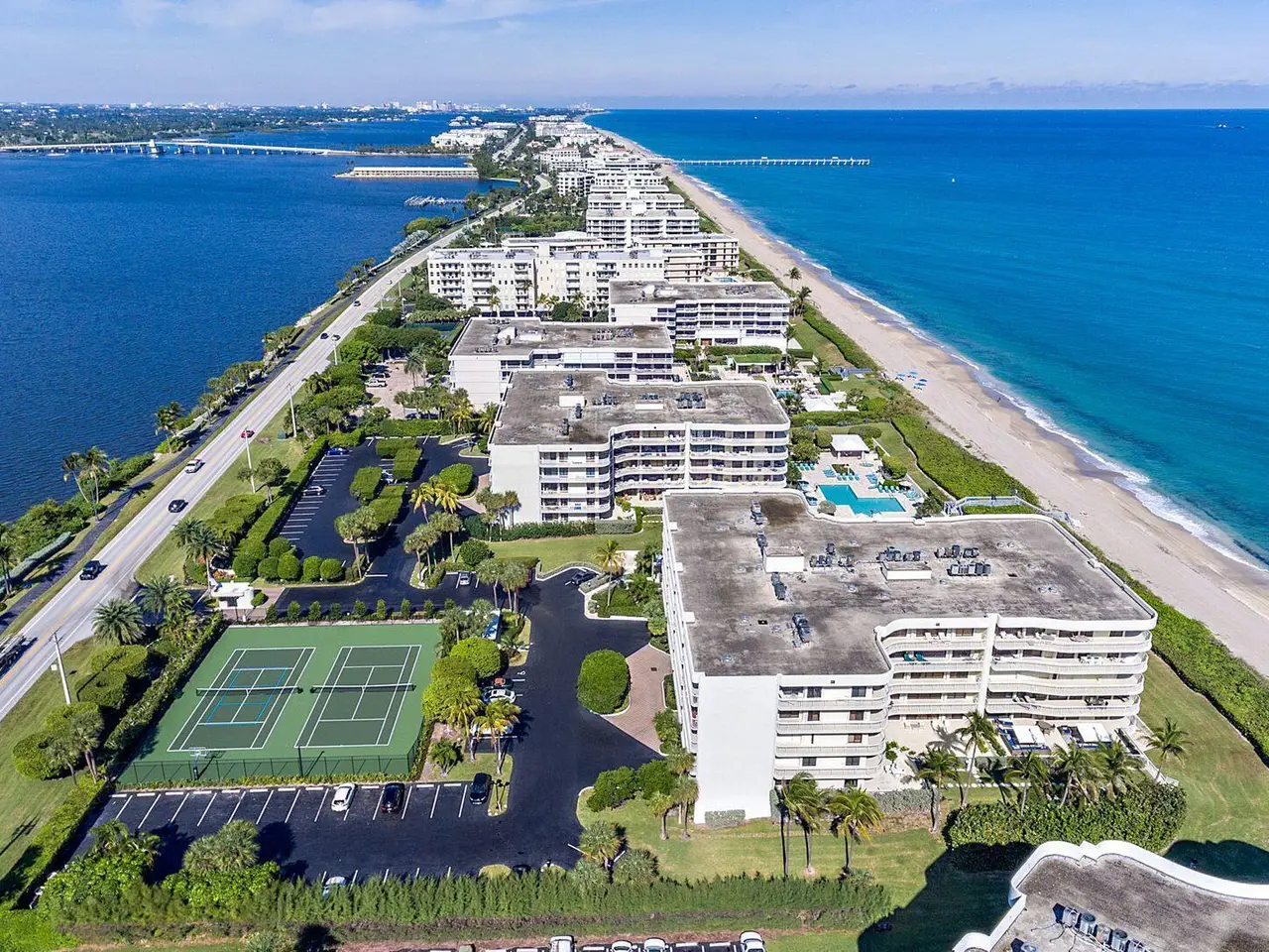 Palm Beach spacious 2-bedroom, 2 bath apartments, over 2000 Sq. Ft, on the ocean with an oversized terrace of 1000 sq ft, just a stone's throw to the ocean. New impact glass doors. Effusive radiant sunrises. Lives like a home: one can enjoy the ocean, pool, tennis courts, exercise room without going in the elevator. The building has a 24-hour manned gate and underground parking. Everything in the building has been redone; lobbies, hallways, elevators, pool and community room. Great for a service animal. Just reduced $100k. Concrete restoration has been completed. Gate house, charging station, assigned underground parking.