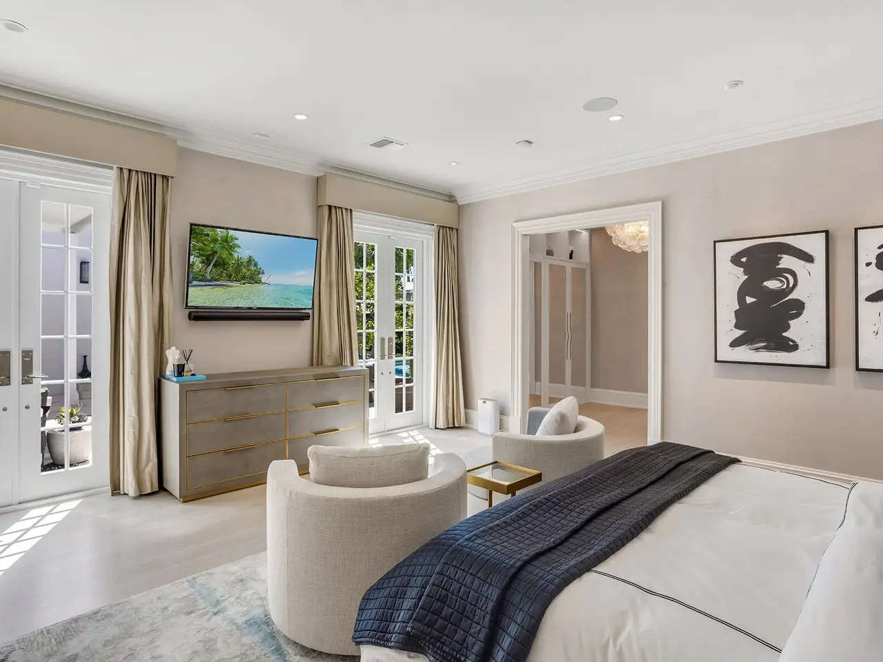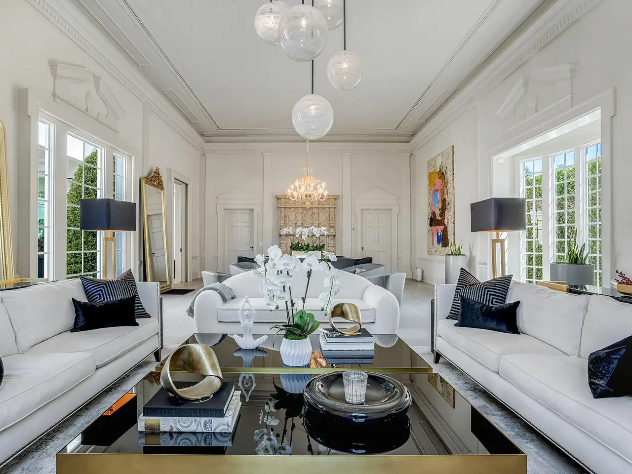 Tucked away on one of Palm Beach's most coveted cul-de-sacs and just a short stroll from the vibrancy of town, 134 Casa Bendita is a turn-key and timeless architectural jewel that seamlessly blends classic elegance with modern sophistication.From the moment you arrive, this stunning home captivates with its impressive street appeal, a grand facade, and meticulously curated designer landscaping that sets the tone for what lies within. Step inside to soaring 18-foot ceilings and a voluminous, sun-drenched great room, a true showstopper - and the heart of the home - which is both dramatic and inviting. Providing unparalleled indoor-to-outdoor living on an oversized lot, the residence is perfectly suited for both refined entertaining and quiet repose.