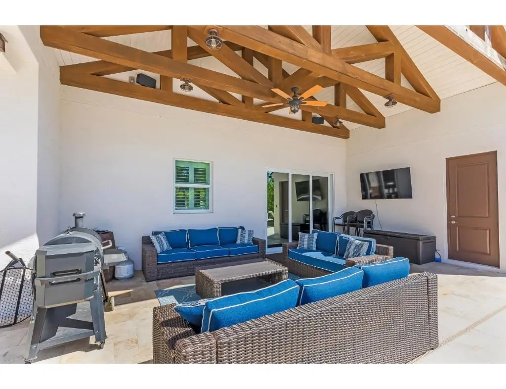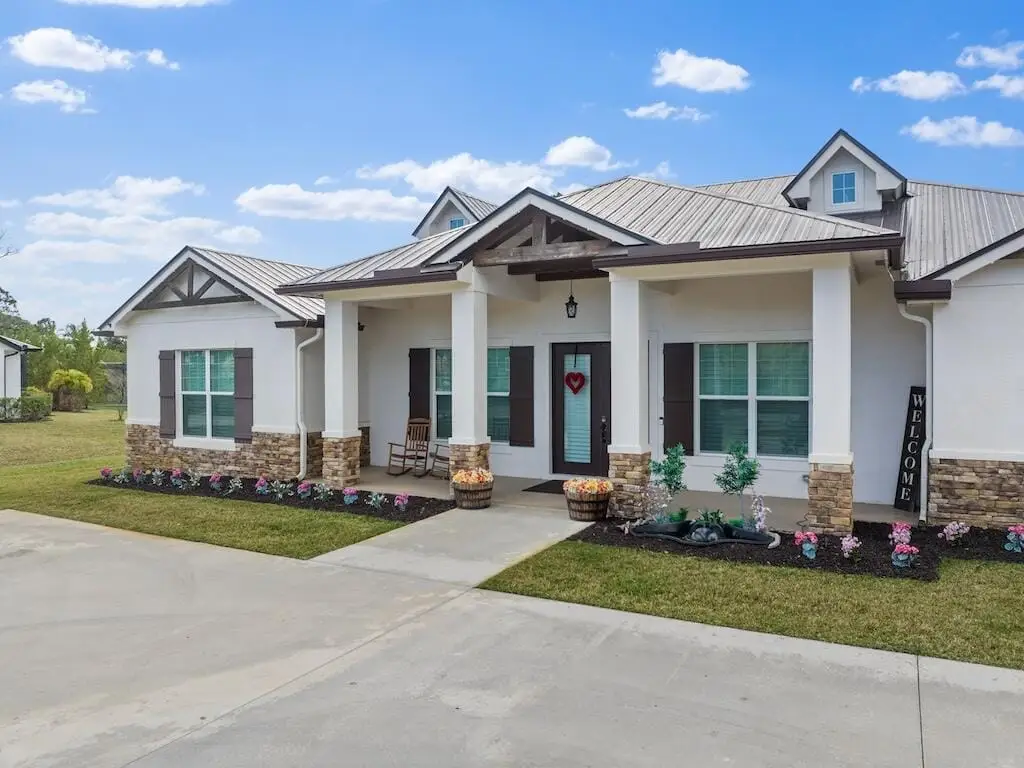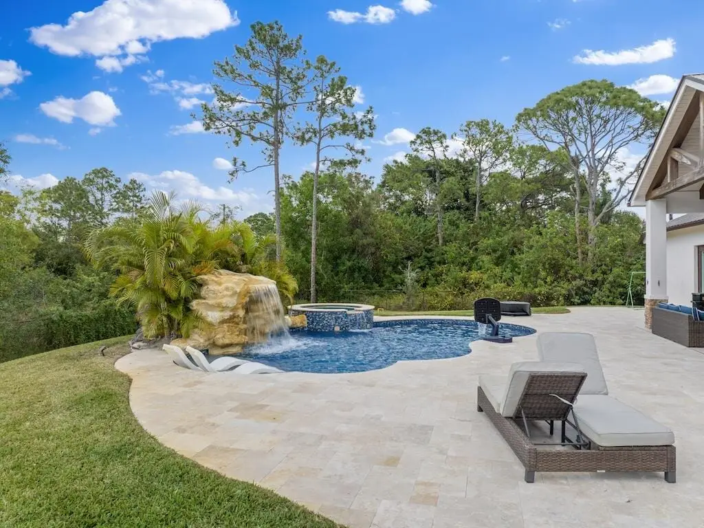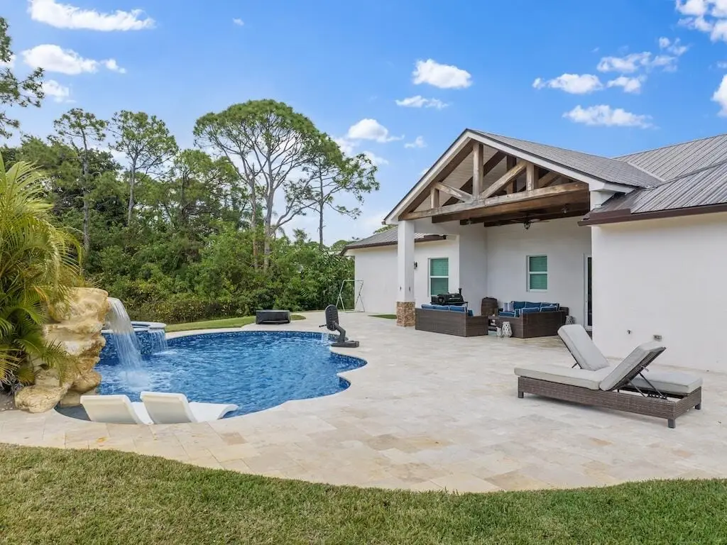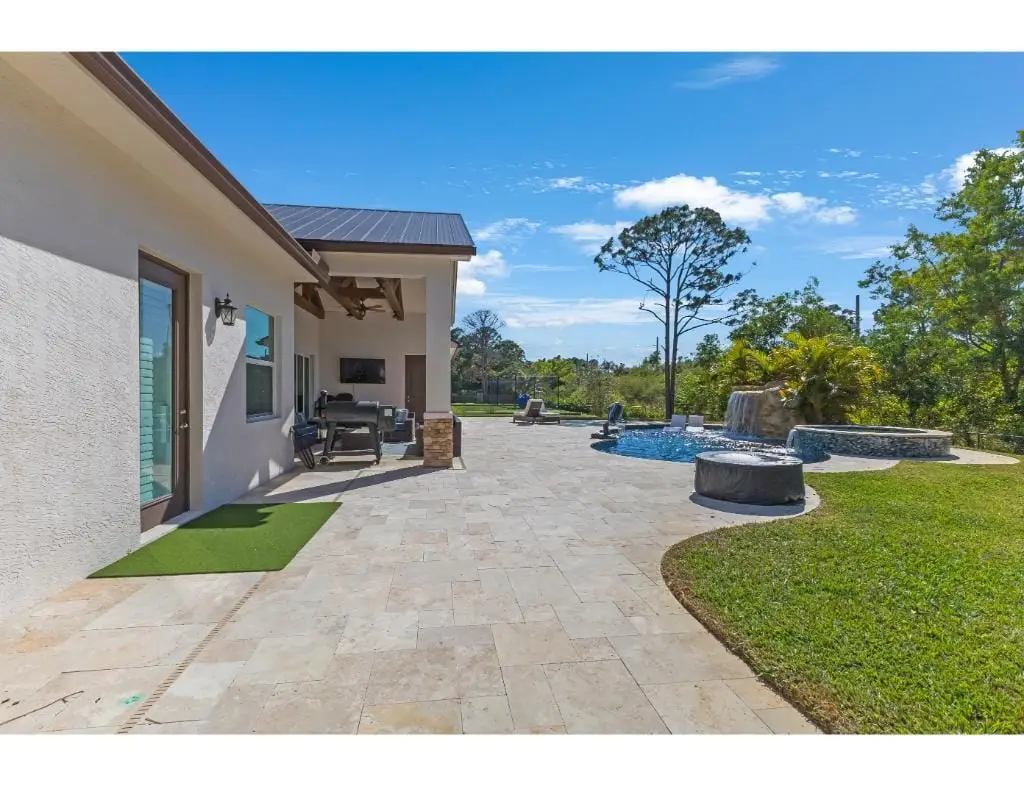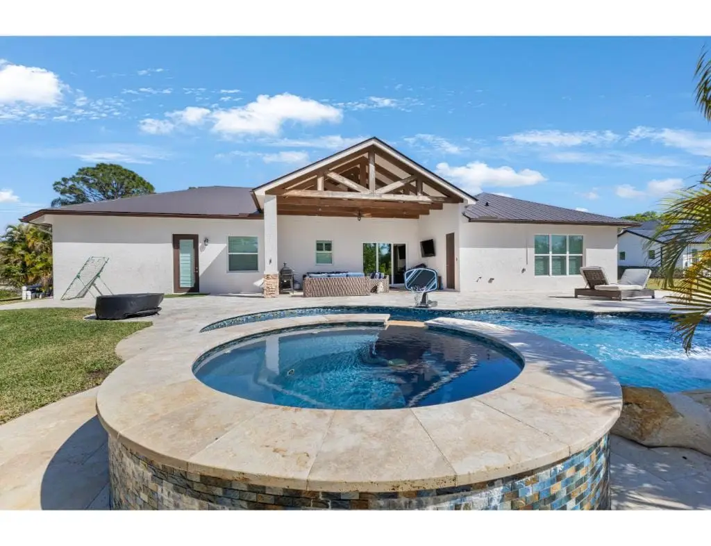Welcome home! Discover this exceptional CBS residence in the highly sought-after Evergreen/Crane Watch neighborhood. This meticulously maintained property is situated on a 1-acre lot and was constructed in 2020. The home features 3 bedrooms, 2 1/2 bathrooms, an oversized detached 2-car garage, and a spacious flex room (19' x 10') suitable as a game room or 4th bedroom. Highlights include a metal roof, hurricane impact windows and doors, over 3,000 square feet of living space, and a custom pool with a built-in jacuzzi and rock waterfall. Additional amenities comprise a custom-built bar with a granite countertop and plantation shutters throughout.
