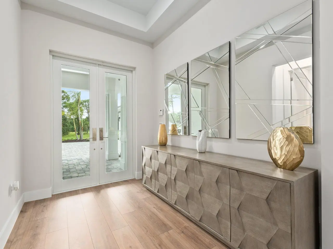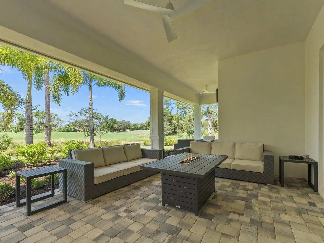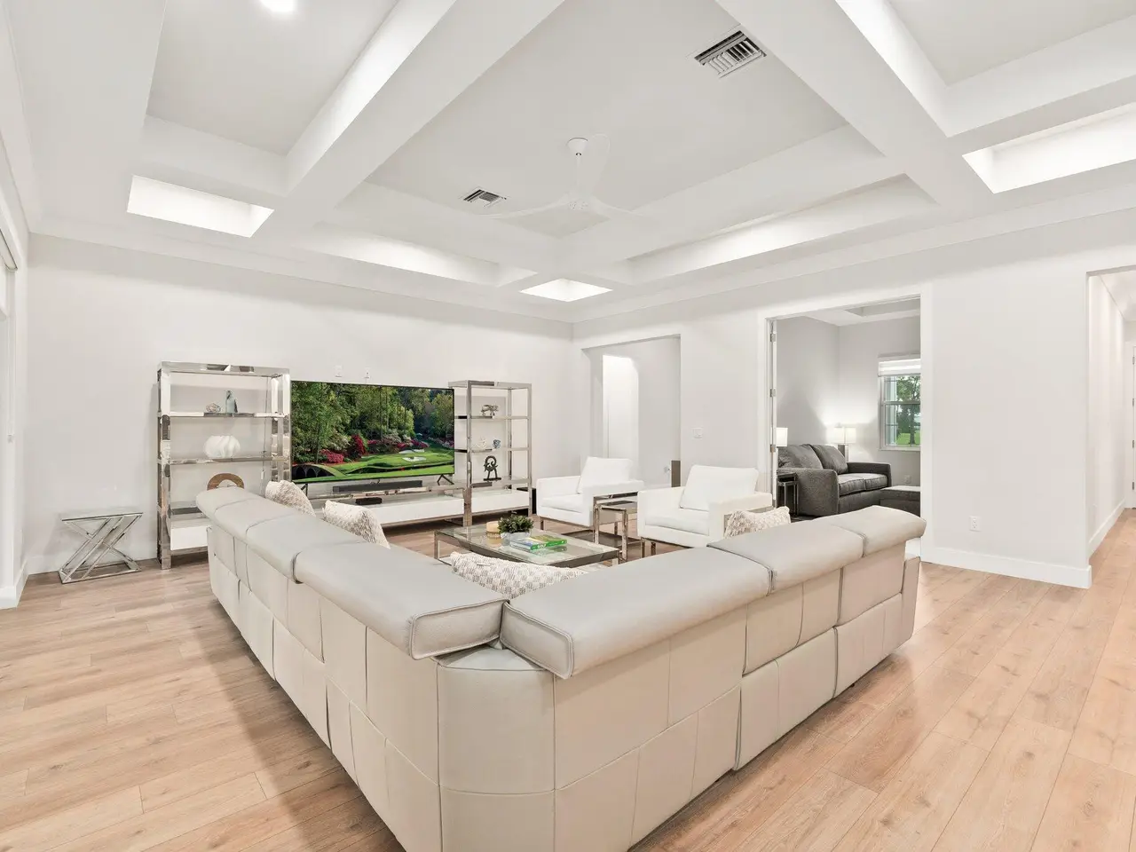 Welcome to this brand-new luxury home on the first hole of the Cape Club, where every detail blends elegance with comfort. Wide-plank wood floors lead you through open living spaces with coffered ceilings and crown molding, while natural light pours in through impact windows, framing serene golf course views. The chef's kitchen offers Bosch appliances, quartz countertops, and soft-close cabinetry -- the perfect setting for both quiet mornings and lively gatherings. The owner's suite is a private retreat with its own climate control, custom closets, and a spa-like bath featuring a soaking tub and separate shower. Step outside to your half-acre lot and take in the in the beauty of manicured greens just beyond your patio. The Cape Club's championship course features Augusta bunker sand, water views, and a modern clubhouse with dining, live music, and a fitness center. Here, luxury living meets the perfect blend of relaxation, recreation, and community. At the Cape Club, the lifestyle is an unforgettable as the game itself. The newly renovated clubhouse isn't just a gathering place - it's the heart of the community, known for hosting, elegant charity events, prestigious Bridgestone events and attracting major players from the golf world. Here, it's not unusual to spot familiar faces from the professional circuit while enjoying a handcraft a cocktail on the patio or dinner with sweeping views. From intimate evenings by the fire pit to high energy tournament weekends, every moment feels like a front row seat to something special. The Cape Club's championship course futures, Augusta Bunker sand, shimmering water features, and striking elevation changes. This is more than a home - it's a front row pass to a world of luxury, recreation, and community.