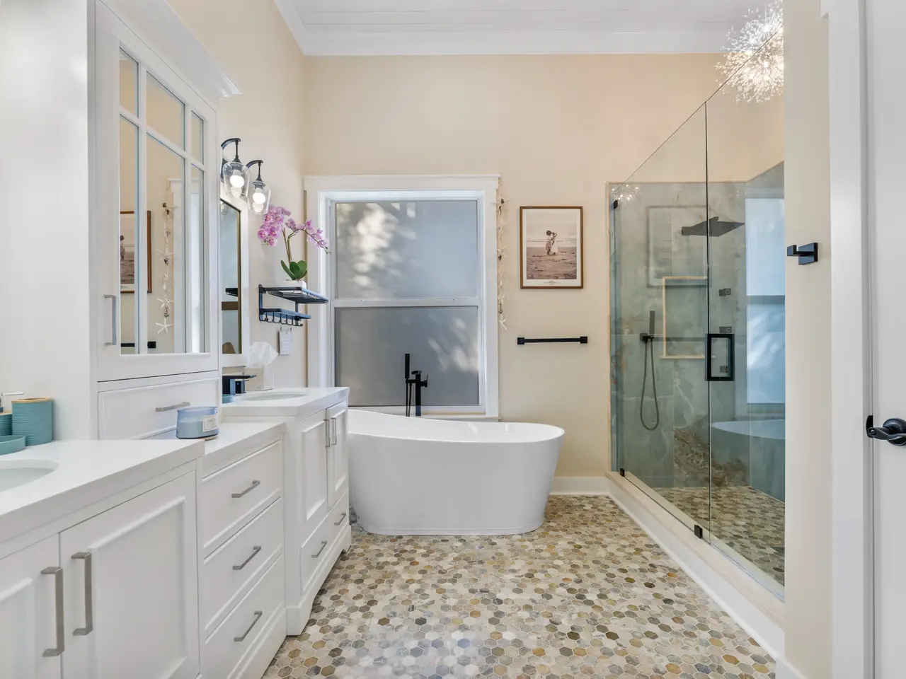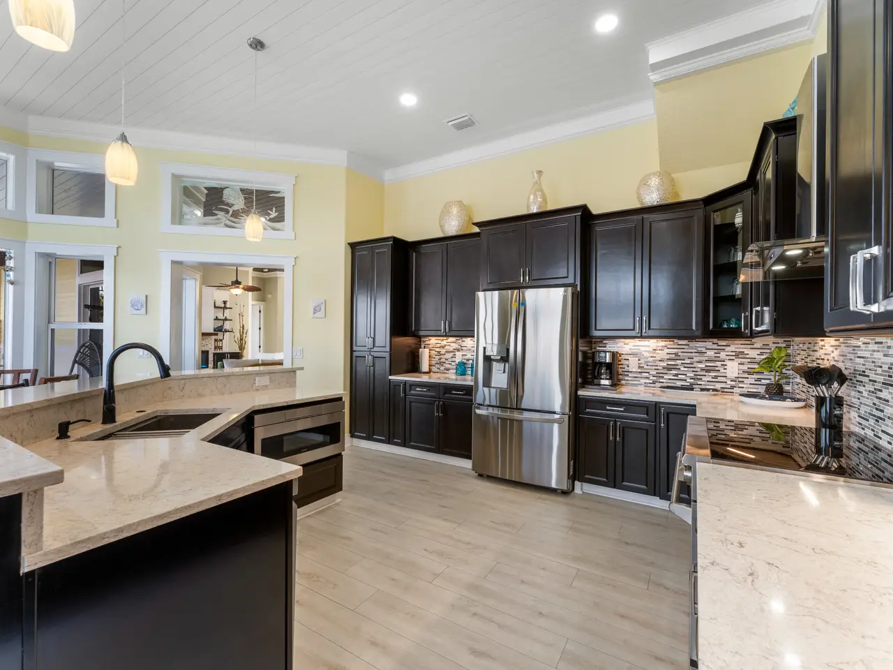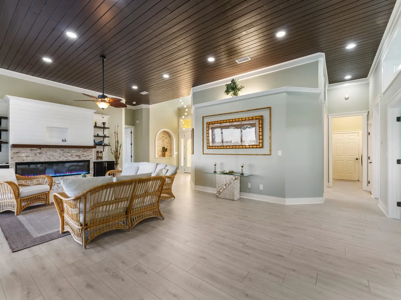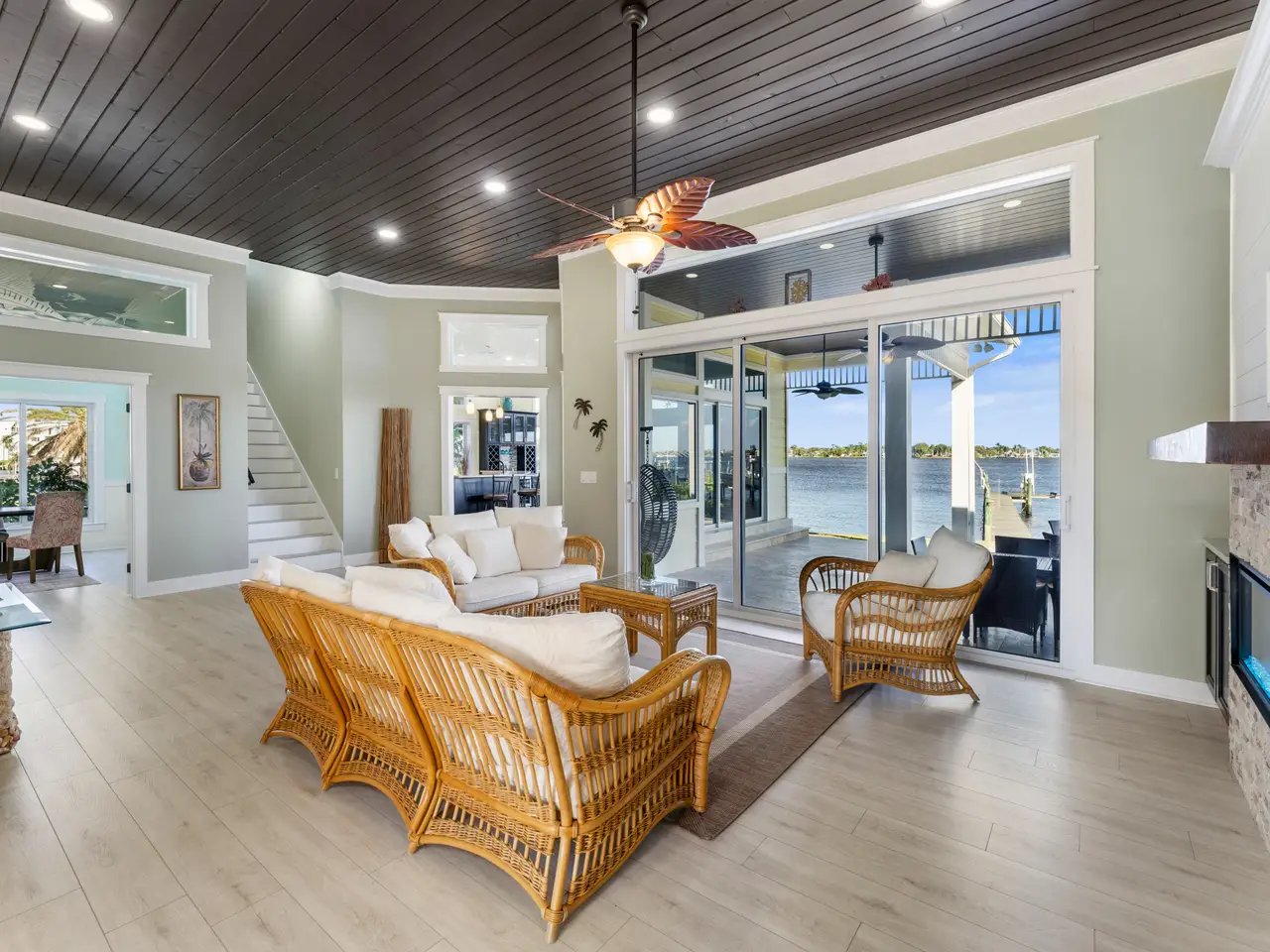This waterfront pr?p?rty ?how???es an owner's e?c?ptional attention to detail at every turn. With breathtaking water views from every angle, the craftsmanship is evident in features such as lighted molding and tongue-and-groove ceilings. The upgraded kitchen and bathrooms further enhance the home's appeal. The house includes two master suites: one on the lower level with exceptional views and another upstairs featuring a bird's-eye view, as well as a private patio. The harmonious flow of extensive woodwork and thoughtfully chosen color palette will impress even the most discerning designers. The extended patio, complete with an outdoor kitchen, serves as the ultimate destination for family gatherings, seamlessly connecting to the kitchen and family room. Feature sheet attatched.