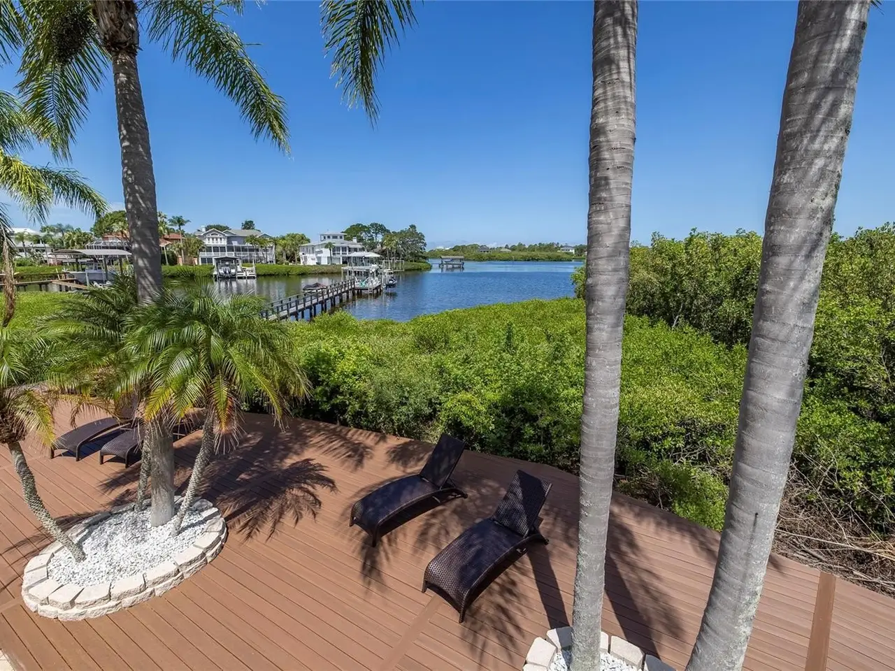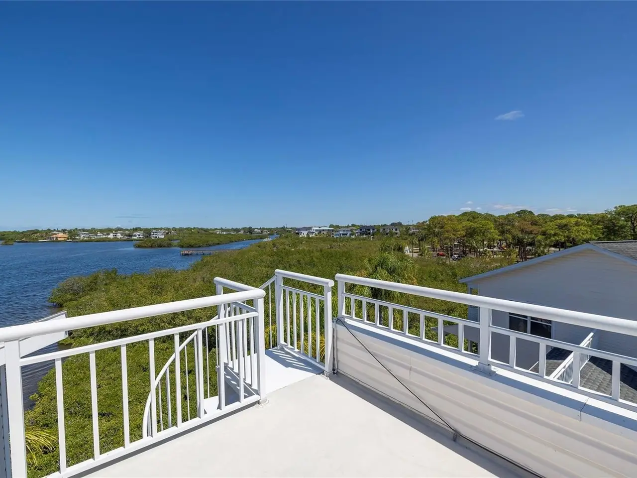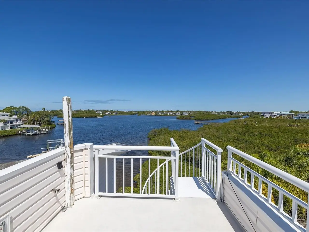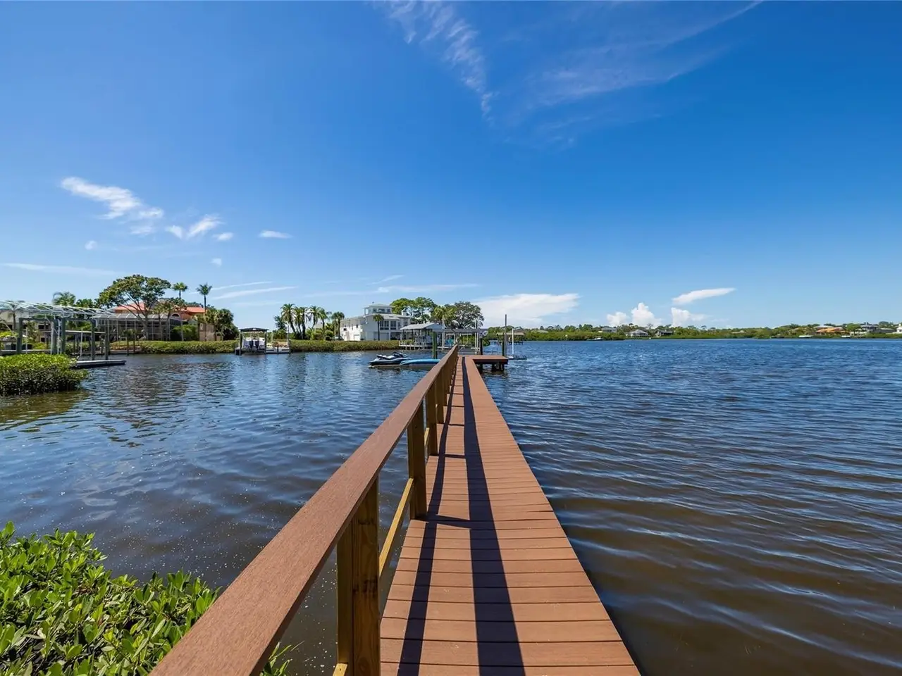 Discover the pinnacle of waterfront living in this extraordinary residence offering 5469SF of thoughtfully designed space. With 6 bedrooms, 5.5 bathrooms, and two luxurious primary suites, this home is perfectly tailored for multi-generational living. Nearly every room captures breathtaking water views, blending elegance and serenity at every turn. Designed with versatility in mind, the home features two distinct wings joined by a remarkable custom, high-tech bookshelf that opens by key fob. Closed, it’s a sophisticated architectural statement; open, it reveals the West Wing with a formal living room, library/guest suite, large private office with extraordinary water views, elevator, and a dramatic staircase leading to the second primary suite. This third floor primary suite with elevator access offers westward water views, a fully remodeled spa bath with soaking tub, walk-in steam shower, and dual vanities and dual walk in closets. The East Wing is equally impressive, offering a fully renovated open-concept kitchen with custom two-toned cabinetry, expansive marble counters, Wolf appliances, double ovens, induction cooktop, and wine fridge. Expansive porcelain plank flooring, wood accents, custom iron railings, and designer chandeliers elevate the home’s style. Upstairs, three additional bedrooms—two with balcony access—offer sweeping water views and a beautifully renovated guest bath. Outdoors, the lifestyle continues with ~2,200 sq. ft. of composite decking, a sparkling pool and spa, updated landscaping, and a new gas-heater for the hot tub. Boaters will appreciate the newly update composite dock with 13,000 lb. lift, floating dock for jet skis, and deep-water access to the Gulf. The At day’s end, ascend to the rooftop deck for panoramic sunsets that capture the essence of Florida’s waterfront lifestyle. Additional features include a 3-car garage, elevator servicing all floors, game room with pool bath, and numerous recent updates: New boat lift Motors (2025) New Composite Dock (2025) New AC Compressor and air handler (2024) new hot water heater (2024), front window replacement (2024), upgraded flooring, renovated bathrooms throughout the home, custom staircase steps, new outdoor shower and even a sand pit fire-pit for relaxed evenings outdoors. Top this off with a new roof which will be replaced PRIOR to Closing! Perfectly situated along scenic Sutherland Bayou and adjacent to Pop Stansel Waterfront Park, this home is zoned for top-rated schools including Ozona Elementary and Palm Harbor University High School. No leasing restrictions or HOA restrictions in place! AirBNB investors welcome! Every detail has been carefully considered to deliver luxury, comfort, and a true waterfront lifestyle. Don’t miss your chance to experience this one-of-a-kind property—schedule your private tour today