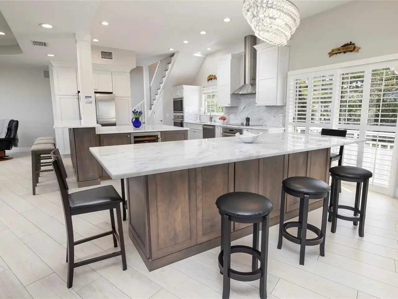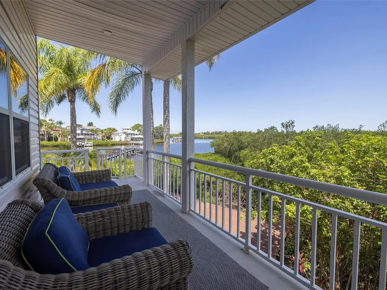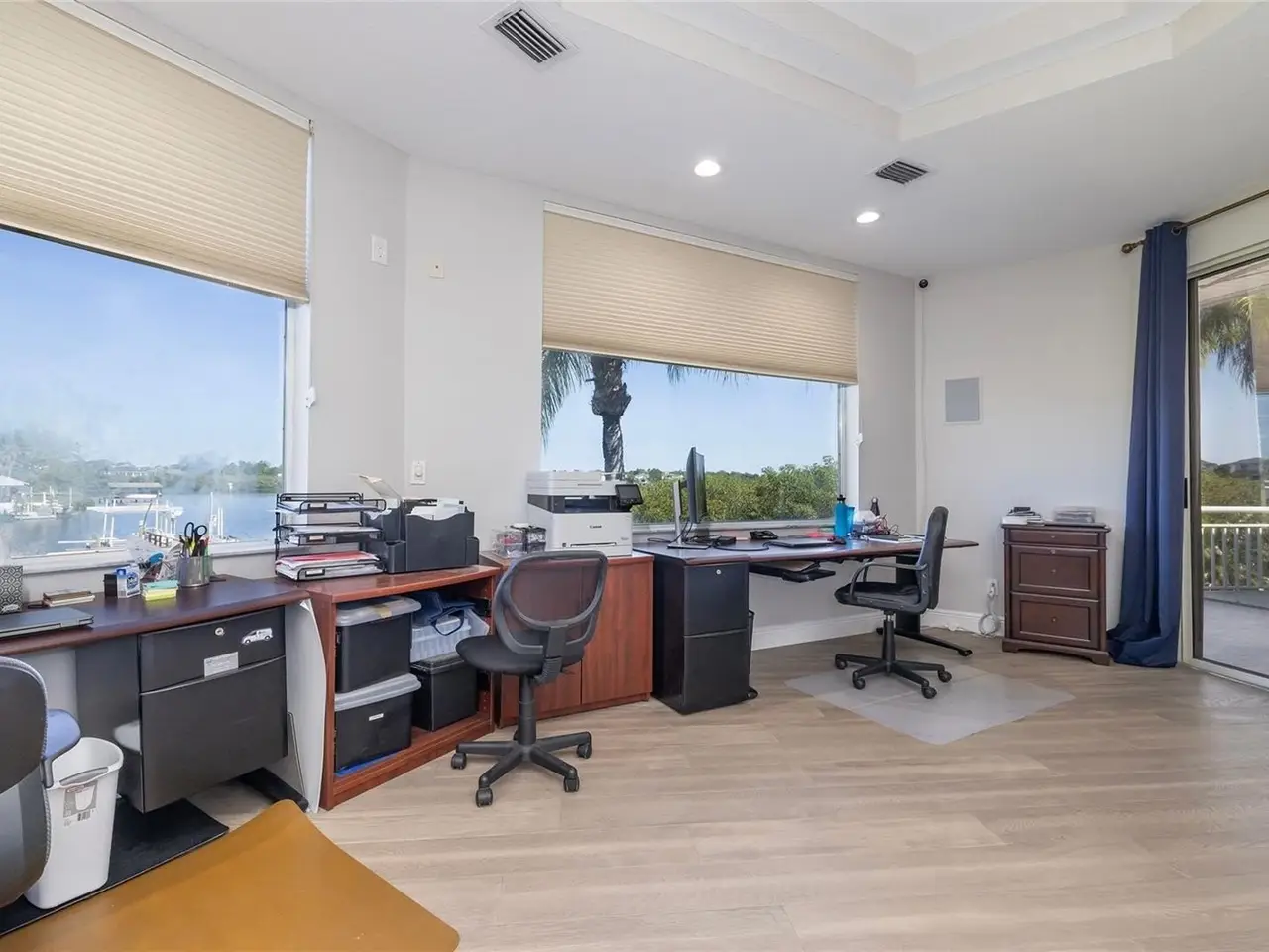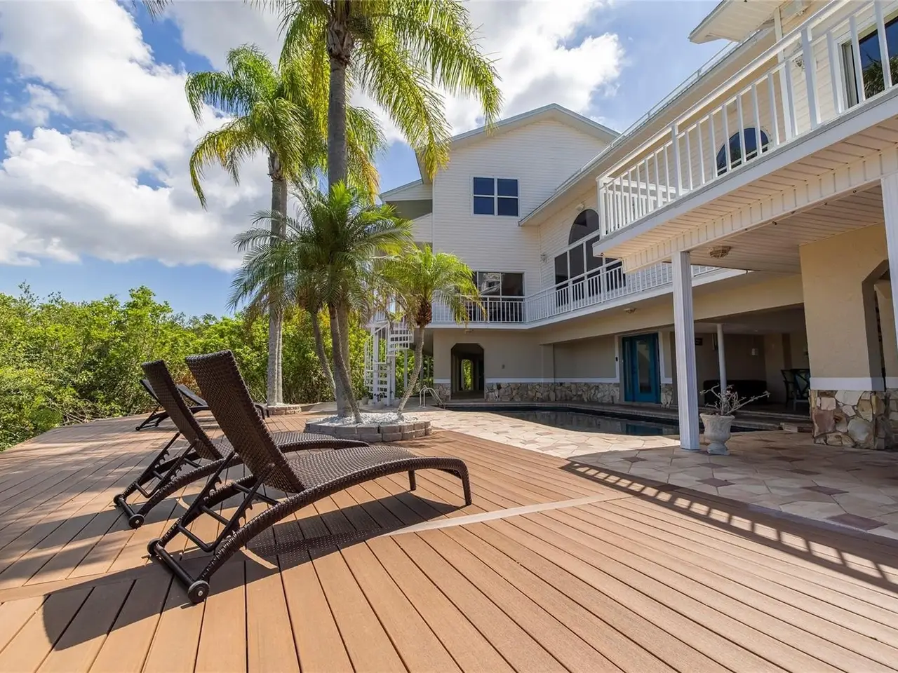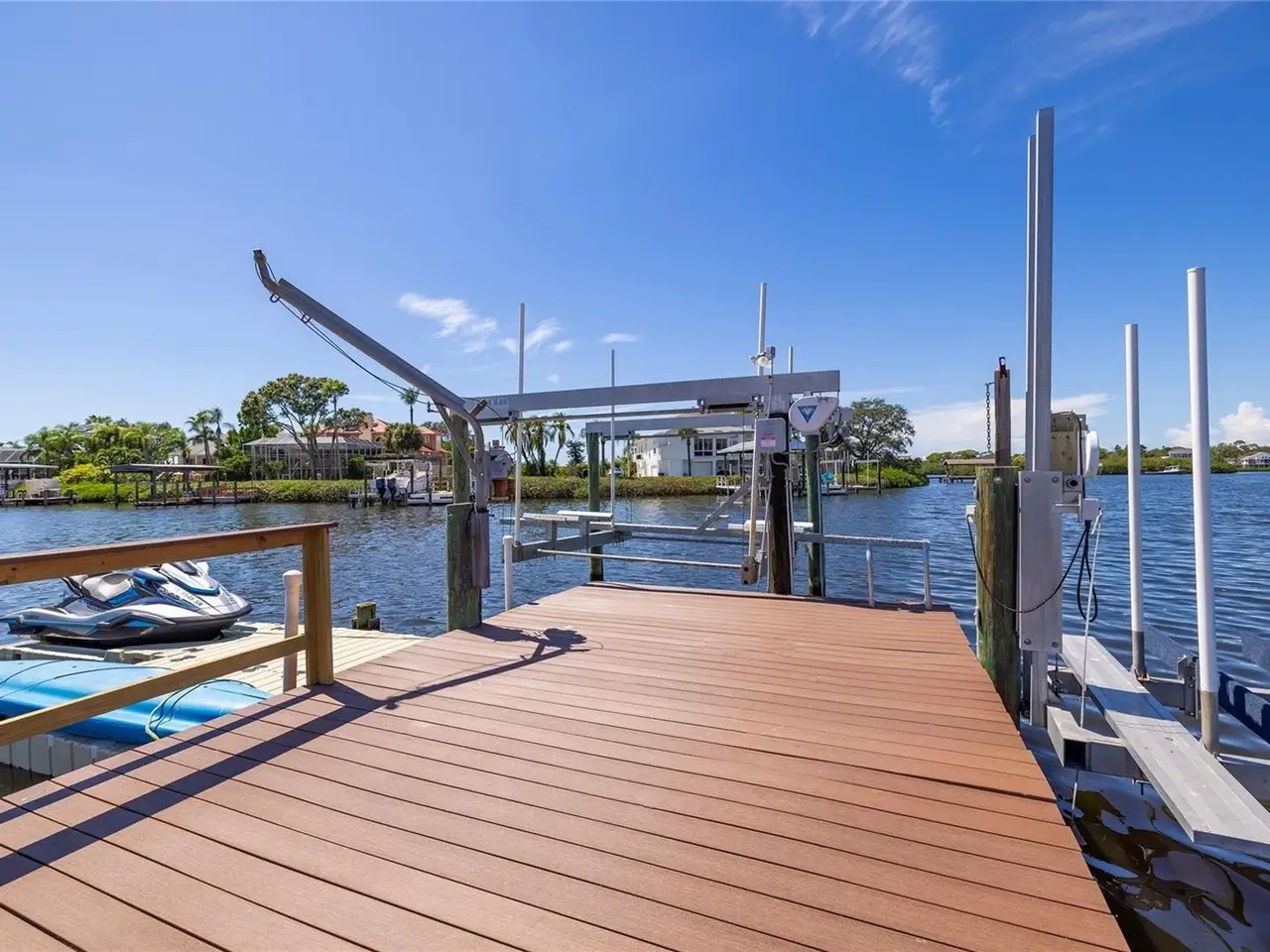 Discover the pinnacle of waterfront living in this extraordinary residence offering 5469SF of thoughtfully designed space. With 6 bedrooms, 5.5 bathrooms, and two luxurious primary suites, this home is perfectly tailored for multi-generational living. Nearly every room captures breathtaking water views, blending elegance and serenity at every turn. Designed with versatility in mind, the home features two distinct wings joined by a remarkable custom, high-tech bookshelf that opens by key fob. Closed, it’s a sophisticated architectural statement; open, it reveals the West Wing with a formal living room, library/guest suite, large private office with extraordinary water views, elevator, and a dramatic staircase leading to the second primary suite. This third floor primary suite with elevator access offers westward water views, a fully remodeled spa bath with soaking tub, walk-in steam shower, and dual vanities and dual walk in closets. The East Wing is equally impressive, offering a fully renovated open-concept kitchen with custom two-toned cabinetry, expansive marble counters, Wolf appliances, double ovens, induction cooktop, and wine fridge. Expansive porcelain plank flooring, wood accents, custom iron railings, and designer chandeliers elevate the home’s style. Upstairs, three additional bedrooms—two with balcony access—offer sweeping water views and a beautifully renovated guest bath. Outdoors, the lifestyle continues with ~2,200 sq. ft. of composite decking, a sparkling pool and spa, updated landscaping, and a new gas-heater for the hot tub. Boaters will appreciate the newly update composite dock with 13,000 lb. lift, floating dock for jet skis, and deep-water access to the Gulf. The At day’s end, ascend to the rooftop deck for panoramic sunsets that capture the essence of Florida’s waterfront lifestyle. Additional features include a 3-car garage, elevator servicing all floors, game room with pool bath, and numerous recent updates: New boat lift Motors (2025) New Composite Dock (2025) New AC Compressor and air handler (2024) new hot water heater (2024), front window replacement (2024), upgraded flooring, renovated bathrooms throughout the home, custom staircase steps, new outdoor shower and even a sand pit fire-pit for relaxed evenings outdoors. Top this off with a new roof which will be replaced PRIOR to Closing! Perfectly situated along scenic Sutherland Bayou and adjacent to Pop Stansel Waterfront Park, this home is zoned for top-rated schools including Ozona Elementary and Palm Harbor University High School. No leasing restrictions or HOA restrictions in place! AirBNB investors welcome! Every detail has been carefully considered to deliver luxury, comfort, and a true waterfront lifestyle. Don’t miss your chance to experience this one-of-a-kind property—schedule your private tour today