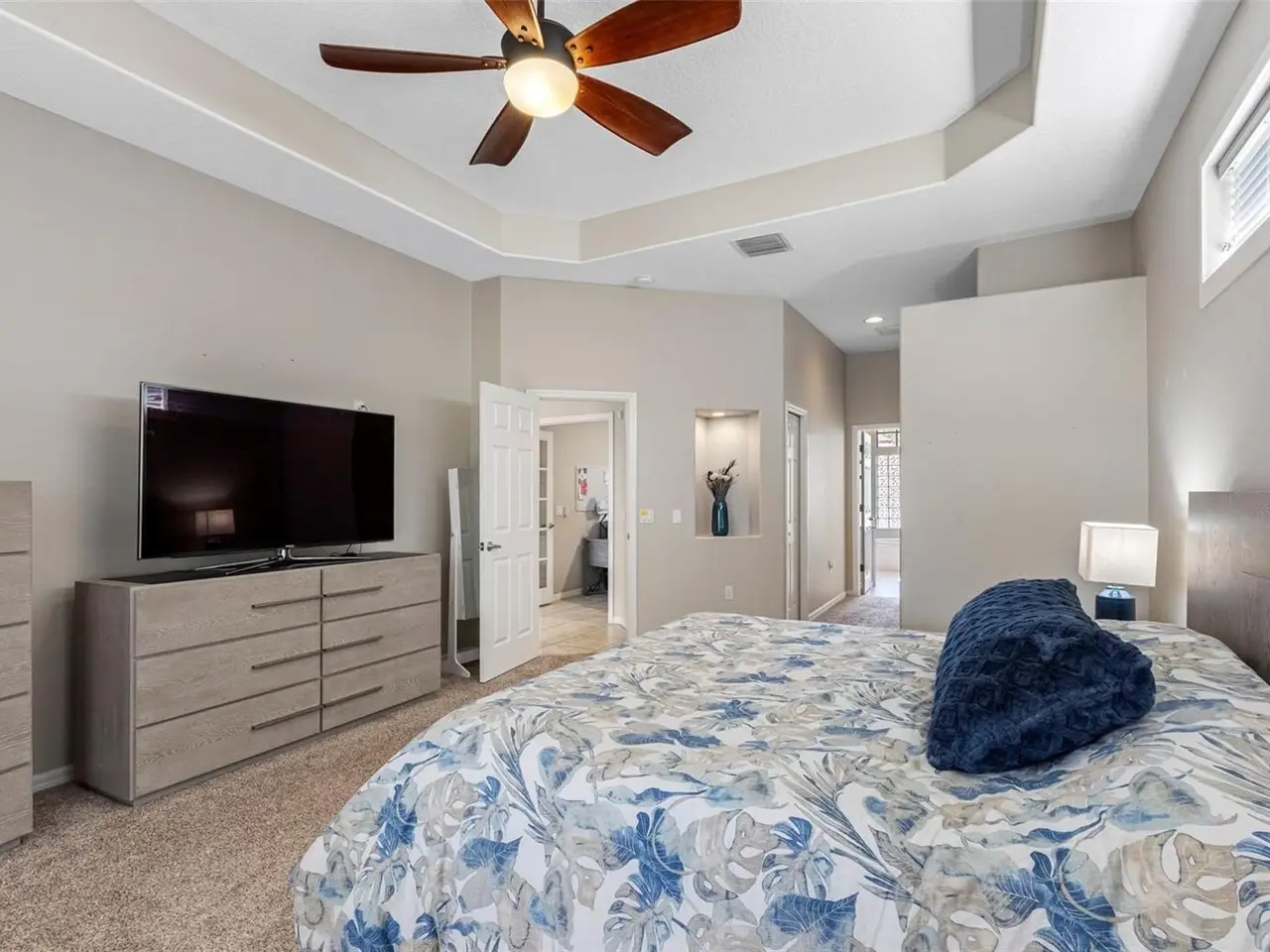 Welcome to Robinwood at Lansbrook. Room for the entire family with 5 bedrooms plus the perfect work at home office overlooking pool and back yard. 3 full baths, a 3-car garage, huge yard and amazing pool and spa. Upon entering you’ll observe double leaded glass doors leading to the living room featuring a tray ceiling, crown molding, and glass sliders that show off the screened pool, spa, pavered pool deck. Passing the formal dining room the home opens up to the family room and dream kitchen equipped with KitchenAid stainless steel appliances, wood cabinets, and granite countertops. The Primary suite features glass slider to the pool, walk-in closets, and a full en-suite bathroom with a walk-in shower, garden tub, and dual vanities. Tasteful updates have been completed in all three bathrooms. The oversized inside laundry room offers plenty of cabinet space and a utility sink. Current updates include an NEW A/C unit (2024), water heater (2018), roof (2020), house paint (2020), pool Salt System (2022), pool pump (2023) , gas heater for the hot tub (2022), pool resurfacing (2012). The community offers residents access to day docks for boating on Lake Tarpon, a lakeside park, play area, and a gazebo with picnic tables, soccer field and basketball courts. Close to shopping, Brooker Creek Preserve, YMCA, golf courses, and John Chesnut State Park. Zoned for top-rated schools, including two elementary schools, East Lake High School, and East Lake Middle School Academy of Engineering