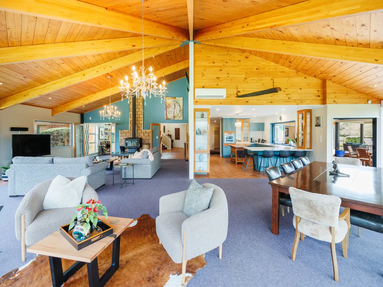 Welcome to Te Rakau Nui, 7 Harrisons Line, Palmerston North. Set on one hectare, this beautifully crafted 543m2 (more or less) home offers generous space for the whole family. With four bedrooms and two bathrooms, it's designed for both comfort and function. The master suite occupies its own private level, complete with a walk-in wardrobe, ensuite, office, and sweeping views of the Ruahine Ranges. The heart of the home features warm and inviting living spaces. A spacious kitchen with quality appliances flows into a large formal dining and living area, where timber vaulted ceilings enhance the sense of space. A separate, cosy lounge creates the perfect spot for intimate movie nights, and a quiet reading den adds another layer of relaxation. The living areas and downstairs bedrooms open out to an extensive outdoor entertaining zone, featuring a huge, covered deck, outdoor fireplace, and built-in BBQ area. Entertaining is effortless year-round. The property also includes a double garage with a serious workshop space, featuring three-phase power and two automatic roller doors ideal for the home handyman or hobbyist. Ample grazing paddocks with stock water orchard. Implement sheds to make living on a lifestyle property a breeze. Chattels Auto Garage Door Opener x2 and Remote x1, Bath, Blinds, Ceiling Fans x2, Clothesline, Dishwasher, Drapes, Hob/cooktop, Induction Hob, Wall Oven - Electric x2, Fixed Floor Coverings, Garden Shed, Glasshouse, Heated Towel Rail x2, Heat Pump x3 and Remote x3, Letterbox, Light Fittings, Mirrors, Range Hood, Security Lighting, Security System , Smoke Detectors (every bedroom), Sound System, TV Aerial, Waste Disposal, Water Tanks (6000 gal x2), Water Feature x2, Water Pump, Lights up Driveway, Dog Kennel, Waste Water Pump, Stock Water Tanks x3 (Shared with Neighbours), Electric Fence Unit, Stock Troughs x5 Gas Powered Deck Fire Place and Cylinder