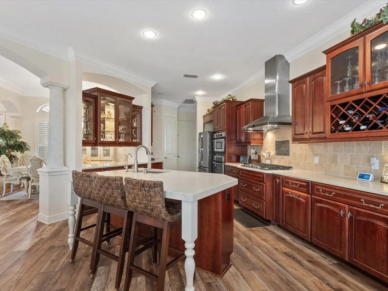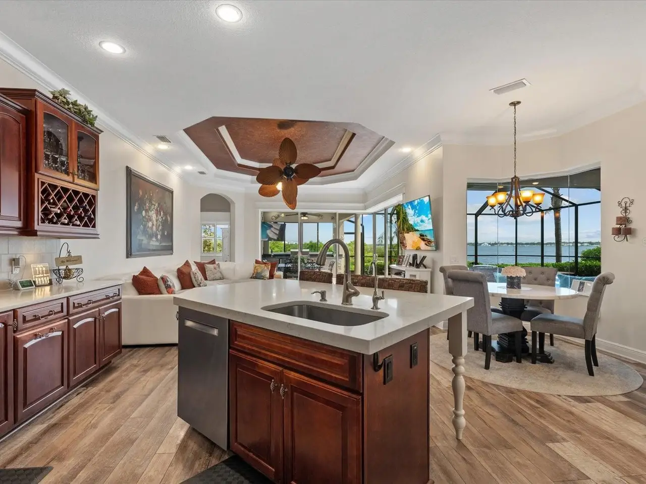 Welcome to Riviera Dunes, one of Southwest Florida’s premier boating communities and home to the region’s safest deep-water harbor. Perfectly positioned along the peaceful Manatee River, this neighborhood offers direct access to the Gulf in just 10 minutes. Included with this residence is a deeded marina slip that accommodates vessels up to 44’, Tucked behind the private gates, the home greets you with lush landscaping and a welcoming entryway. Inside, you’ll find an updated interior with luxury vinyl plank flooring that flows effortlessly through the living and entertaining spaces. The open kitchen is beautifully appointed with stainless steel appliances and connects seamlessly to the family and dining areas, making gatherings a breeze. Designed with flexibility in mind, the home features two full master suites and two additional guest bedrooms. The upstairs master is a true retreat complete with a walkthrough closet, coffee bar with sink, luxurious spa-style bathroom, and a tranquil balcony where you can sip your morning coffee while watching marine life below. Perfect for entertaining, the expansive sliding atrium doors disappear to create a seamless connection between indoors and outdoor spaces. Step outside to your sparkling heated pool and fully equipped summer kitchen—ideal for year-round Florida living. Additional highlights include a three-car garage, whole home water filtration system and a new AC unit. Enjoy access to outstanding community amenities, including a clubhouse, fitness center, tennis, pool, and an active pickleball community. This is more than a home—it’s a lifestyle. Welcome to your private waterfront retreat in Riviera Dunes.