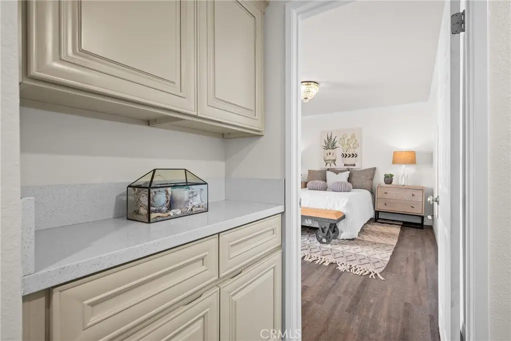 Welcome to an exceptional opportunity to own a bright, remodeled end-unit home in the heart of coveted Lunada Bay. Offering a remarkable blend of indoor luxury & outdoor living, this 3 bedroom, 2 bathroom residence spans 1,619 square feet of refined single-level living, plus a private 600 square foot garden patio rarely found in a condo. Enter through a spacious foyer into an inviting, open-concept layout designed for comfort & elegance. The dining area flows into the generous living room, warmed by a cozy gas fireplace, featuring wide-plank neutral flooring, fresh paint, crown molding & recessed lighting. A private balcony off the living area welcomes refreshing ocean breezes & offers charming neighborhood & sunset views, perfect for relaxing at the end of the day. The bright, modernized kitchen is a true centerpiece, featuring crisp white cabinetry, deep farmhouse sink, elevated fixtures, sleek white & gray quartz counters & backsplash, & stainless steel appliances including gas range & refrigerator. A built-in desk doubles as a breakfast nook, ideal for casual dining or working from home. Down the hall, a side-by-side laundry closet includes the washer & dryer, along with ample linen storage & stylishly remodeled ¾ bath servicing the living space & secondary bedrooms, offers dual sinks, quartz countertops, honeycomb tile flooring & gleaming white subway tile backsplash. Each bedroom is spacious & light-filled, with mirrored closet doors enhancing the sense of openness. Your primary suite is a private retreat, complete with a large walk-in closet with built-in organizers, a mirrored dressing area & an ensuite full bath with dual sinks, quartz counters & private water closet. The generous garden patio is well-connected here, beautifully tiled to extend the living space, with vibrant landscaping, palm trees & sunshine, perfect for entertaining, gardening, or simply enjoying a life well-made. Additional features include 2 side-by-side gated underground parking spaces, a large private secure storage room & elevator access for effortless, stair-free living. Just 1 block from Lunada Bay Plaza with its quaint shops, restaurants & services, 3 blocks from the breathtaking ocean bluffs, this residence offers a rare lifestyle of convenience & beauty. Easily accessible to all 3 prestigious local elementary, middle & high schools. Move right in & start living the good life in Palos Verdes Estates, where ocean breezes, sunset views & a vibrant coastal community await.