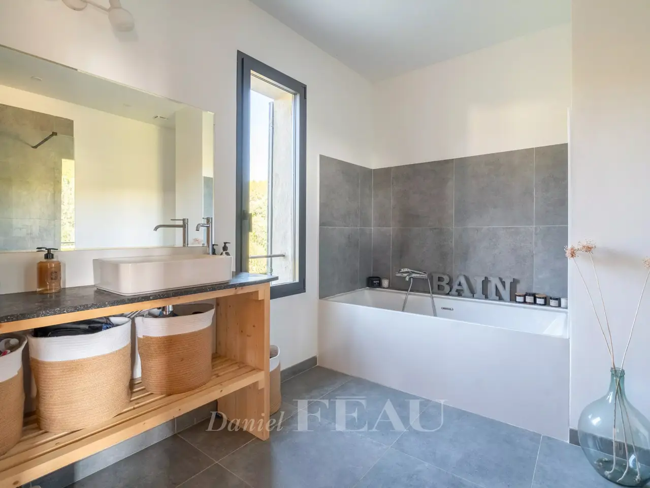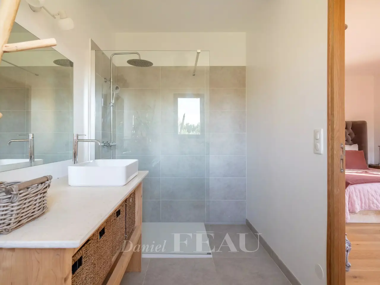 This bright and functional 240 sqm property dating from 2022 is located in a peaceful neighbourhood between Le Paradou and Maussane-les-Alpilles. An entrance hall with a guest cloakroom leads to a near 114 sqm living/reception room with an open-plan kitchen and a dining room opening onto a covered terrace and a heated 10 x 4 metre swimming pool, and a master suite with a shower room and dressing room. Upstairs are a suite with a shower room and a dressing room opening onto a terrace commanding a view of the Alpilles mountains, and two further bedrooms sharing a shower room. The perfectly maintained 2251 sqm garden is entirely enclosed. With a carport for two vehicles. The property allies contemporary and traditional materials, and is particularly energy efficient.