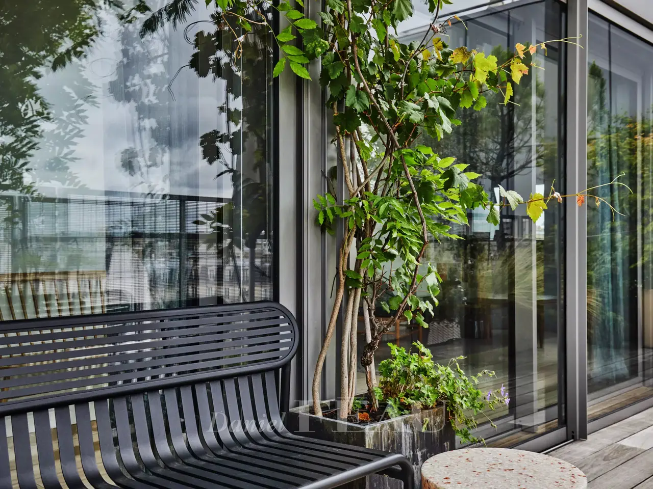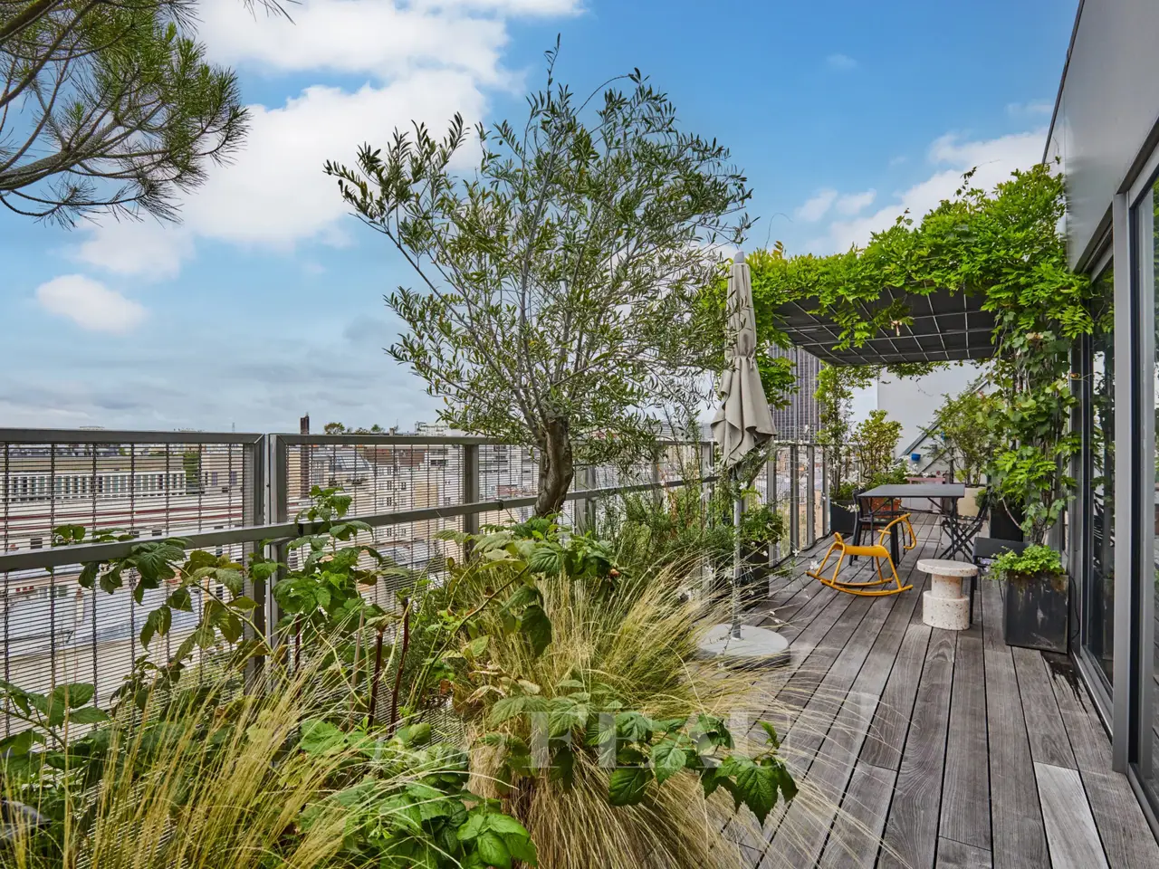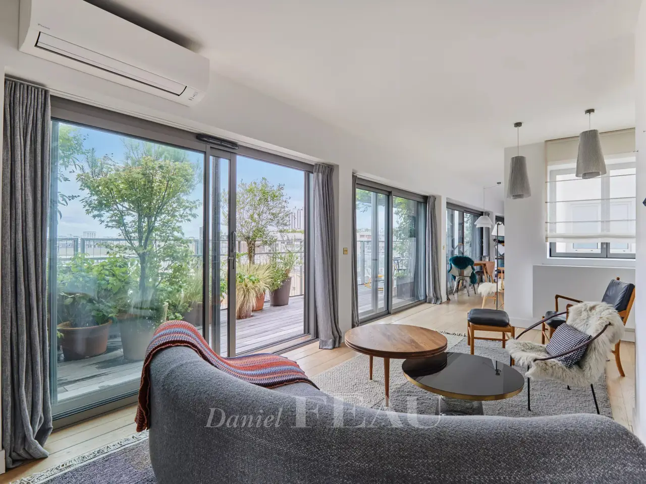 Campagne première neighbourhood. This peaceful 92 sqm apartment benefiting from a leafy 25 sqm terrace enjoying views of the capital is on the top floor of a recent building. Air-conditioned and in perfect condition, it includes a living room, a sitting room, a fitted and equipped kitchen with a dining area, two bedrooms, a bathroom and a shower room. With a cellar and a basement parking space.