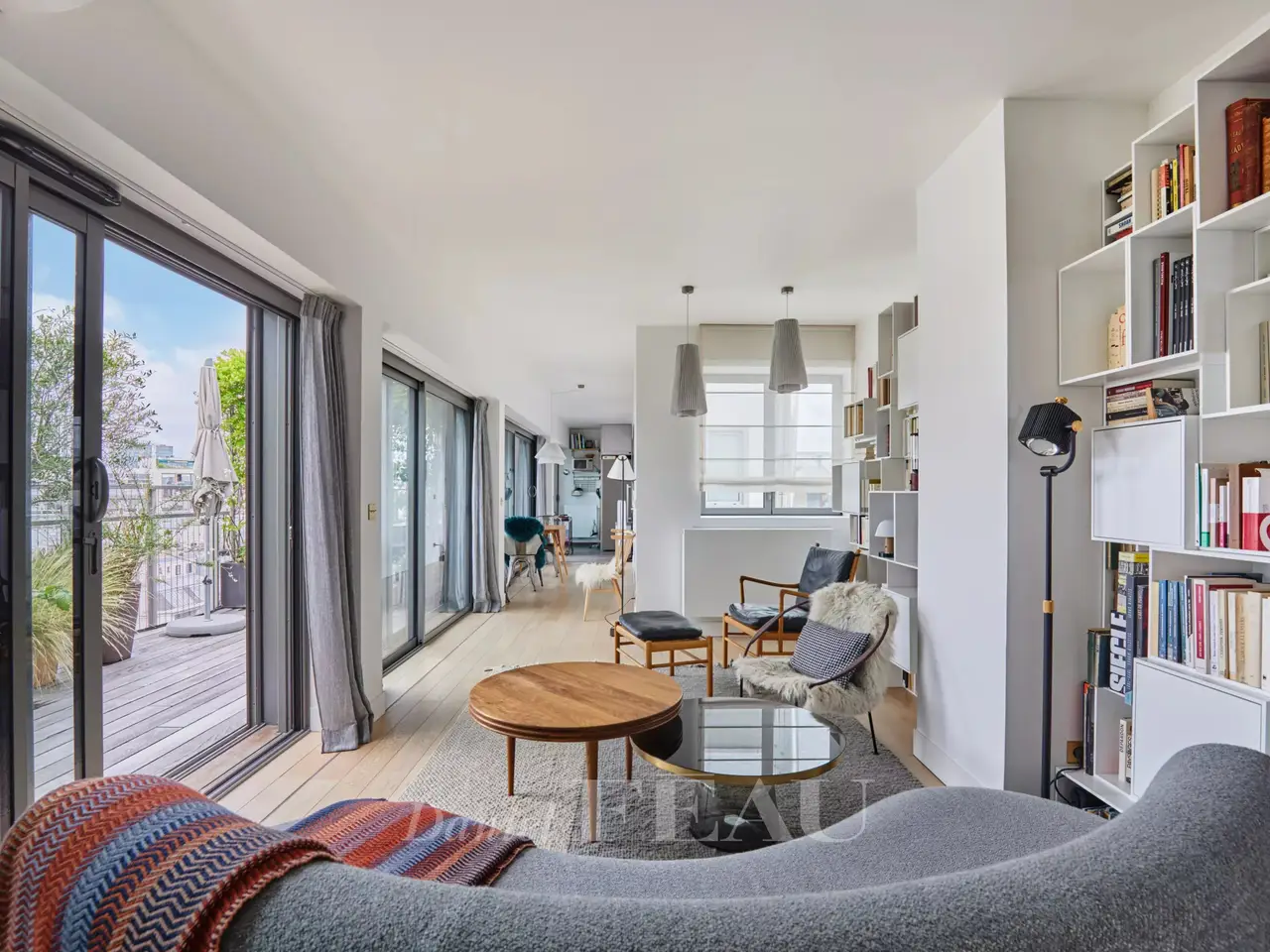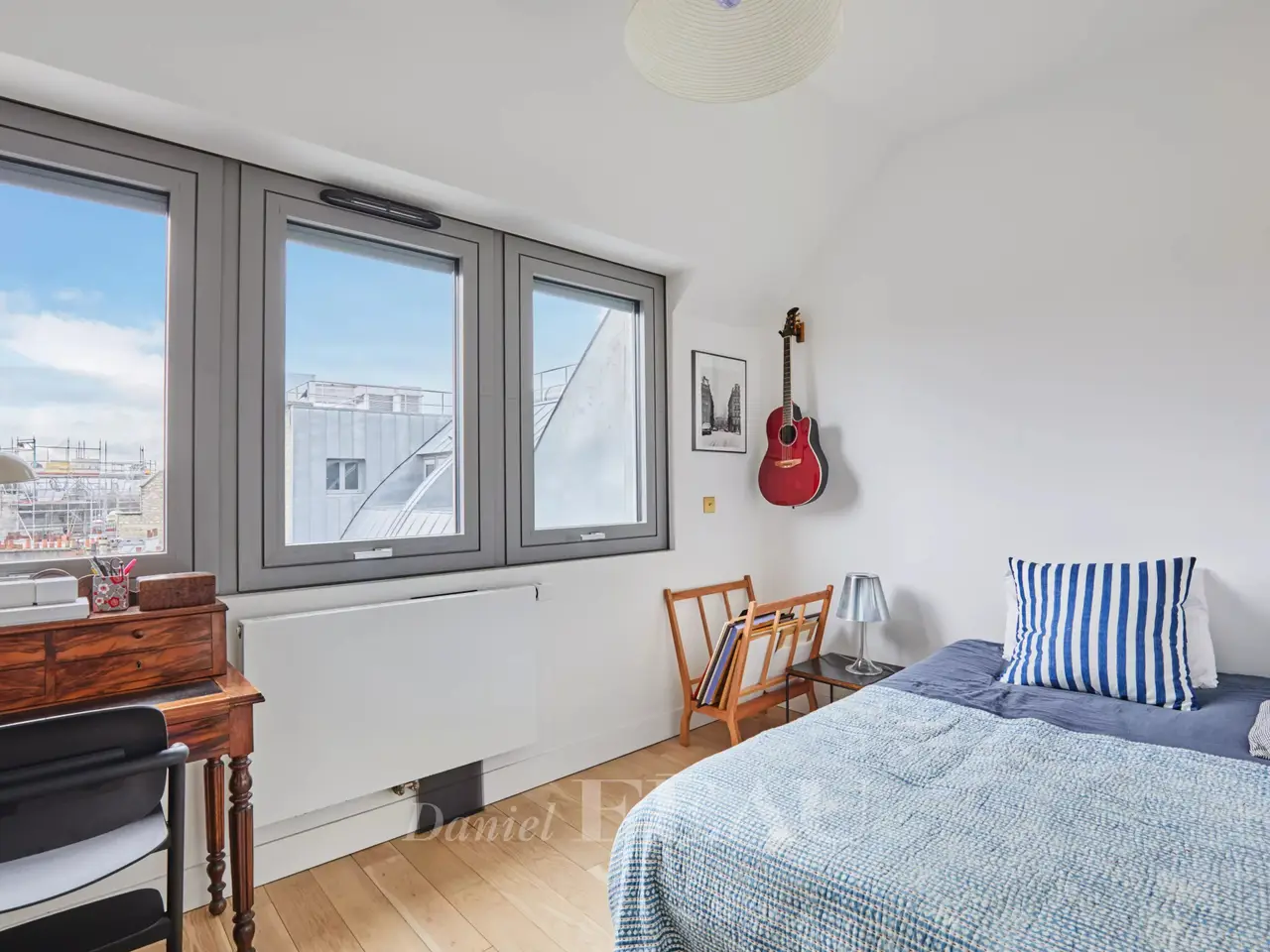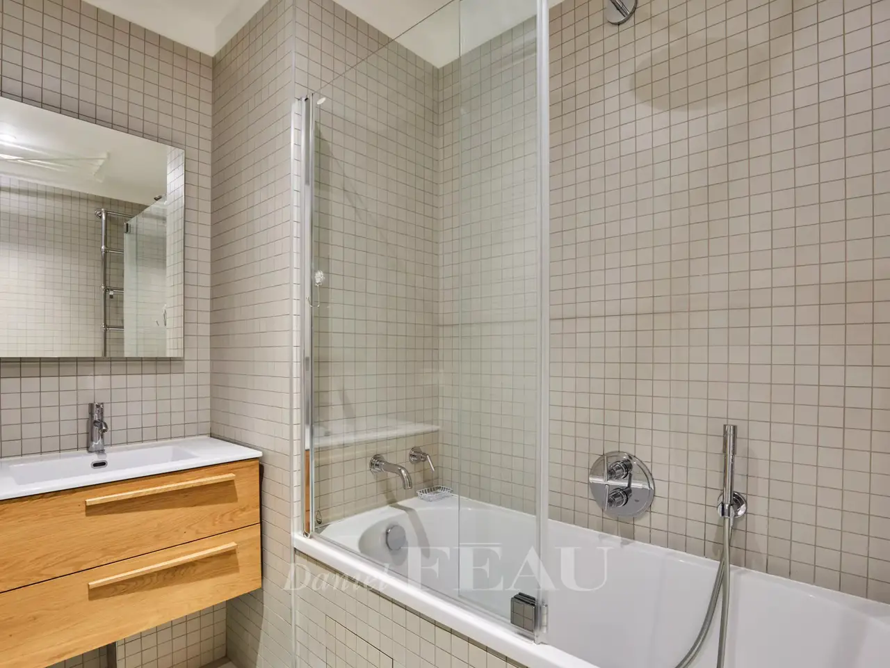 Campagne première neighbourhood. This peaceful 92 sqm apartment benefiting from a leafy 25 sqm terrace enjoying views of the capital is on the top floor of a recent building. Air-conditioned and in perfect condition, it includes a living room, a sitting room, a fitted and equipped kitchen with a dining area, two bedrooms, a bathroom and a shower room. With a cellar and a basement parking space.