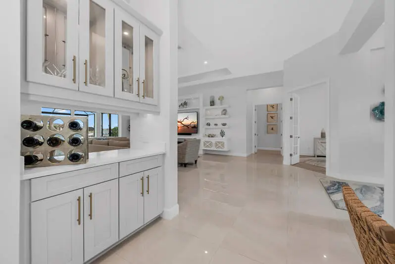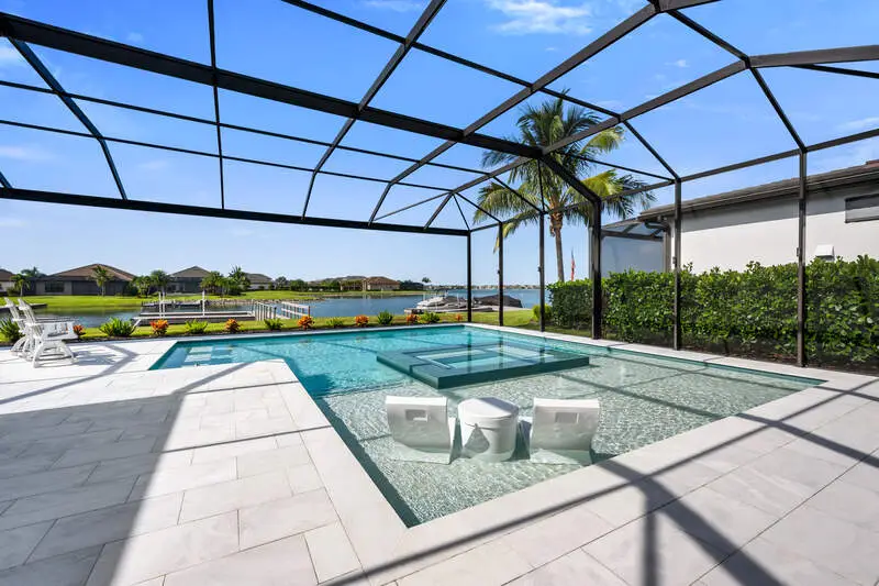 Discover unparalleled Florida resort-style living in this luxury waterfront residence, in Esplanade Lake Club. Spectacular southern long-water views and premium finishes accentuate this coastal estate home. Thoughtful design seamlessly blends indoor and outdoor living and dining areas creating the ideal space for social gatherings or tranquil moonlit evenings. The extended lanai invites entertaining with uninterrupted views and space to soak in both the sunrise and sunset. Ideal for lounging by the pool, relaxing in the hot tub, or basking on the Baja shelf. And the beautiful white stone deck keeps your feet cool even on the hottest of day. The outdoor kitchen is equipped with a top-of-the-line grill and ventilation, smoker unit, pizza oven, and refrigeration drawers. Adjacent, your private boat dock with hydraulic lift awaits, promising endless aquatic adventures on Lake Como. Inside, the chef's kitchen features professional-grade Monogram appliances, 6-burner natural gas cooktop, ample prep space, walk-in pantry, and large center island with seating. A first-floor primary suite, dedicated office, three additional en suite bedrooms, two half baths, expansive game room with kitchenette, and air-conditioned three-car garage complete the interior. Some of the extensive upgrades include impact windows and doors, a whole house generator, motorized hurricane screens, reverse osmosis system, on-demand hot water, extended mudset pool deck, designer tile and lighting. Offered fully furnished this property allows for immediate enjoyment this season of the ultimate waterfront lifestyle. Esplanade Lake Club features superb amenities including a boat launch on the 400+ acre lake, pool, spa, fitness center, tennis, pickleball and bocce courts, and walking trails. The clubhouse offers a beachfront outdoor bar and grille, and a lakefront promenade with sunset views. Esplanade Lake Club is minutes from three shopping centers, world-class beaches, and southwest Florida International Airport. Listing agent can provide a boat tour of the community!