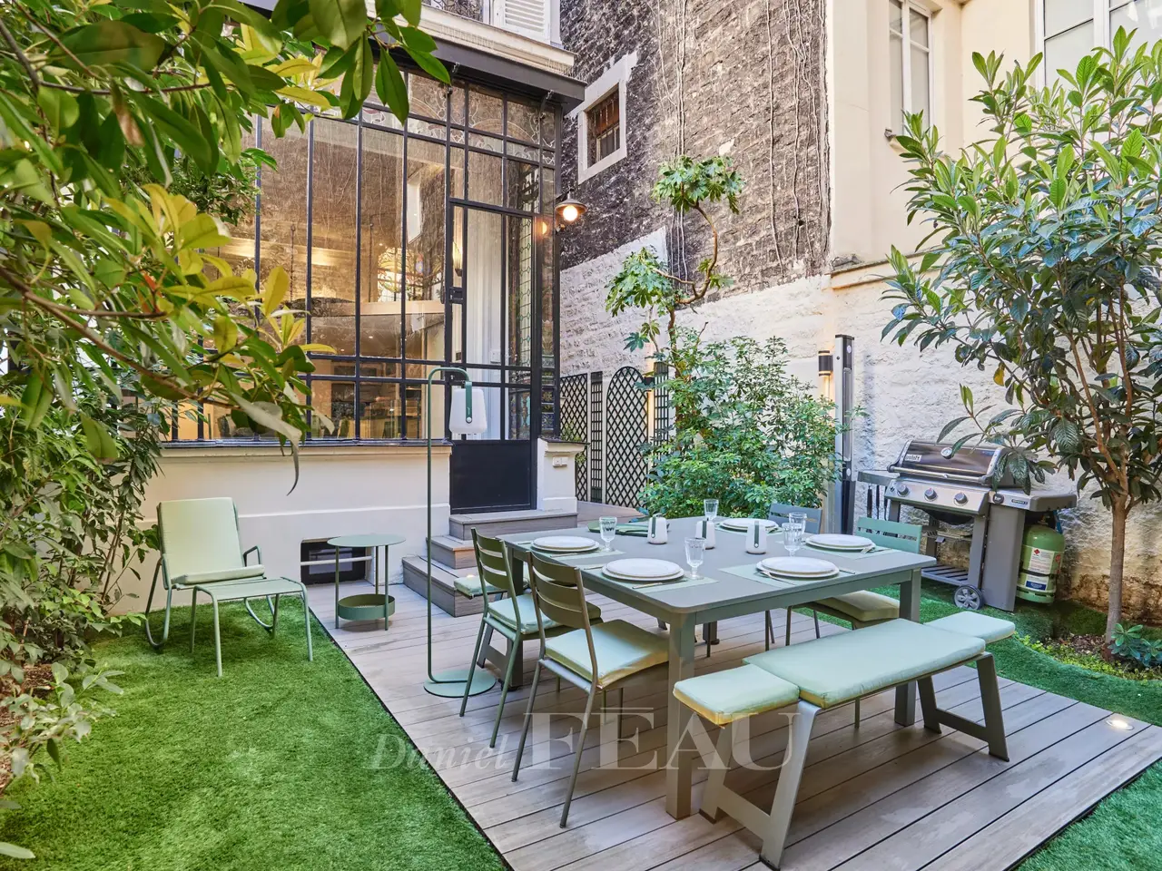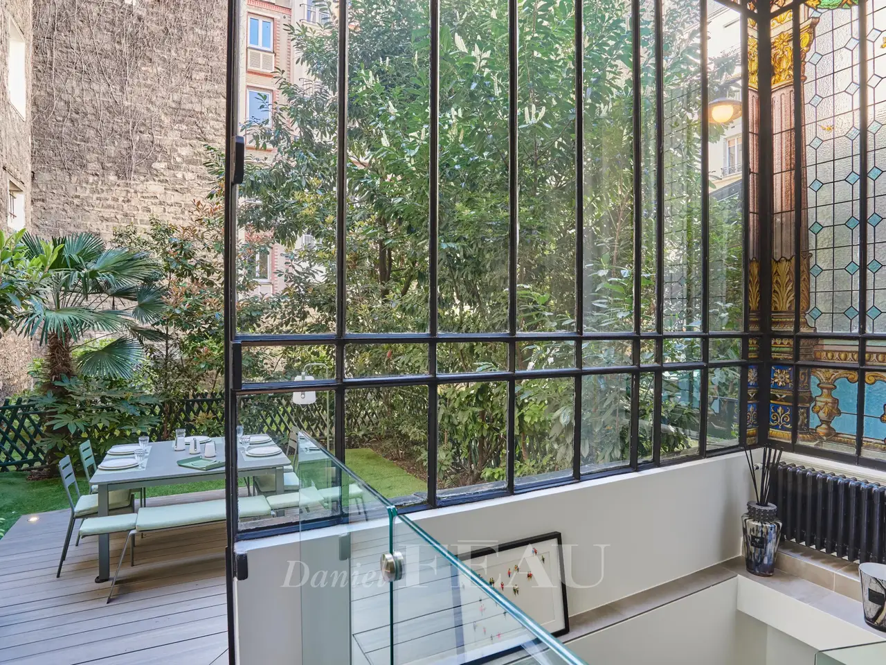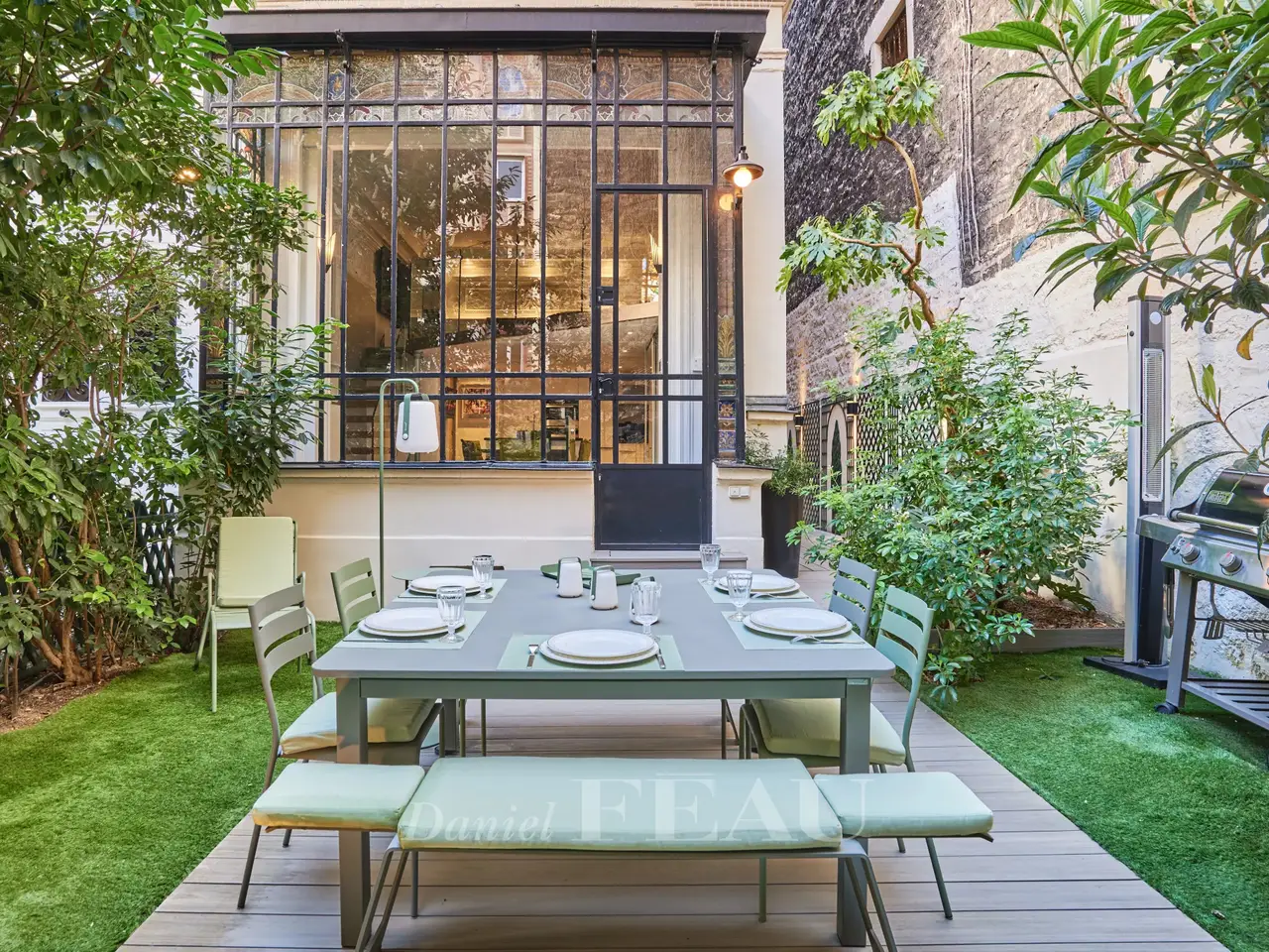 Sole Agent. Passy Village neighbourhood. This split-level 73.50 sqm apartment benefiting from a near 50 sqm south-west facing garden with a terrace is on the ground floor of a superb early 20th century private mansion. In perfect condition, it includes a kitchen with dining facilities opening onto the garden, and a magnificent extensively glazed 1st floor living/reception room. The half-basement comprises a suite with a shower room, a dressing room, a study and a separate wc. The apartment has been tastefully renovated throughout, oozes with period charm, and benefits from a private entry. Sold furnished. A delightful pied a terre.