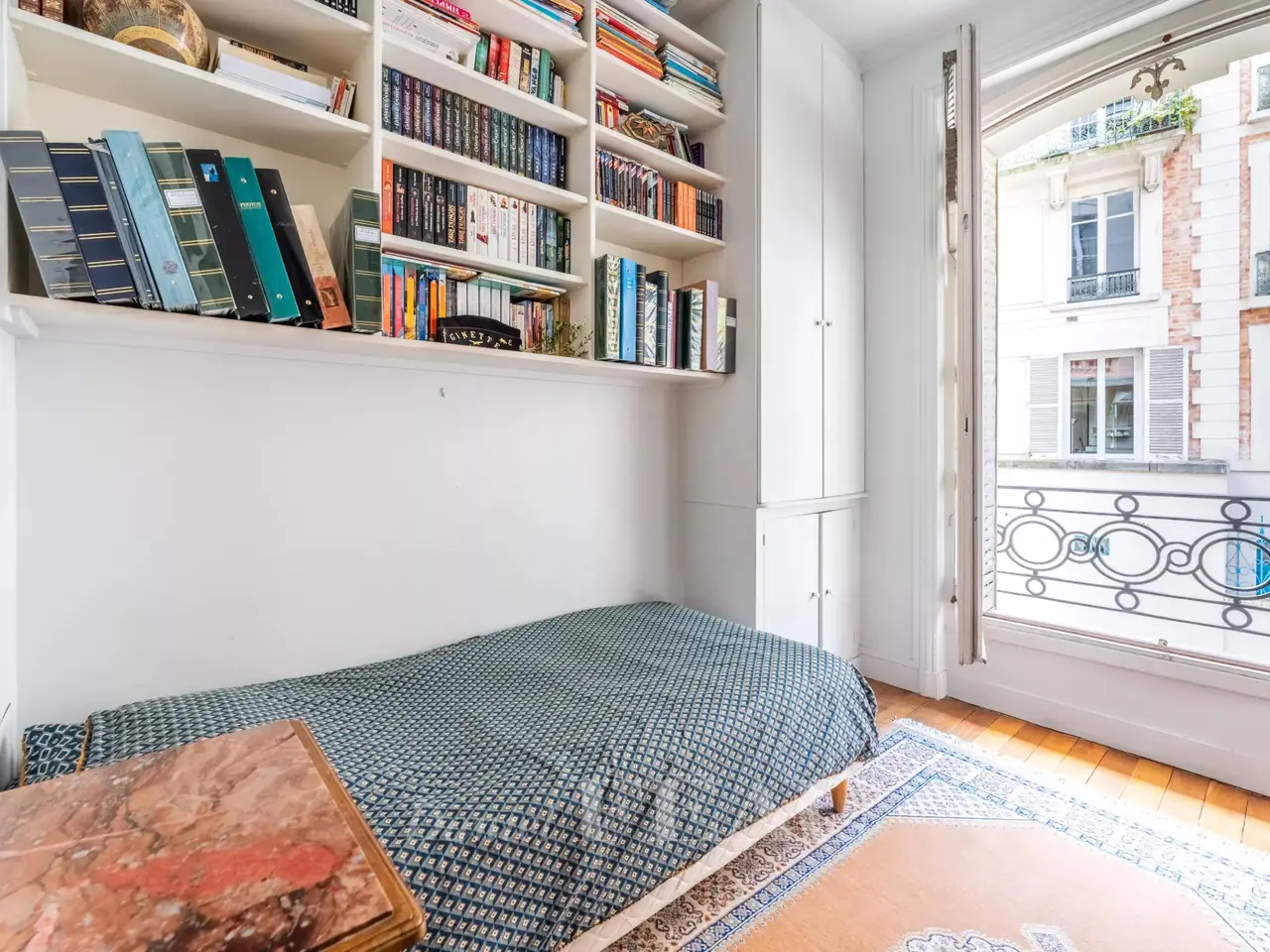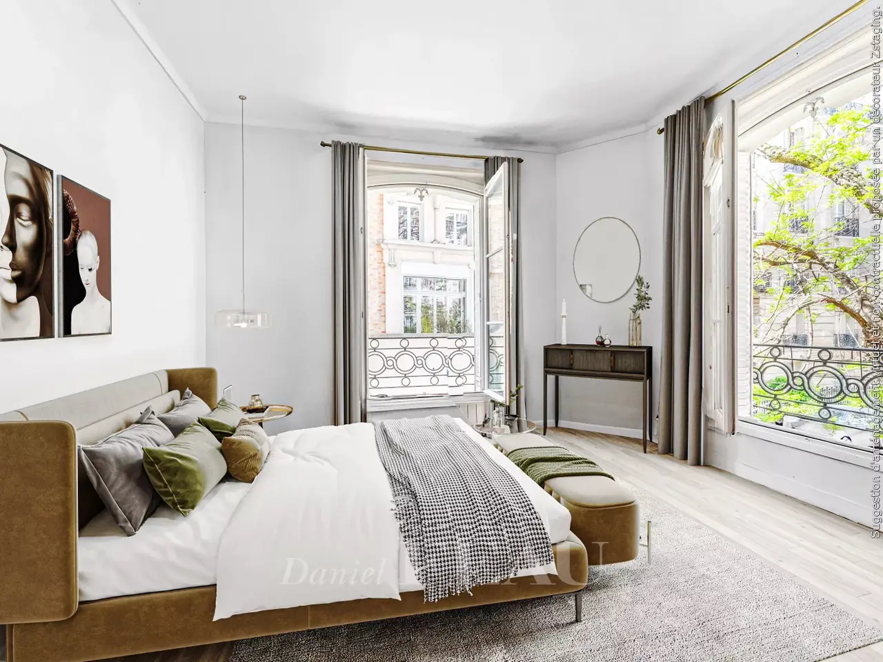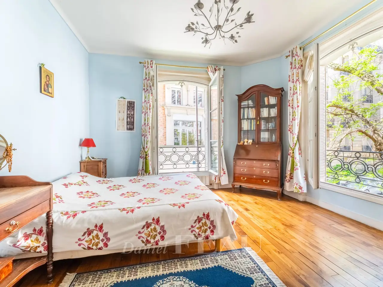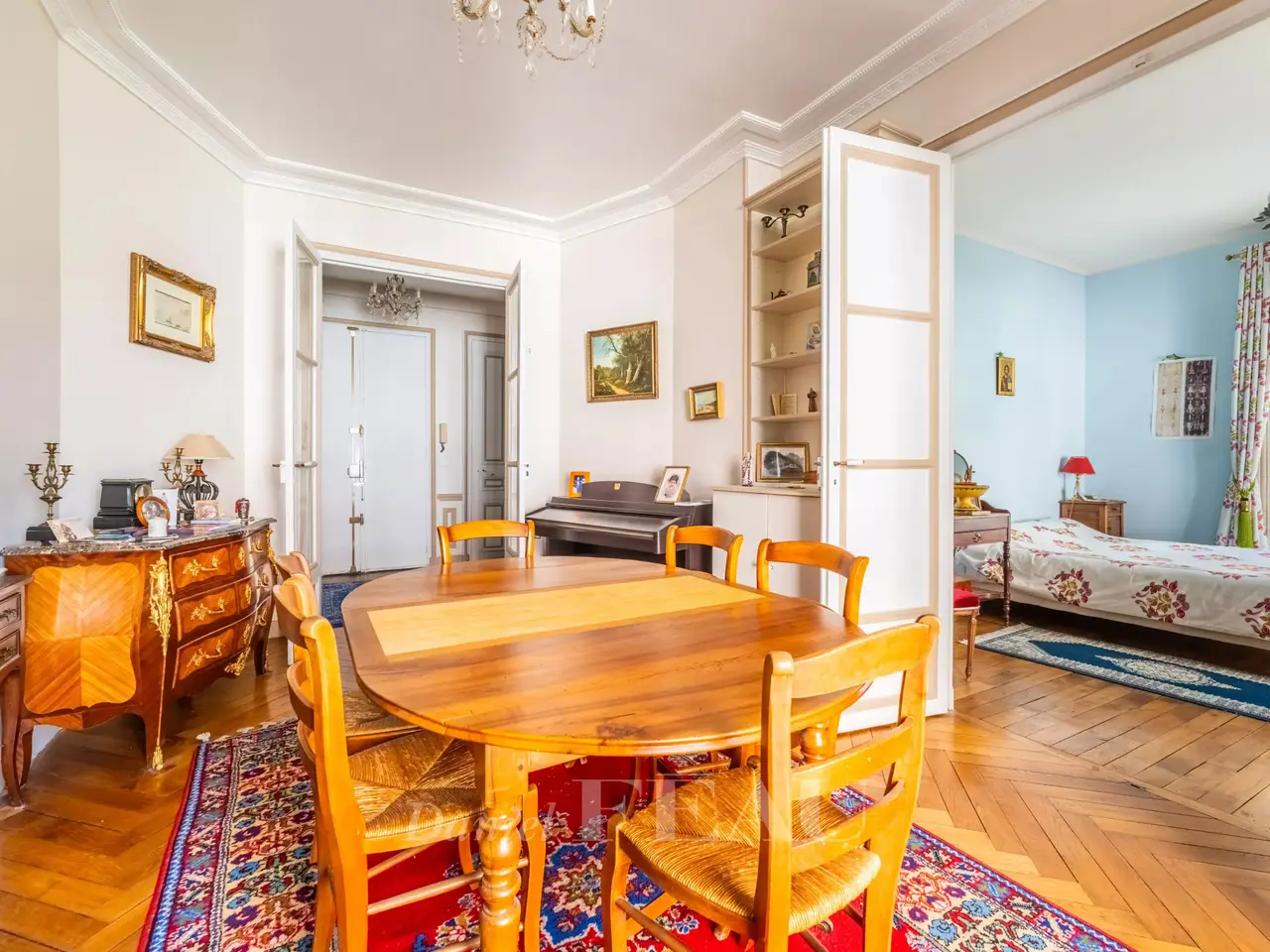 Passy Village neighbourhood. This east and west facing corner apartment offering 99 sqm of living space is on the 1st floor of a perfectly maintained freestone and brick-built late 1920’s building with a caretaker. Benefiting from an optimised floor plan, it includes a double living/reception room featuring 3-metre high ceilings, a separate kitchen, a spacious master bedroom, two further bedrooms, and two shower rooms with a wc. Fitted storage space. With a cellar. A studio apartment on the 2nd floor with a shower room and wc may be acquired at extra cost.