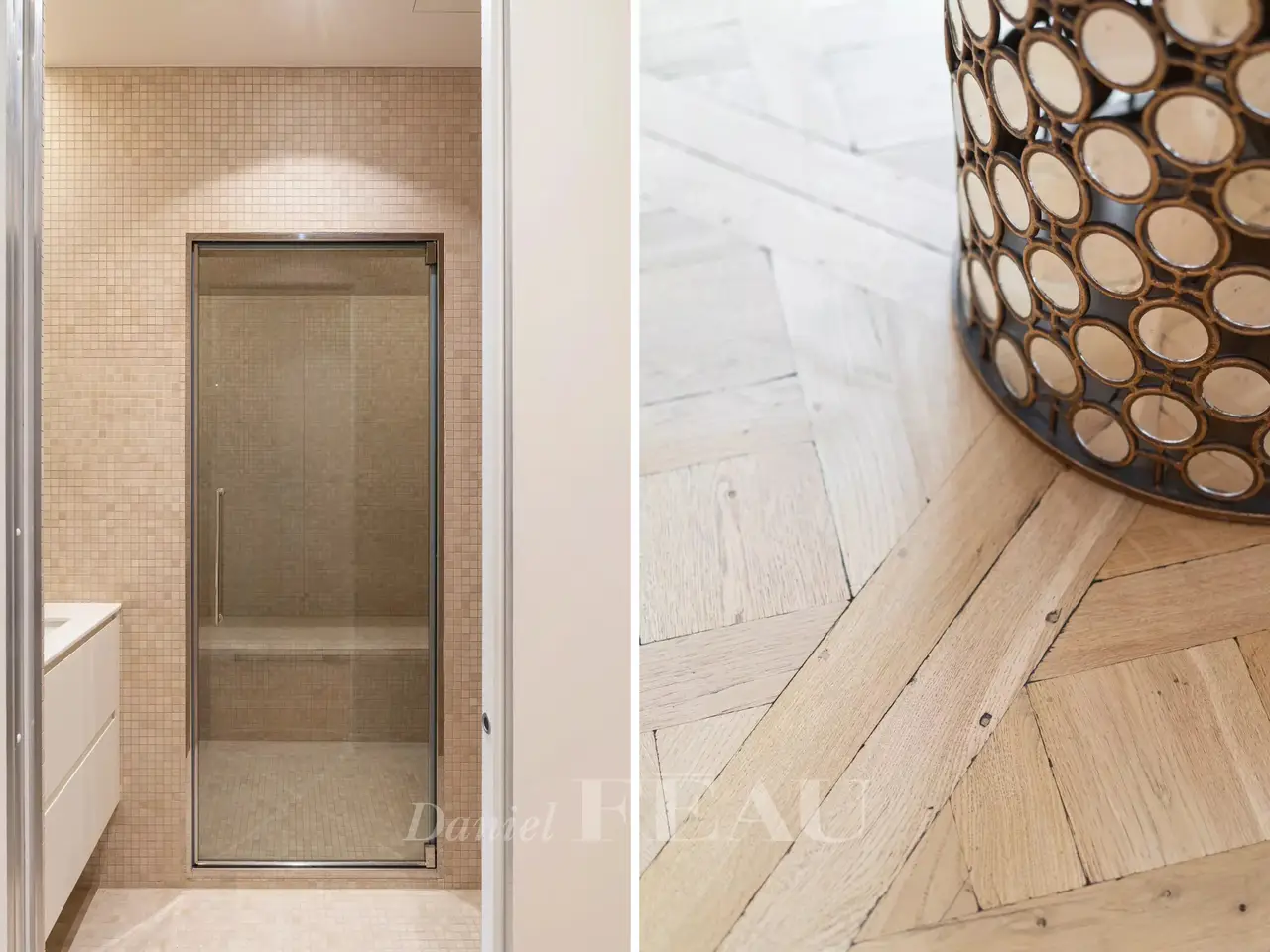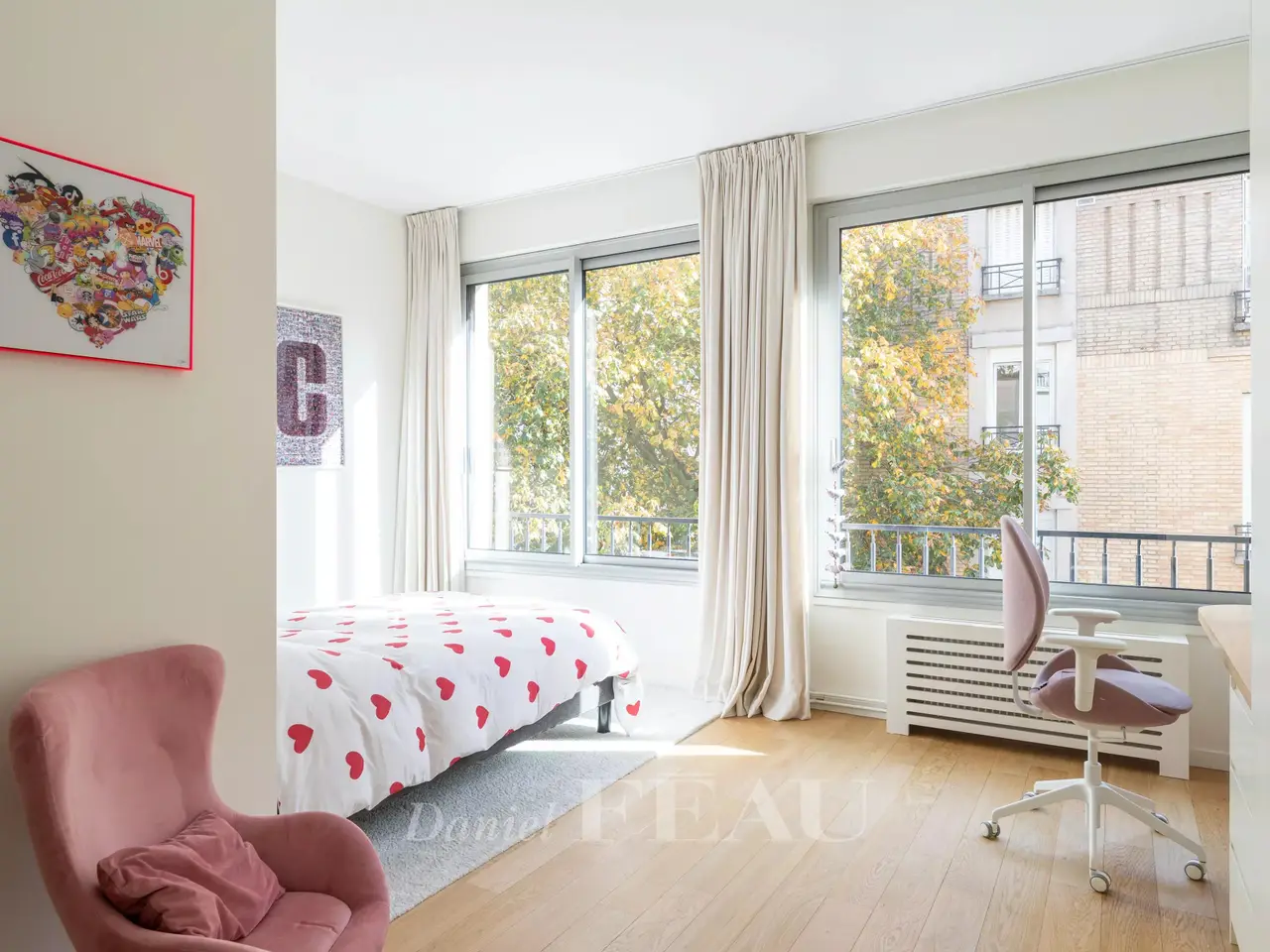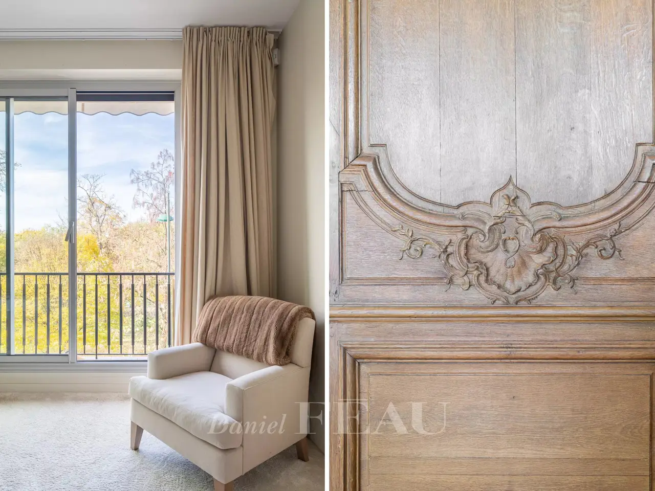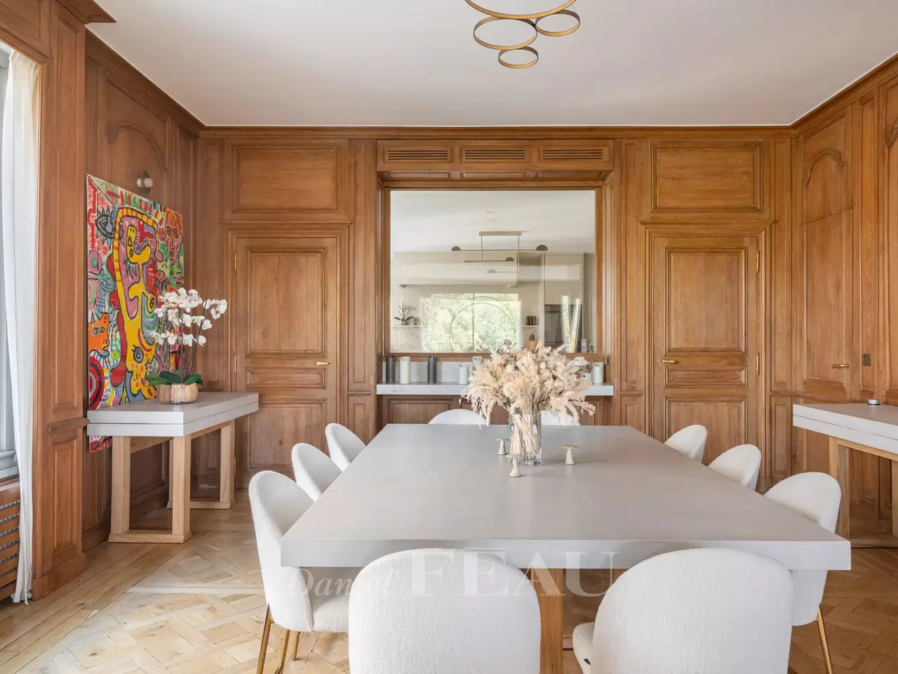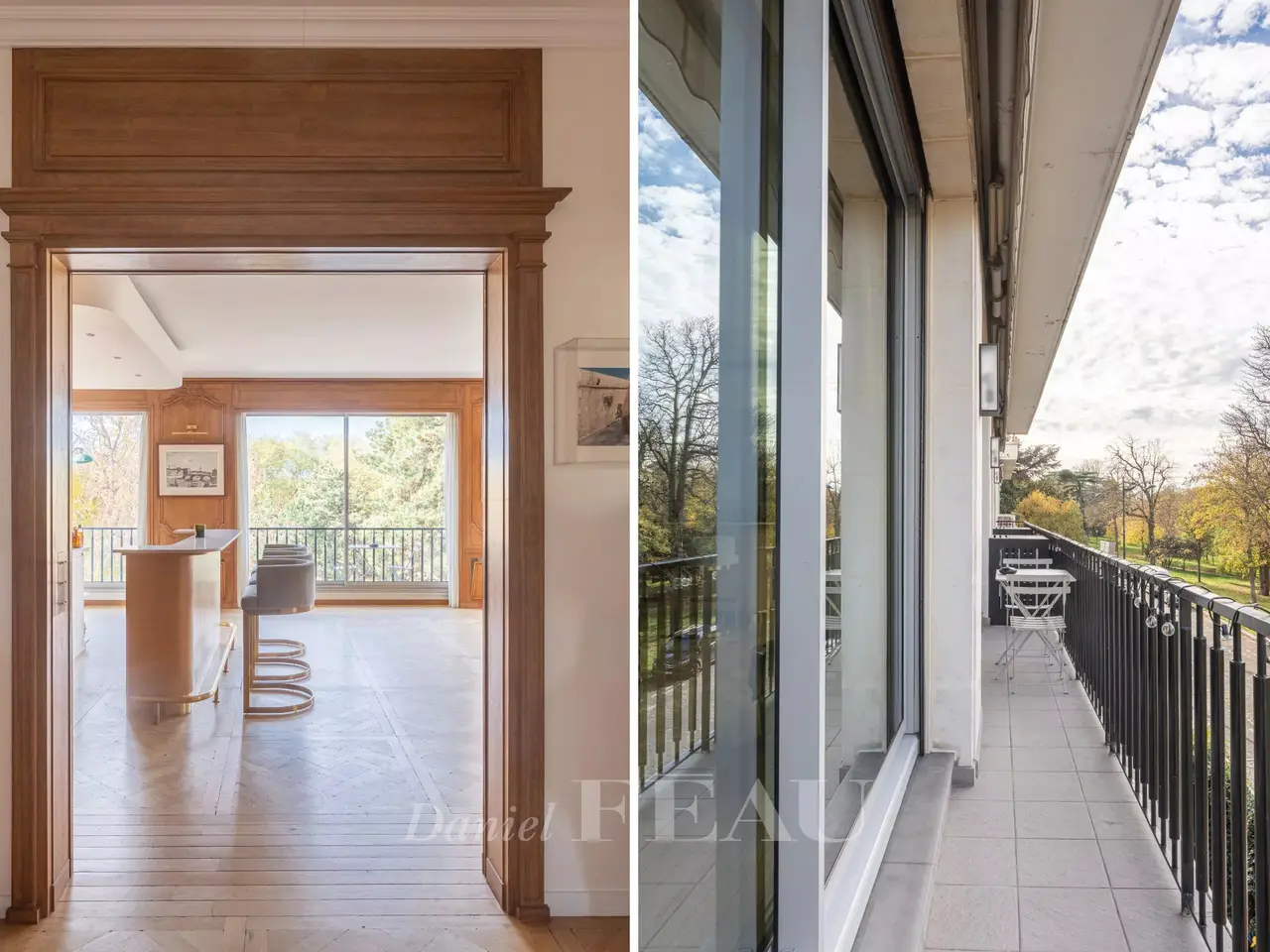 This sumptuous 326 sqm apartment on the 2nd floor of a luxurious and recently renovated mid 20th century freestone building with elegant common areas has been renovated in a contemporary style while preserving original panelling. Particularly bright and enjoying an open view of the Bois de Boulogne, it includes a spacious living/reception room with a dining room and a fully equipped kitchen, four spacious bedrooms each with a bathroom and bespoke storage space, a master suite enjoying a view of the woods, two bathrooms and a spacious dressing room. With two basement parking spaces, a maid’s bedroom and a cellar.