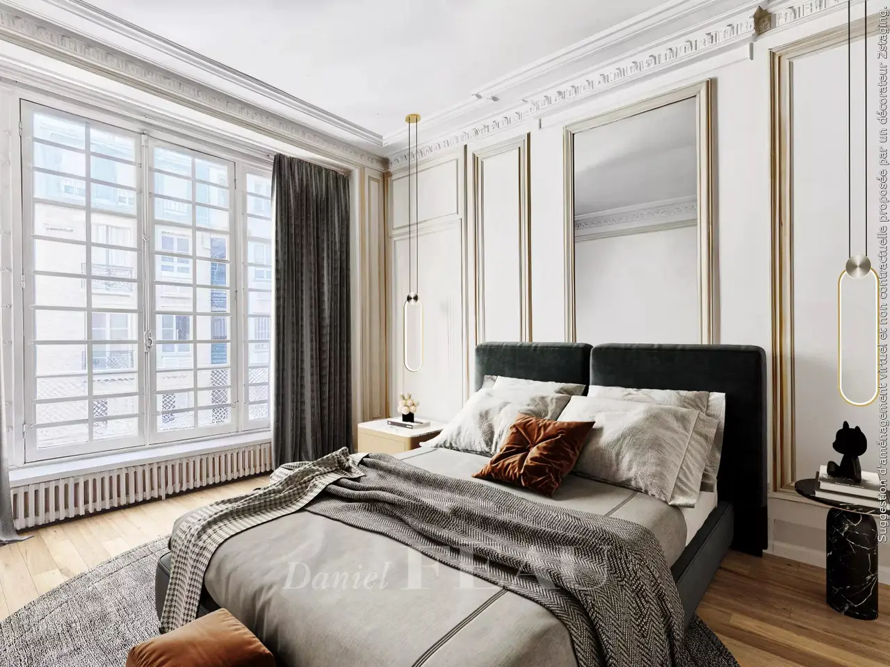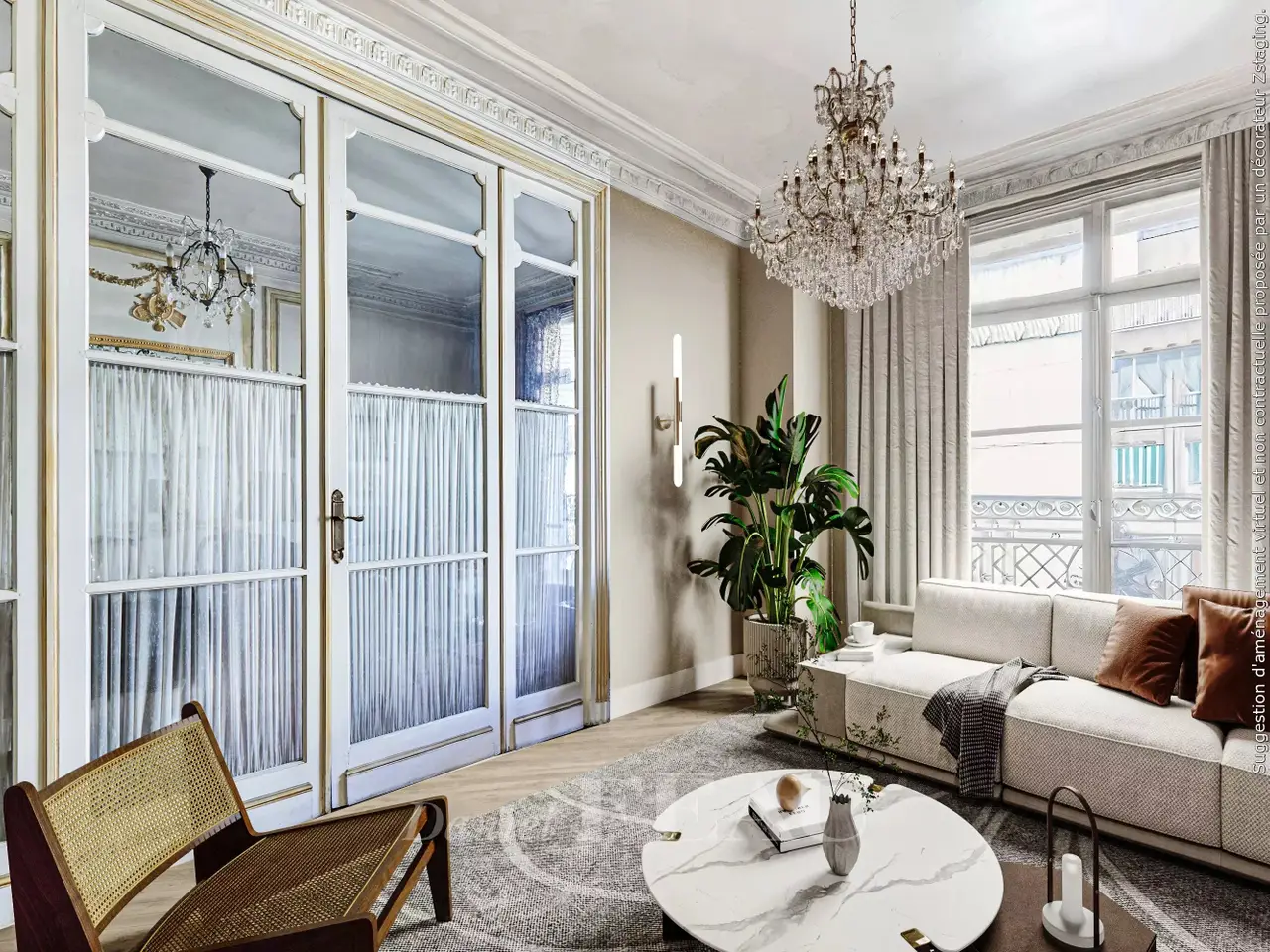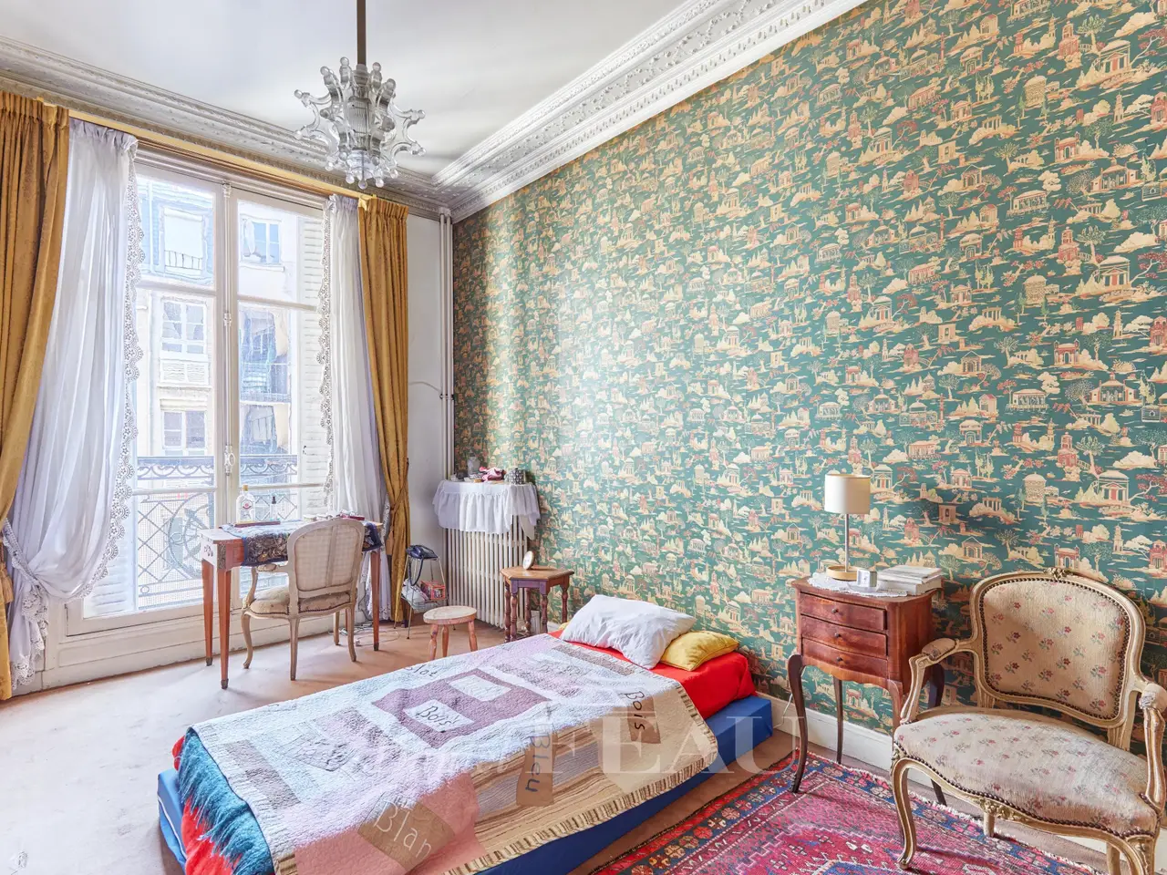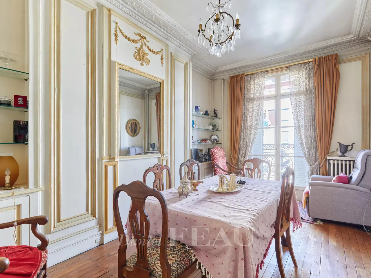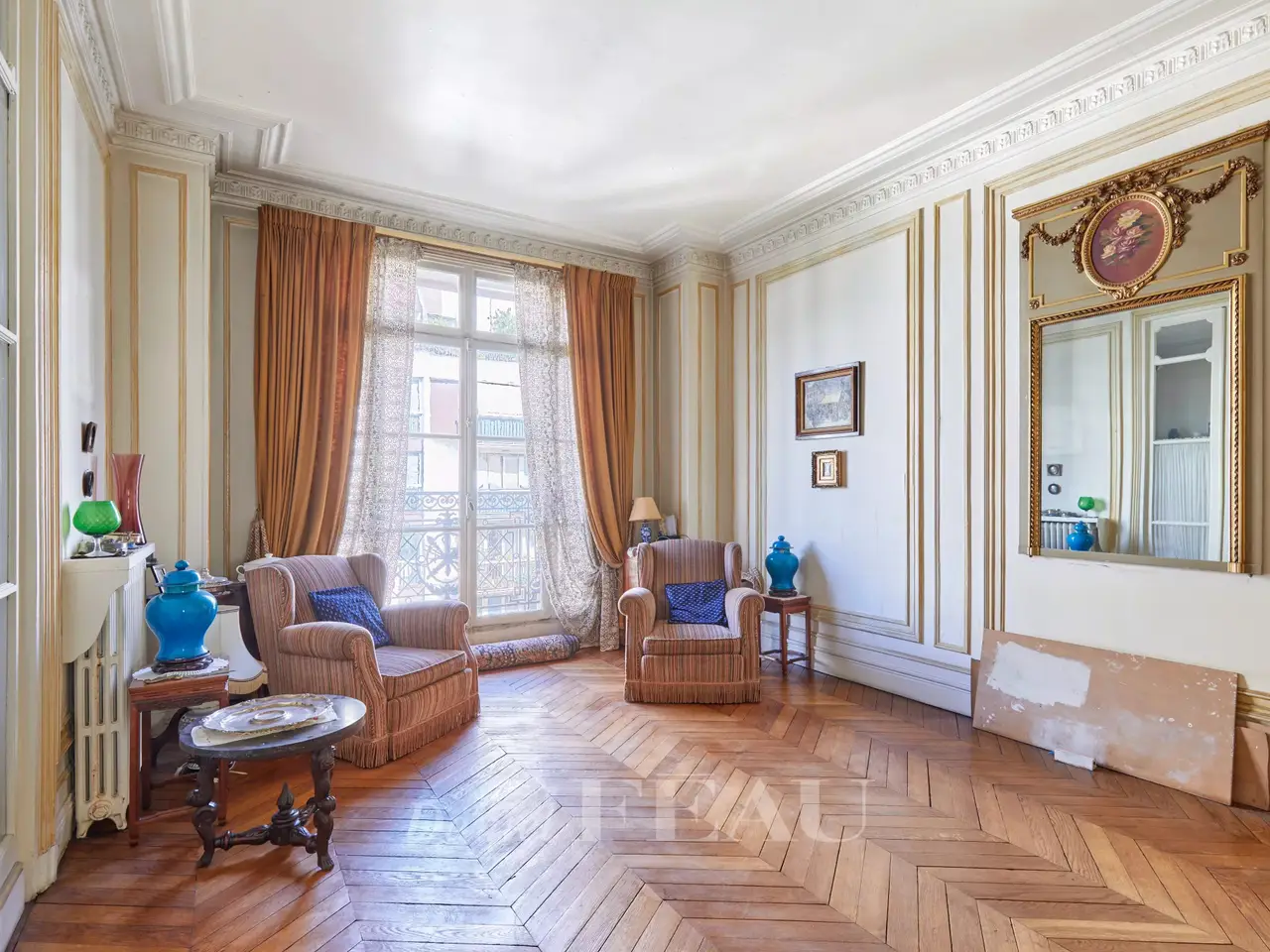 Avenue Mozart. This 127 sqm apartment featuring parquet flooring, fireplaces and high ceilings with mouldings is on the 4th floor of a luxurious early 20th century freestone building in a convenient location near the shops. An entrance hall leads to a double living/reception room, a kitchen with dining facilities, two bedrooms, a bathroom and a shower room. Ample fitted storage space. With a cellar. A maid’s bedroom is part of the sale for a further 93600€.