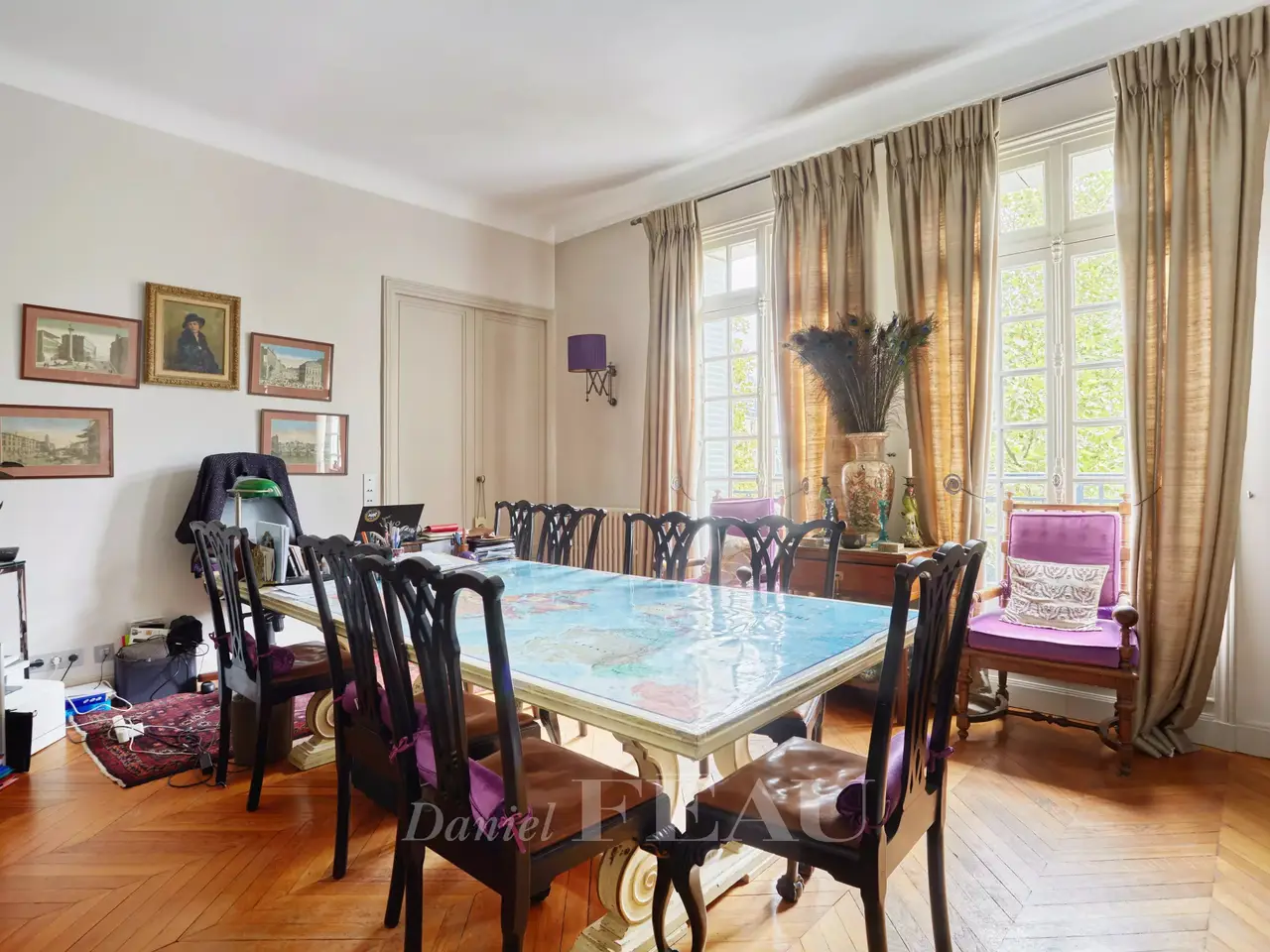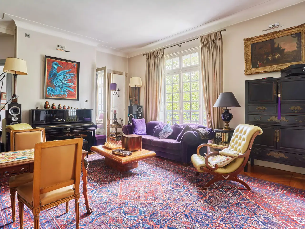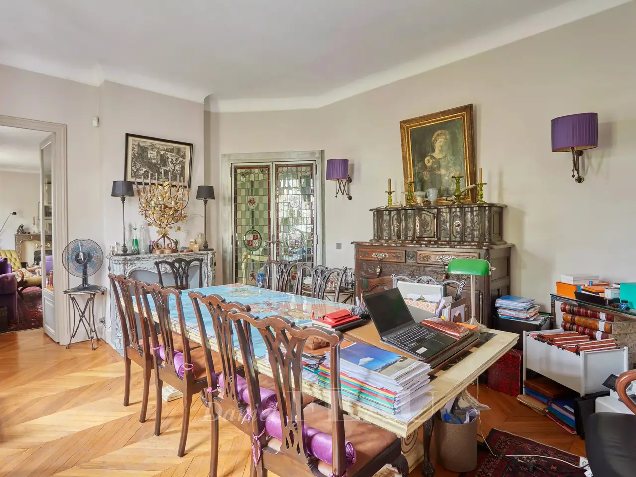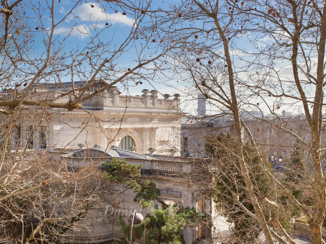 This spacious apartment enjoying open views of Palais Galliera gardens and the Eiffel Tower is on the 3rd floor of an early 20th century building. It includes a double living/reception room, a dining room, a study, a kitchen with dining facilities, four bedrooms and three bathrooms. With a cellar.