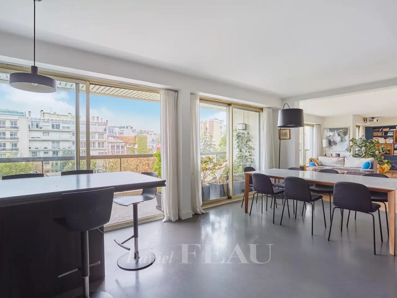 Ranelagh/Mozart neighbourhood. This 185 sqm apartment is on the 4th floor of a relatively recent building located near Avenue Mozart, the shops and Molière High School. South-facing and overlooking a garden, it includes a double living/reception room, a dining room, a kitchen with dining facilities opening onto a 31 sqm terrace, a study, a master suite with a bathroom, a dressing room and a wc, two further bedrooms sharing a shower room, and a guest wc. With a cellar. A double lock-up garage in the building may be acquired at extra cost.