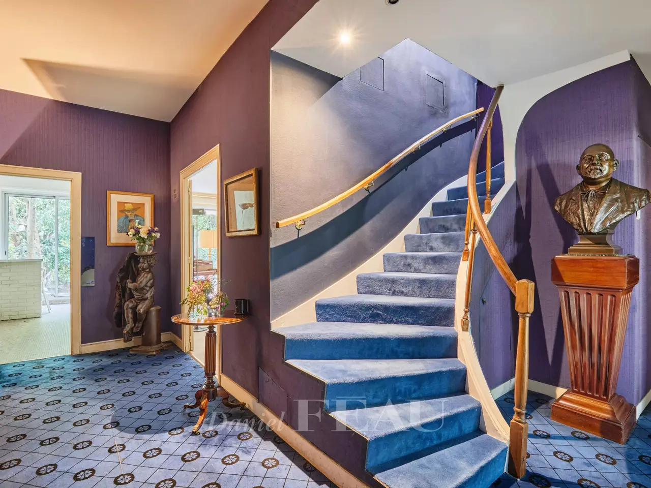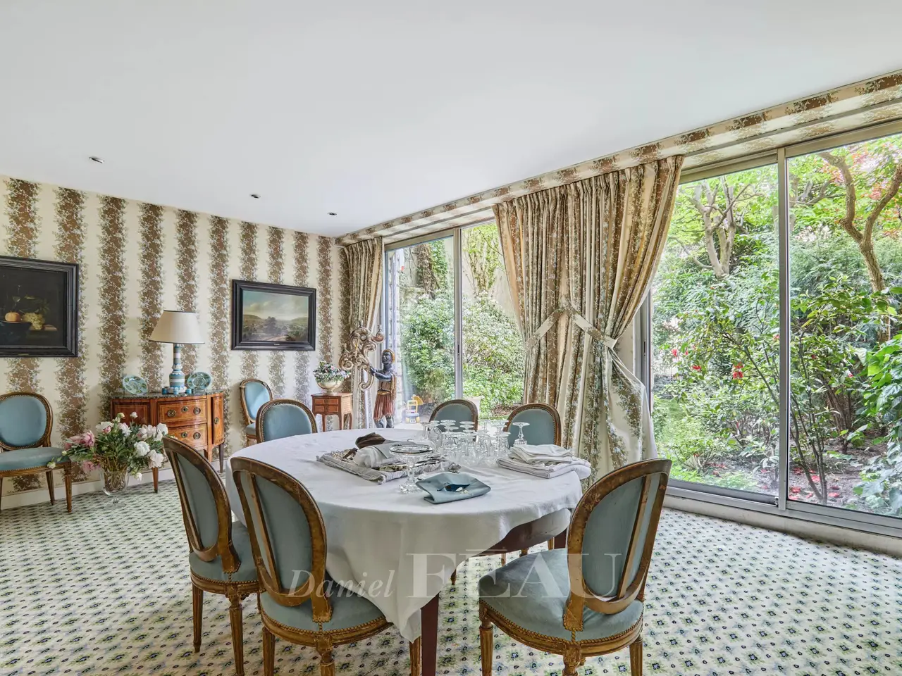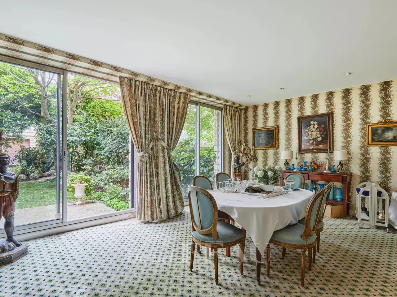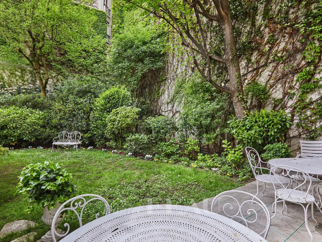 This split-level apartment with the feel of a private house is on the ground floor of a mid 20th century residence with elegant common areas located near the shops, the schools and the metro station in the heart of the capital’s Passy neighbourhood. It includes a spacious south-facing living/reception room opening onto a leafy near 200 sqm garden, a kitchen, a dining room opening onto a second near 100 sqm garden, a bedroom and a bathroom. Upstairs are a master suite with a bathroom and dressing room, three further bedrooms and two bathrooms. With a parking space and a cellar.