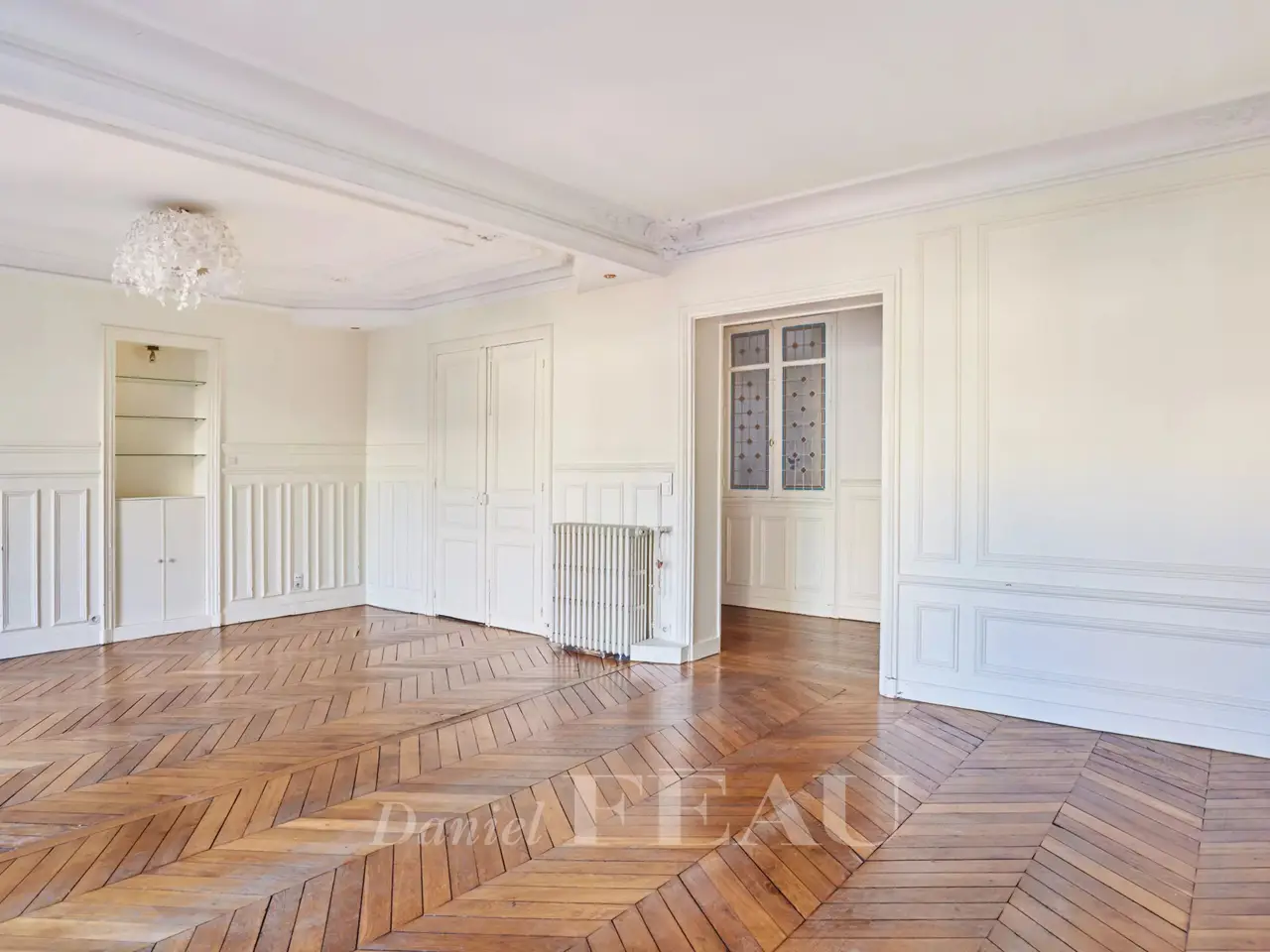 This elegant apartment is on the 2nd floor of a fine early 20th century building with a lift in a prime location near Bayen and Poncelet markets, the schools and the transport networks in the heart of the capital’s Ternes neighbourhood. About 112 sqm of bright and peaceful living space includes a spacious double living/reception room opening onto a continuous balcony enjoying an open view, a kitchen, three bedrooms (two with shower rooms), and a separate wc. Ample fitted storage space. Renovation is required to exploit the full potential. With a cellar.
